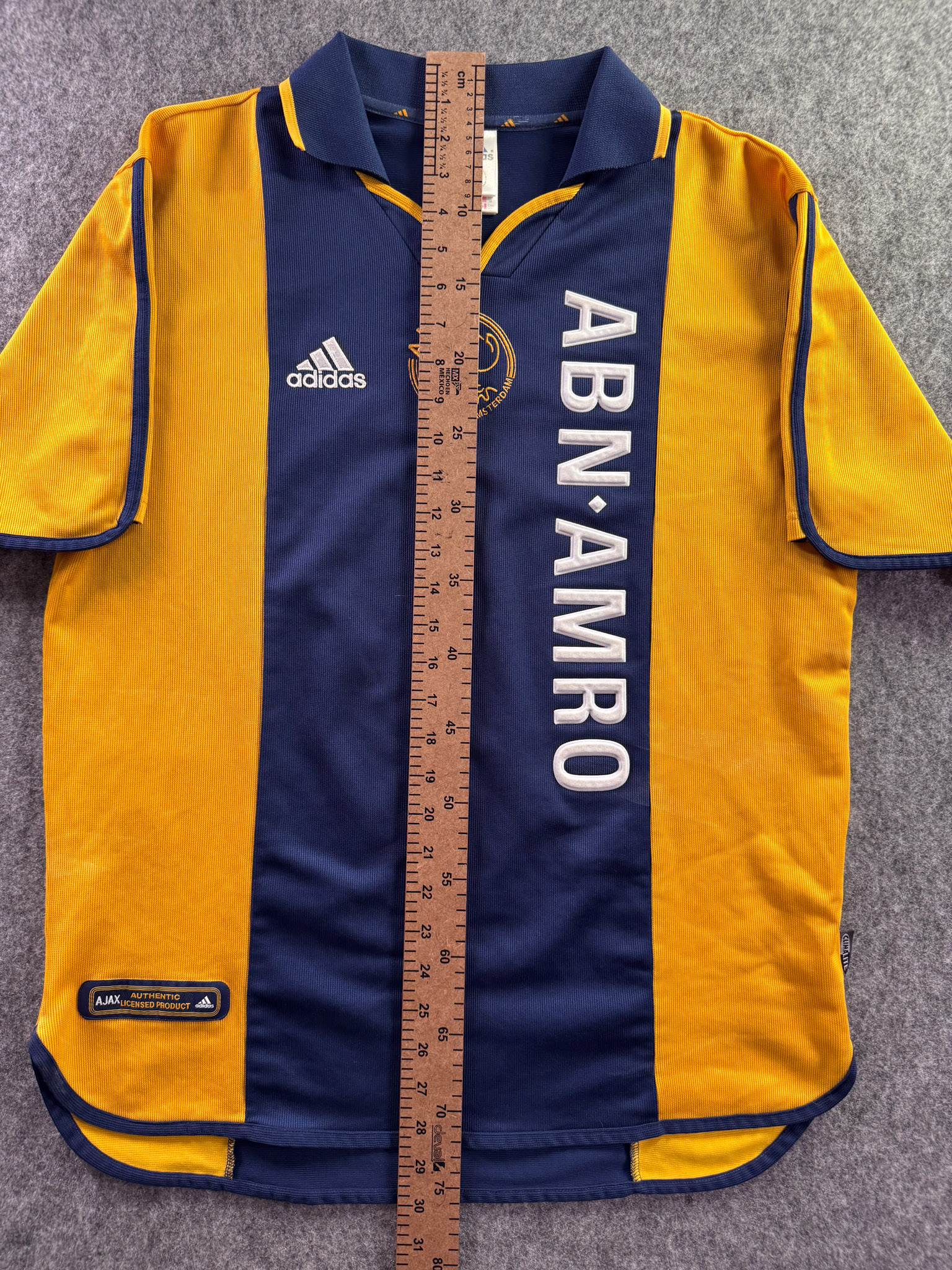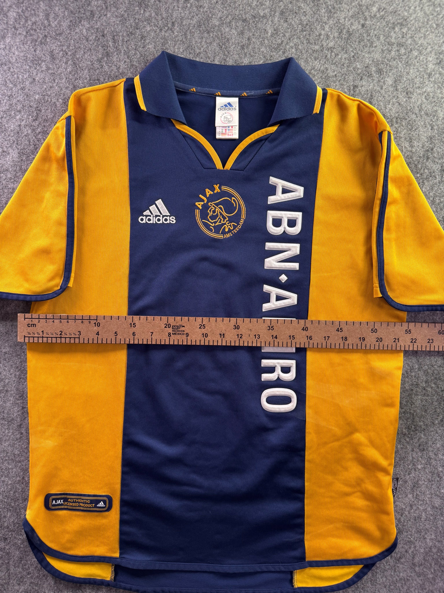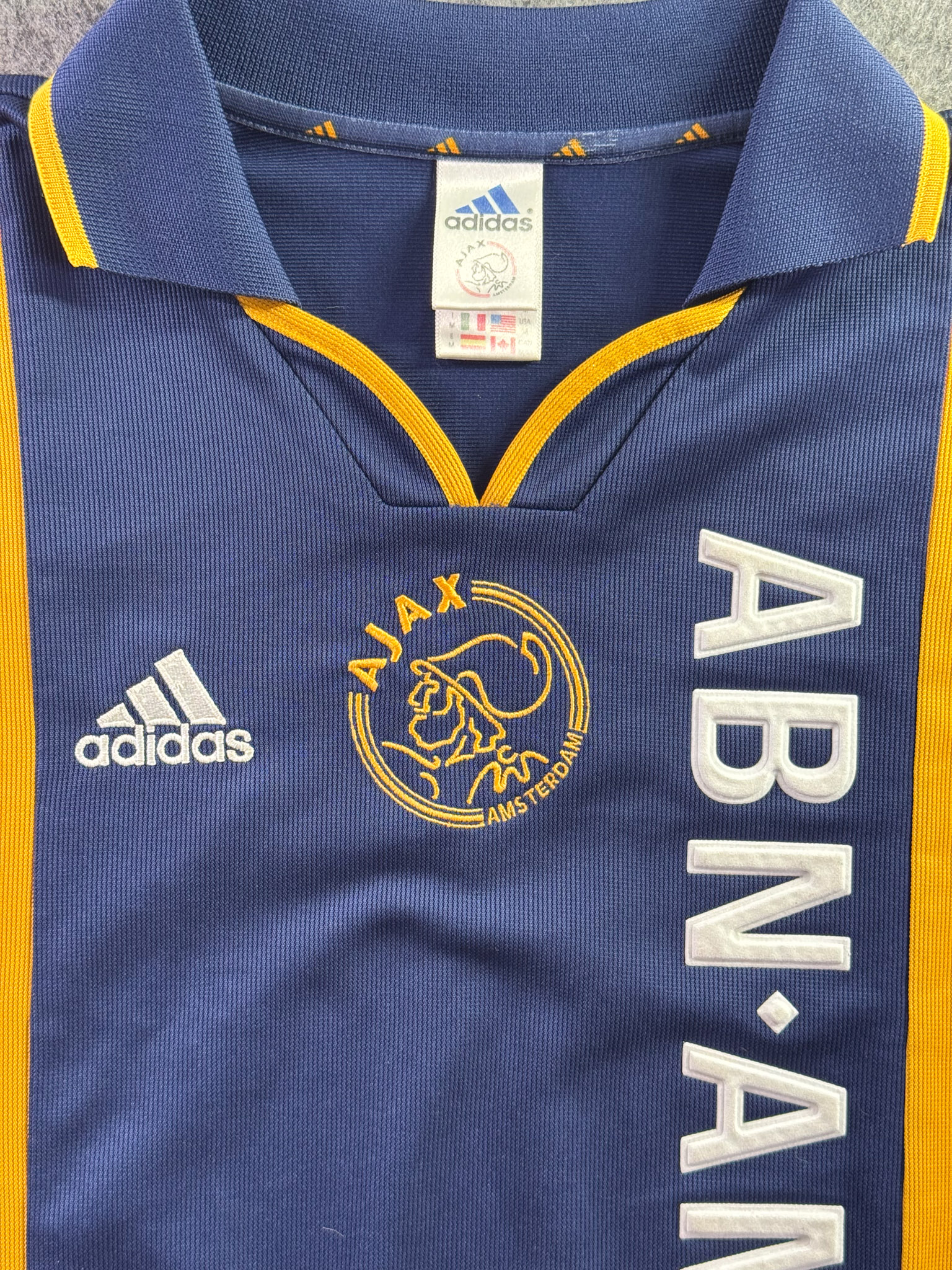Jersey del Ajax fabricado por Adidas, originario de Países Bajos. Se trata de la equipación Visita correspondiente a la temporada 00-01. Talla M, con dorsal ‘No’ y en condición Excelente. Detalles: Ninguno.