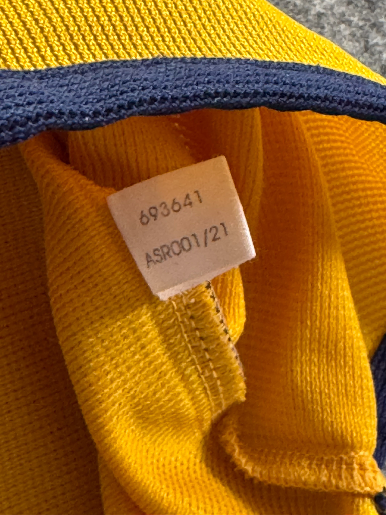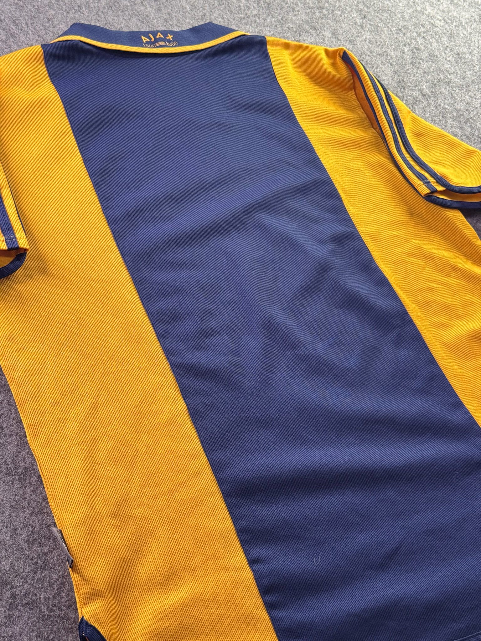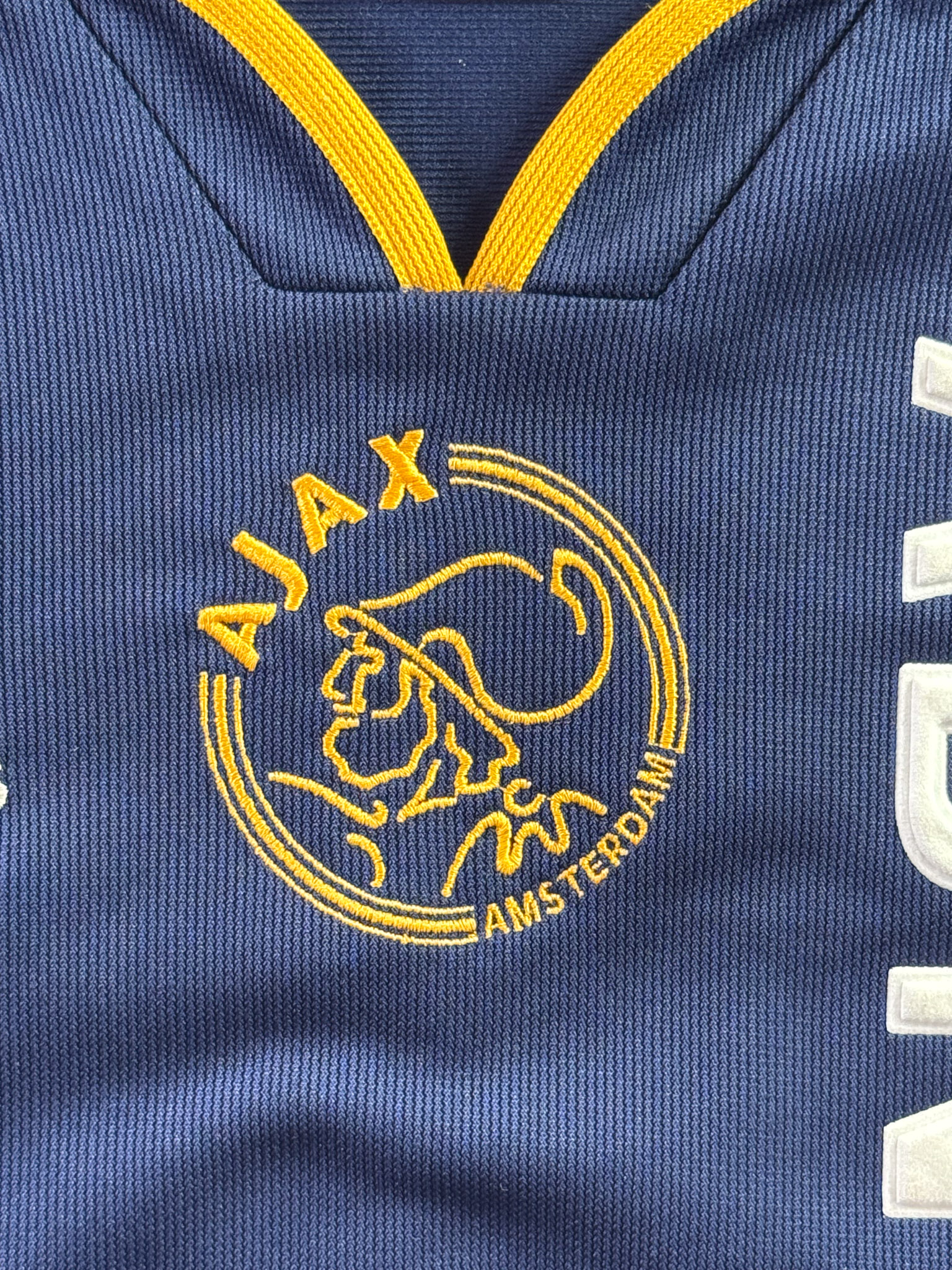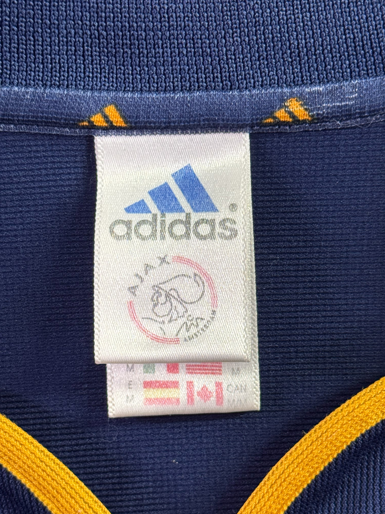 Jersey del Ajax fabricado por Adidas, originario de Países Bajos. Se trata de la equipación Visita correspondiente a la temporada 00-01. Talla M, con dorsal ‘No’ y en condición Excelente. Detalles: Ninguno.