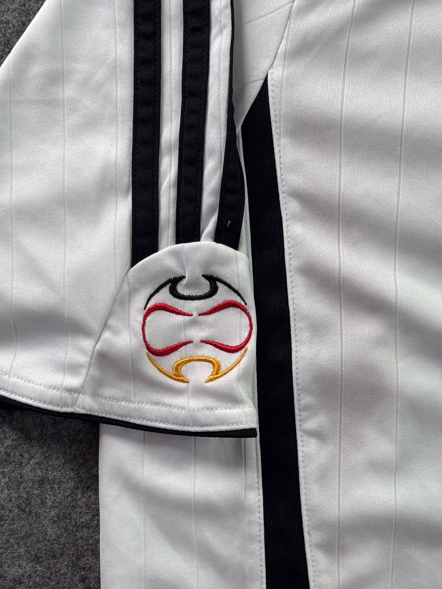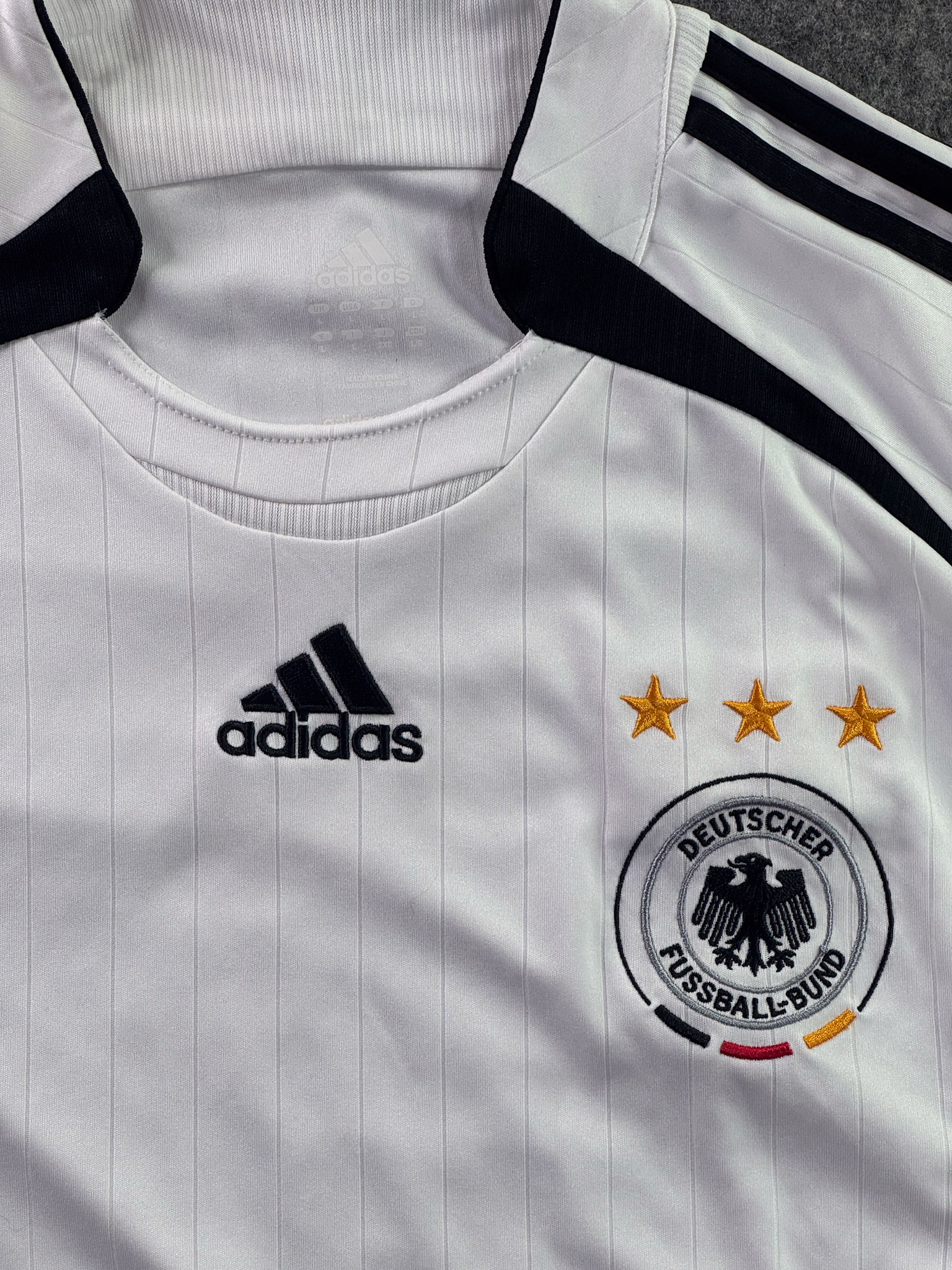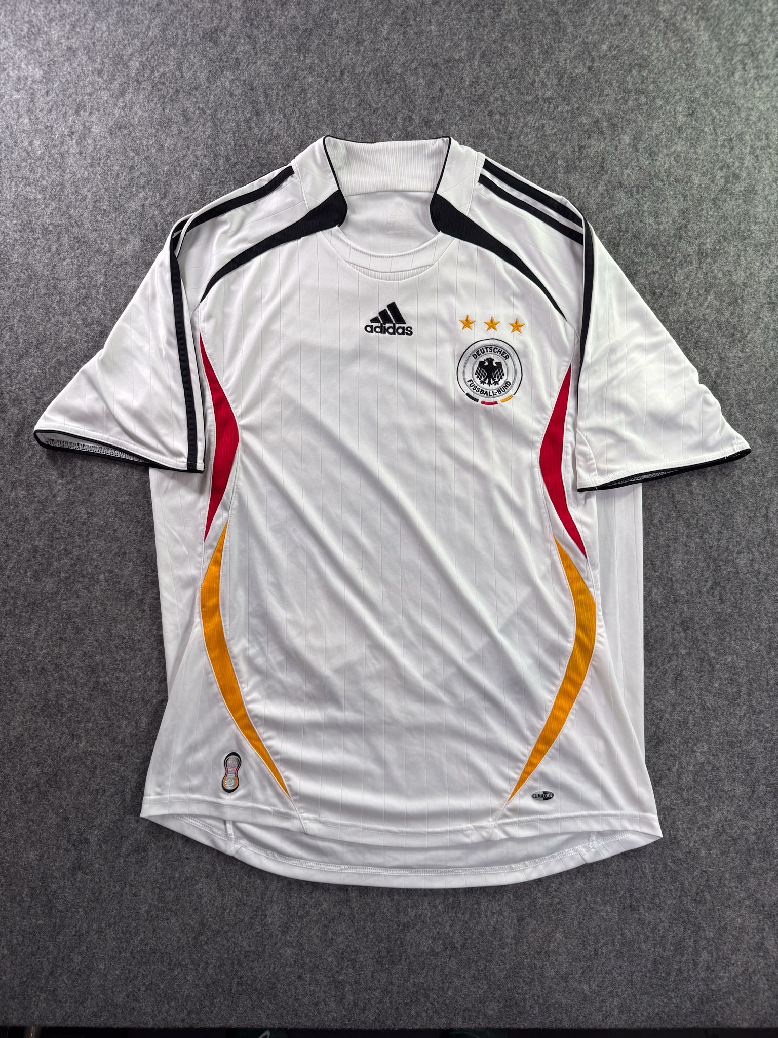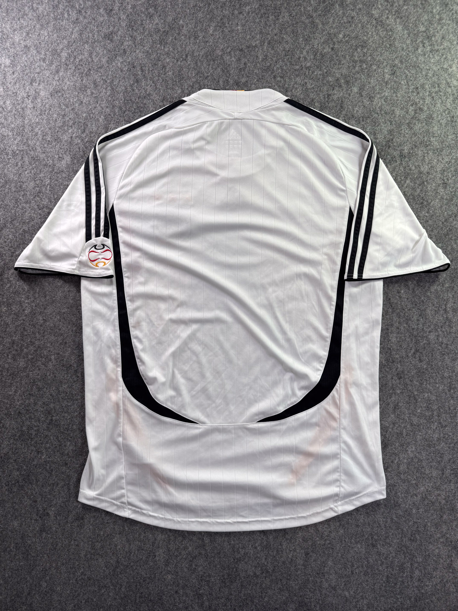 Jersey del Selección Alemania fabricado por Adidas, originario de Alemania. Se trata de la equipación Local correspondiente a la temporada 2006. Talla L, con dorsal ‘No’ y en condición Muy Buena. Detalles: Ligera mancha en el frente.