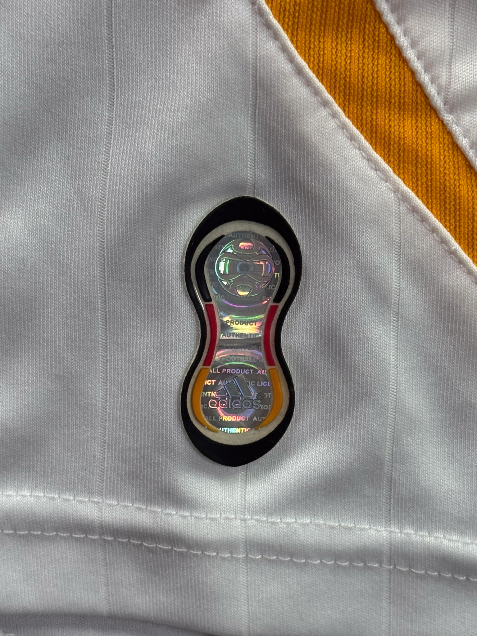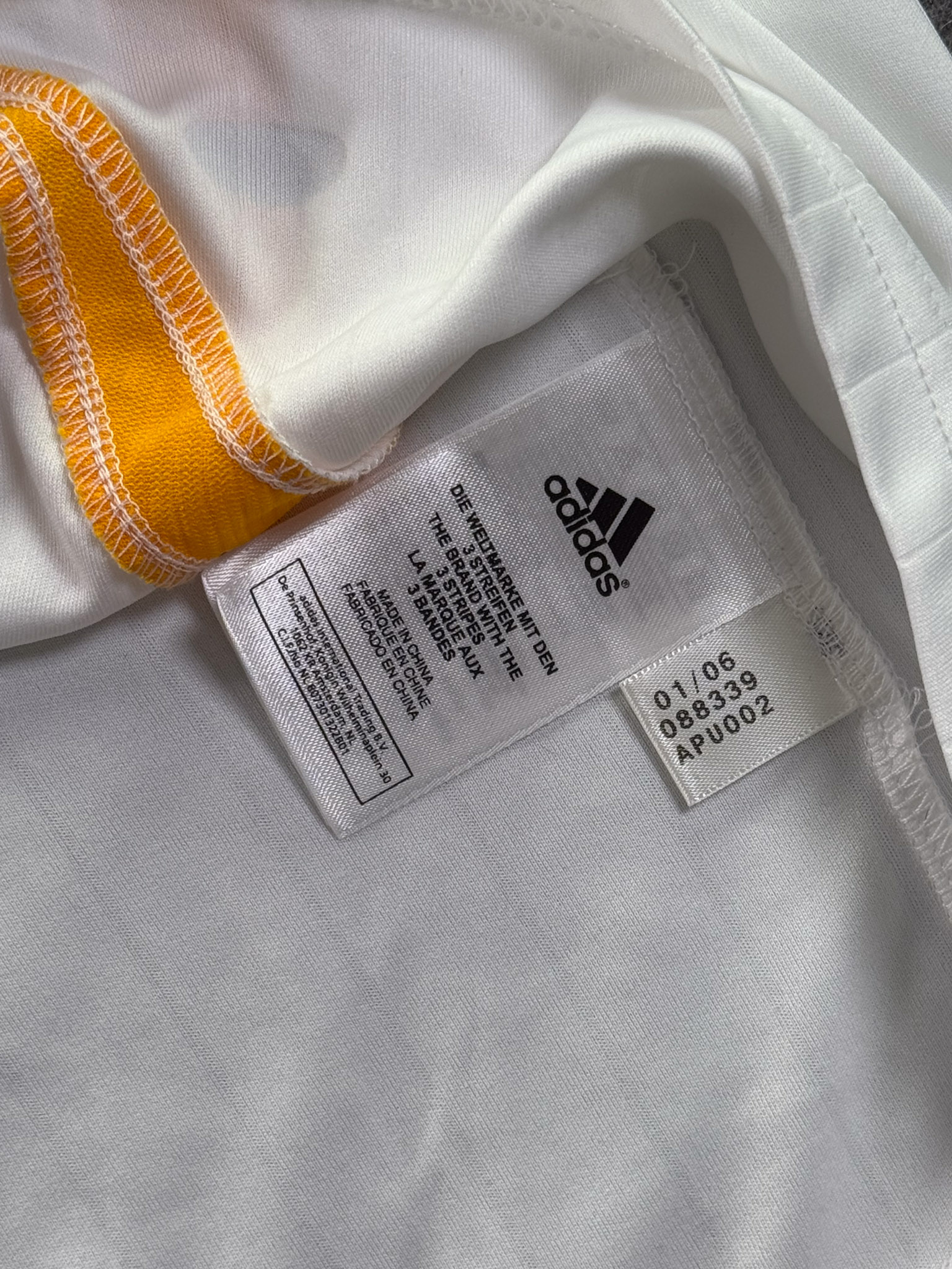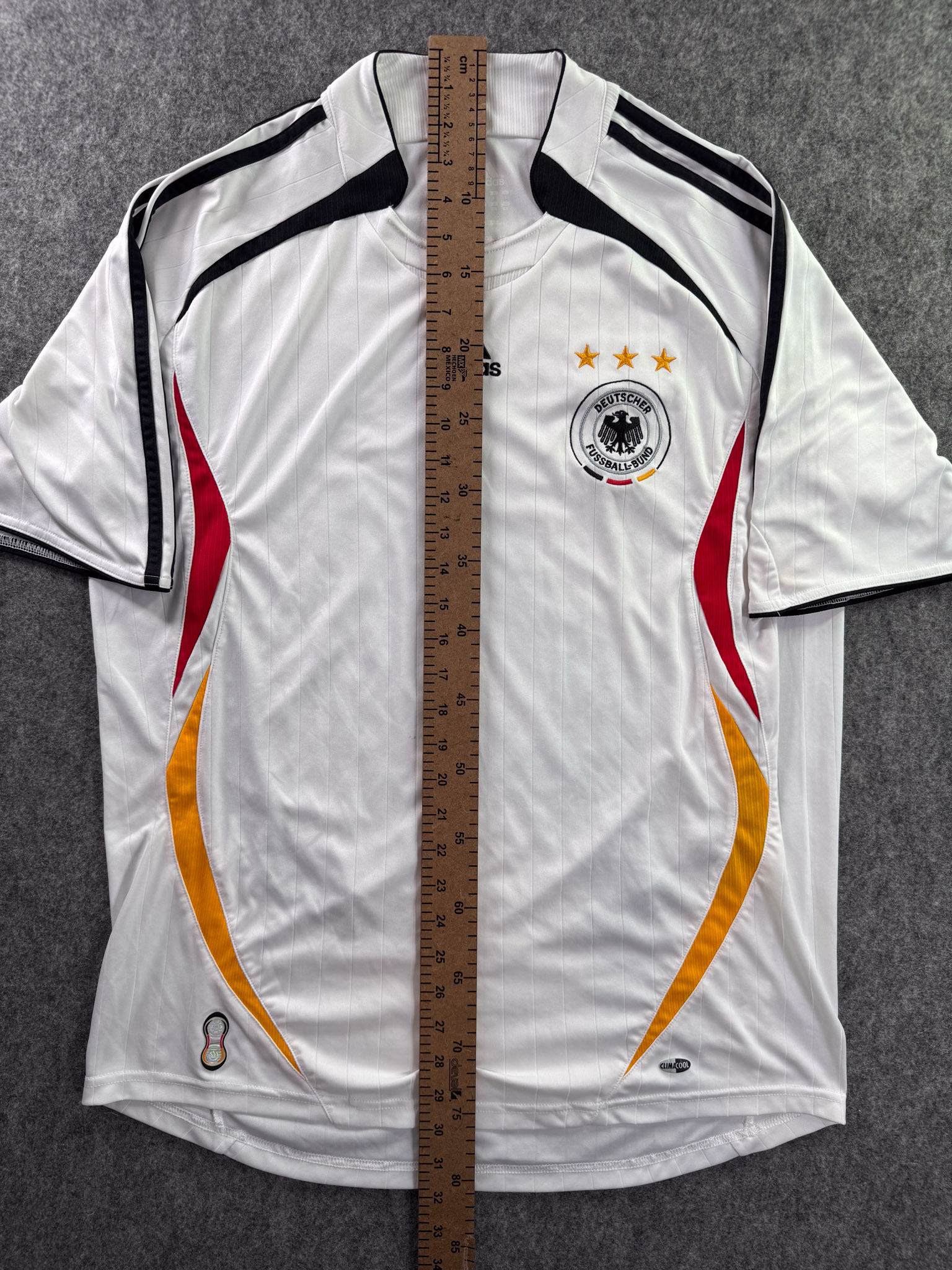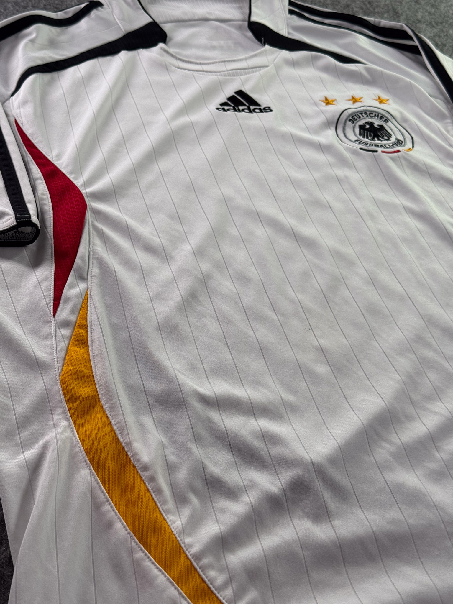 Jersey del Selección Alemania fabricado por Adidas, originario de Alemania. Se trata de la equipación Local correspondiente a la temporada 2006. Talla L, con dorsal ‘No’ y en condición Muy Buena. Detalles: Ligera mancha en el frente.
