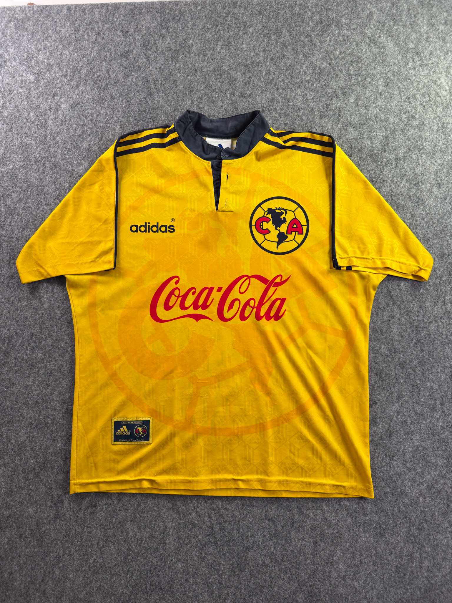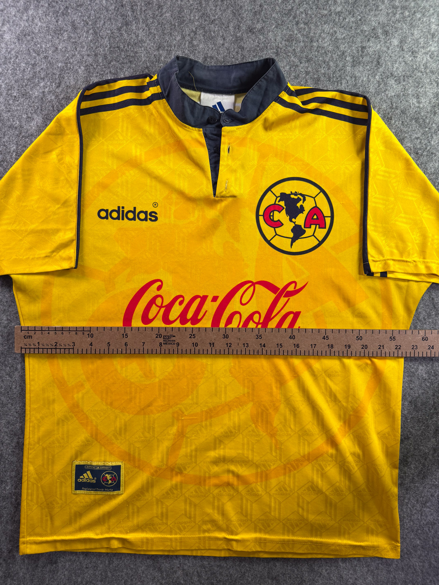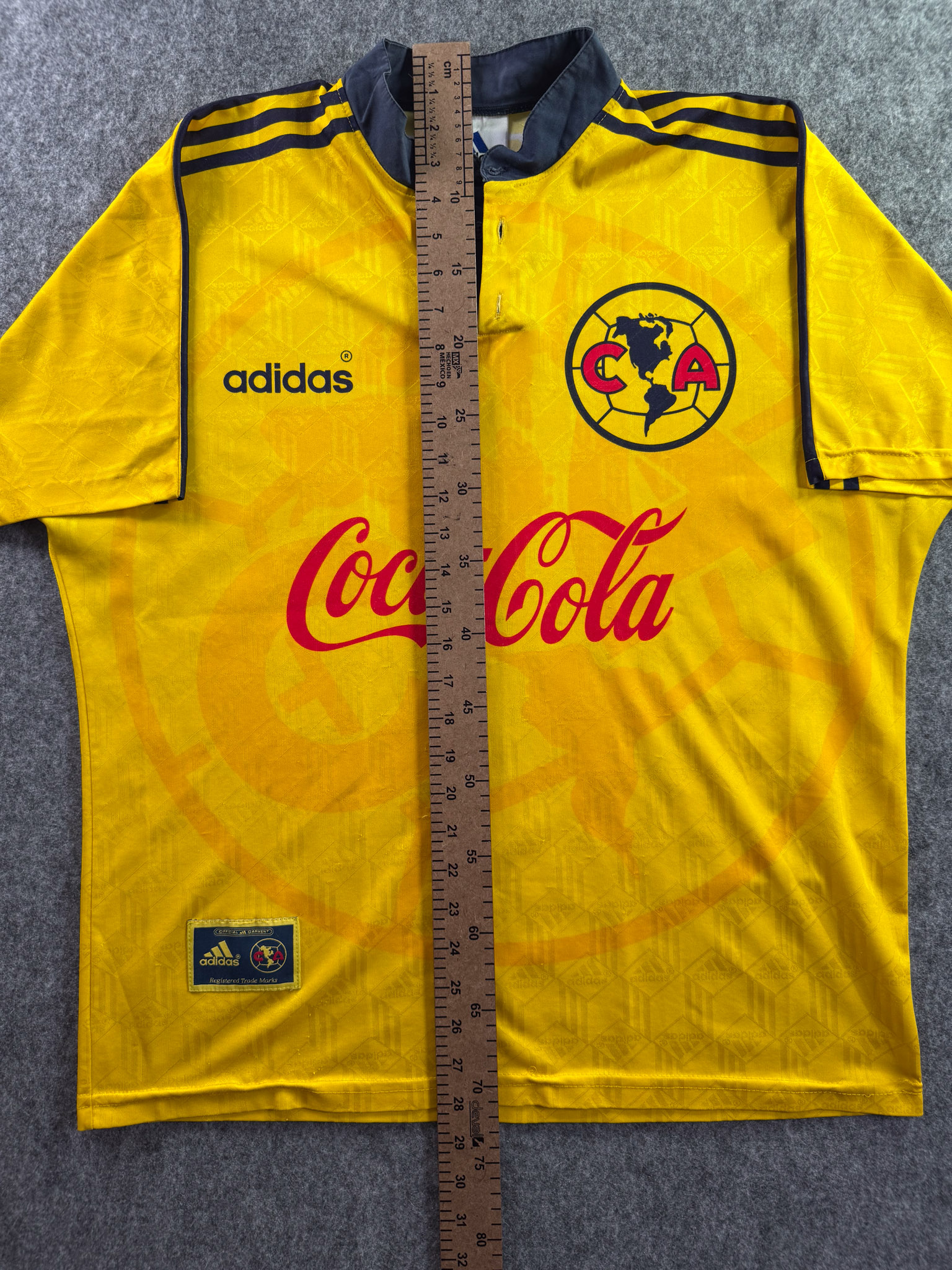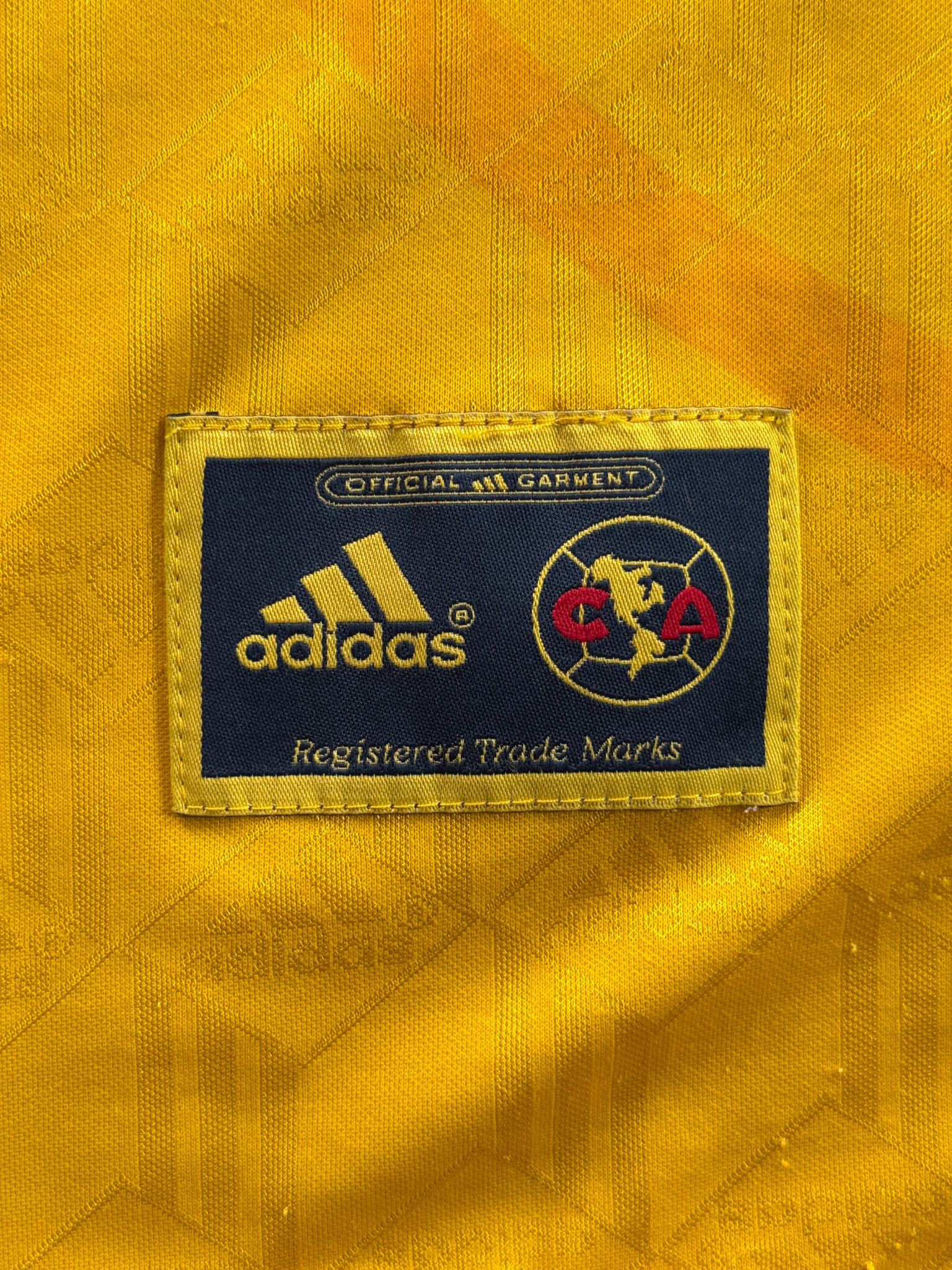 Jersey del América fabricado por Adidas, originario de México. Se trata de la equipación Local correspondiente a la temporada 98-99. Talla L, con dorsal ‘No’ y en condición Excelente. Detalles: Ligeras bolitas en la tela, le falta el botón de abajo del cuello.