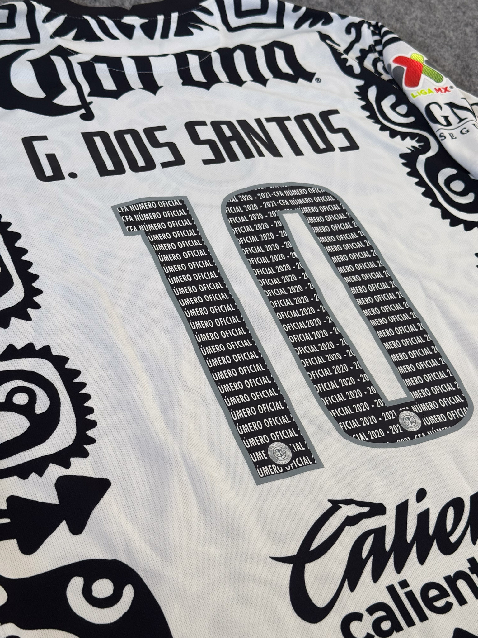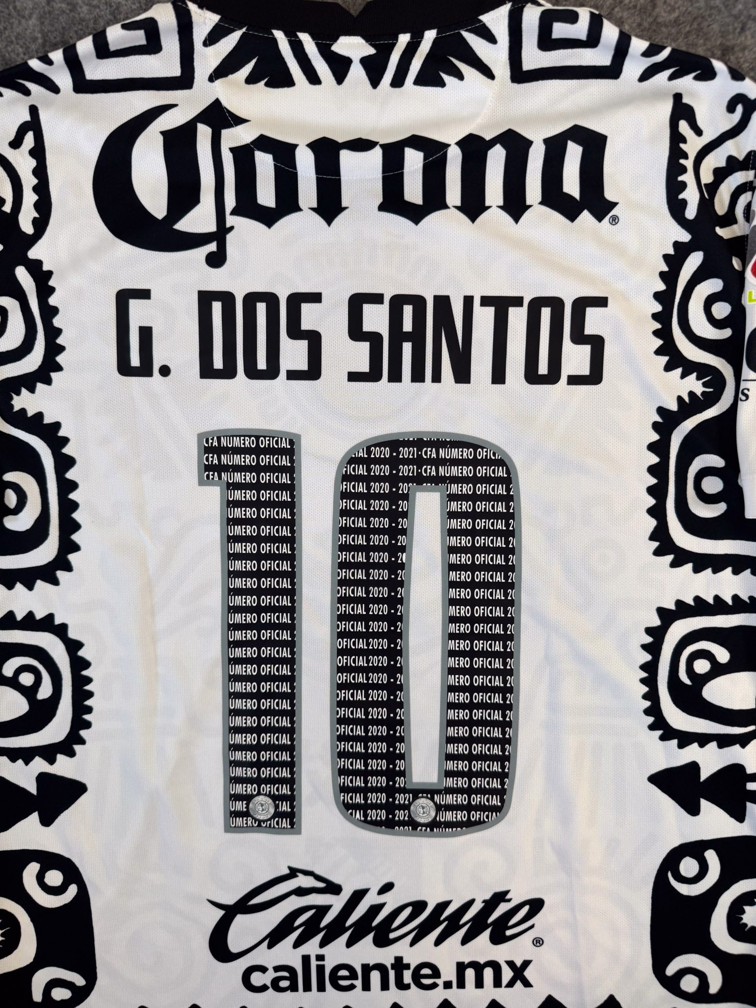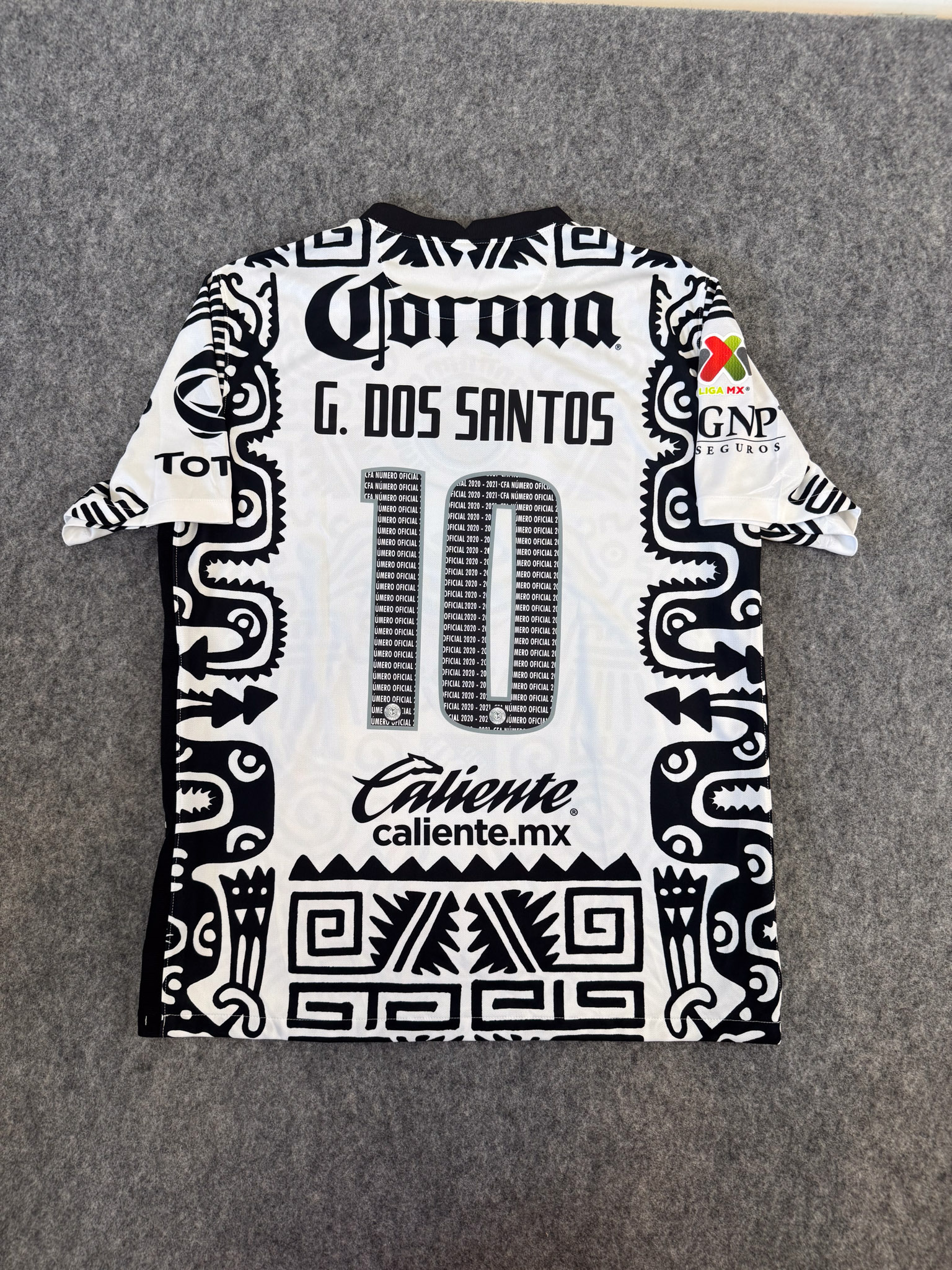 Jersey del América fabricado por Nike, originario de México. Se trata de la equipación Tercera correspondiente a la temporada 20-21. Talla XL, con dorsal ‘G. Dos Santos 10’ y en condición Excelente. Detalles: Parche Liga MX,.