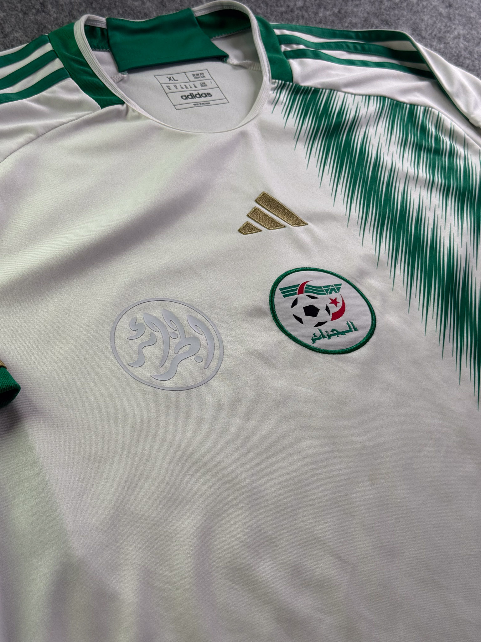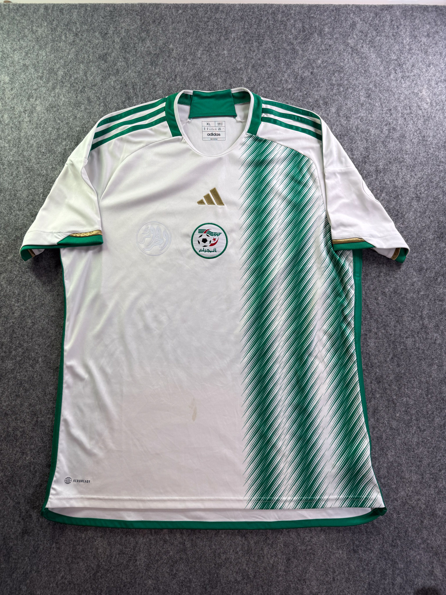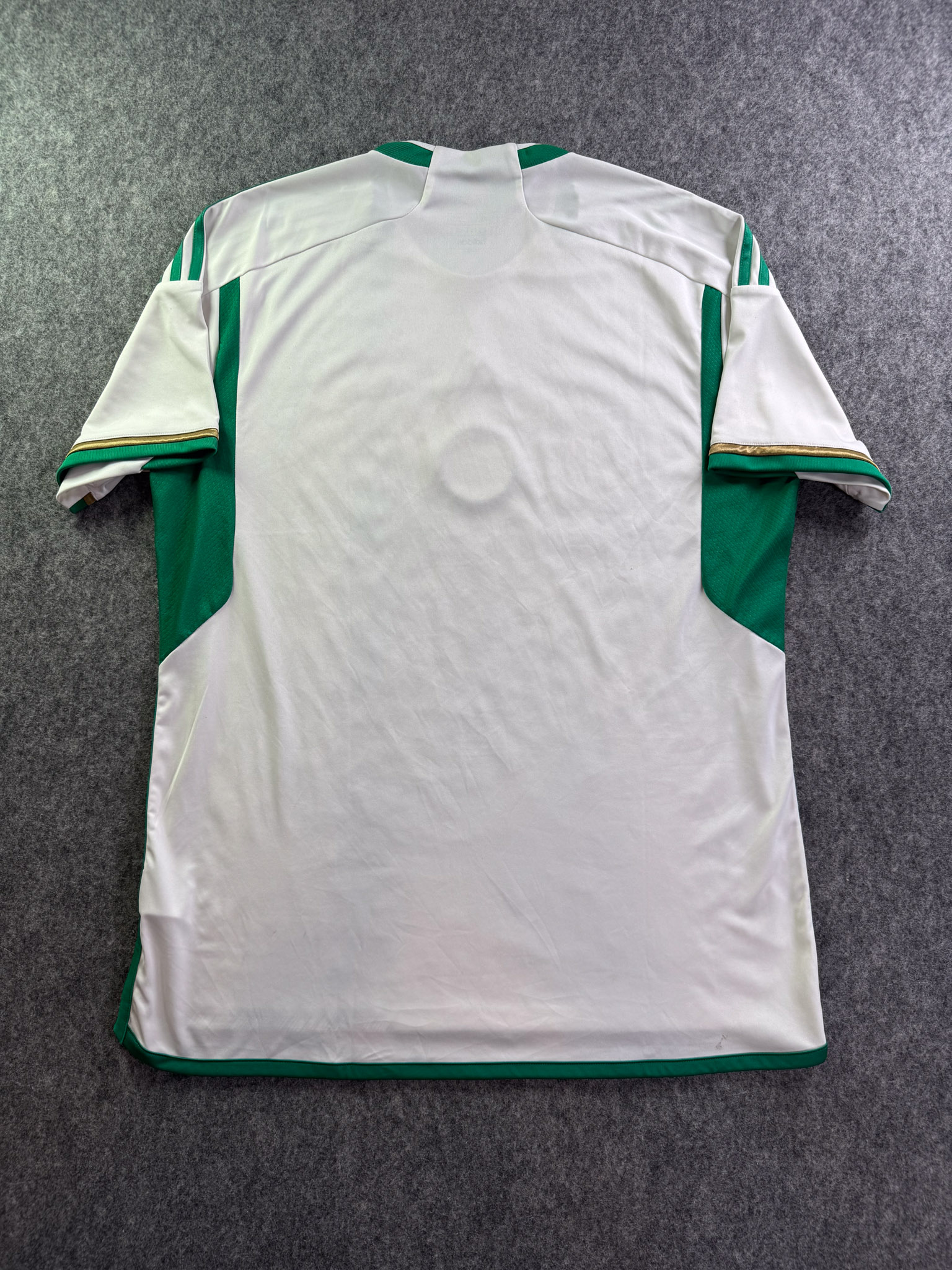 Jersey del Selección Algeria fabricado por Adidas, originario de Algeria. Se trata de la equipación Local correspondiente a la temporada 2022. Talla XL, con dorsal ‘No’ y en condición Excelente. Detalles: Ninguno.