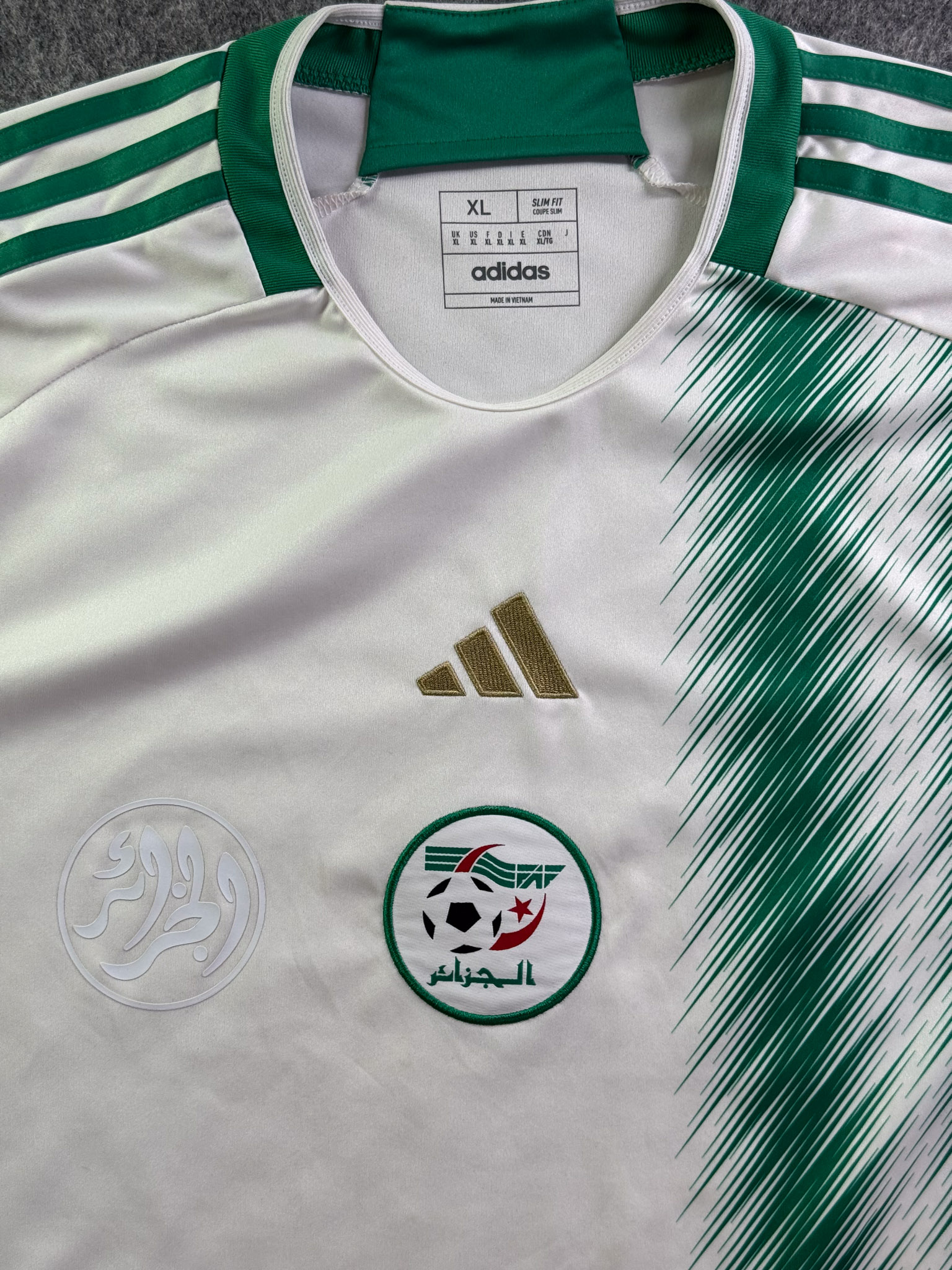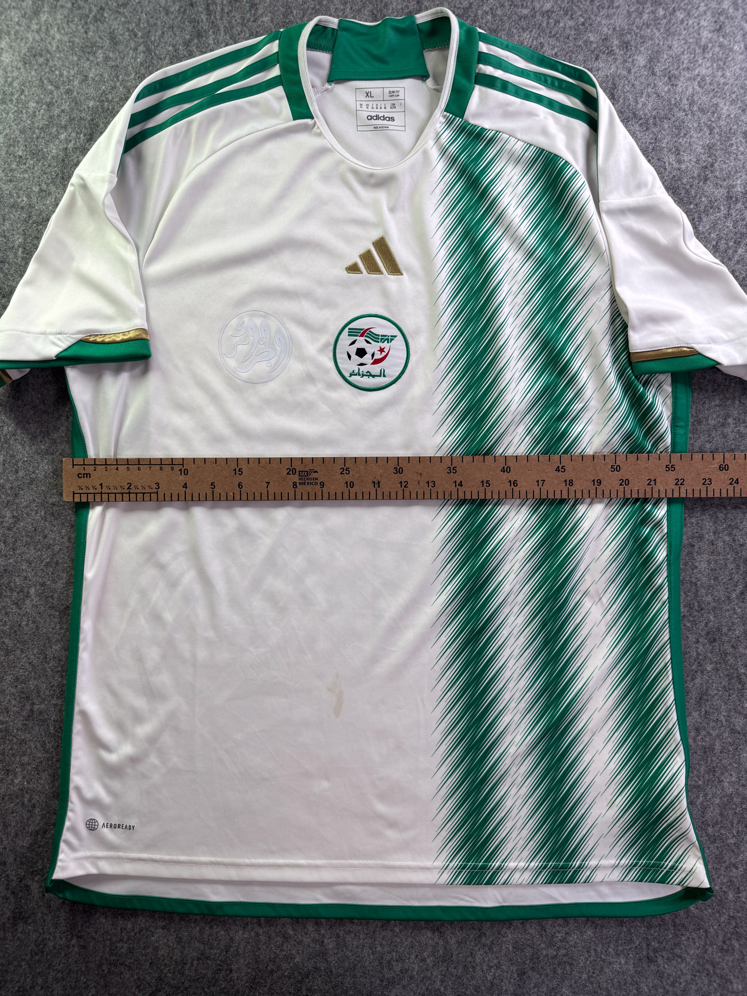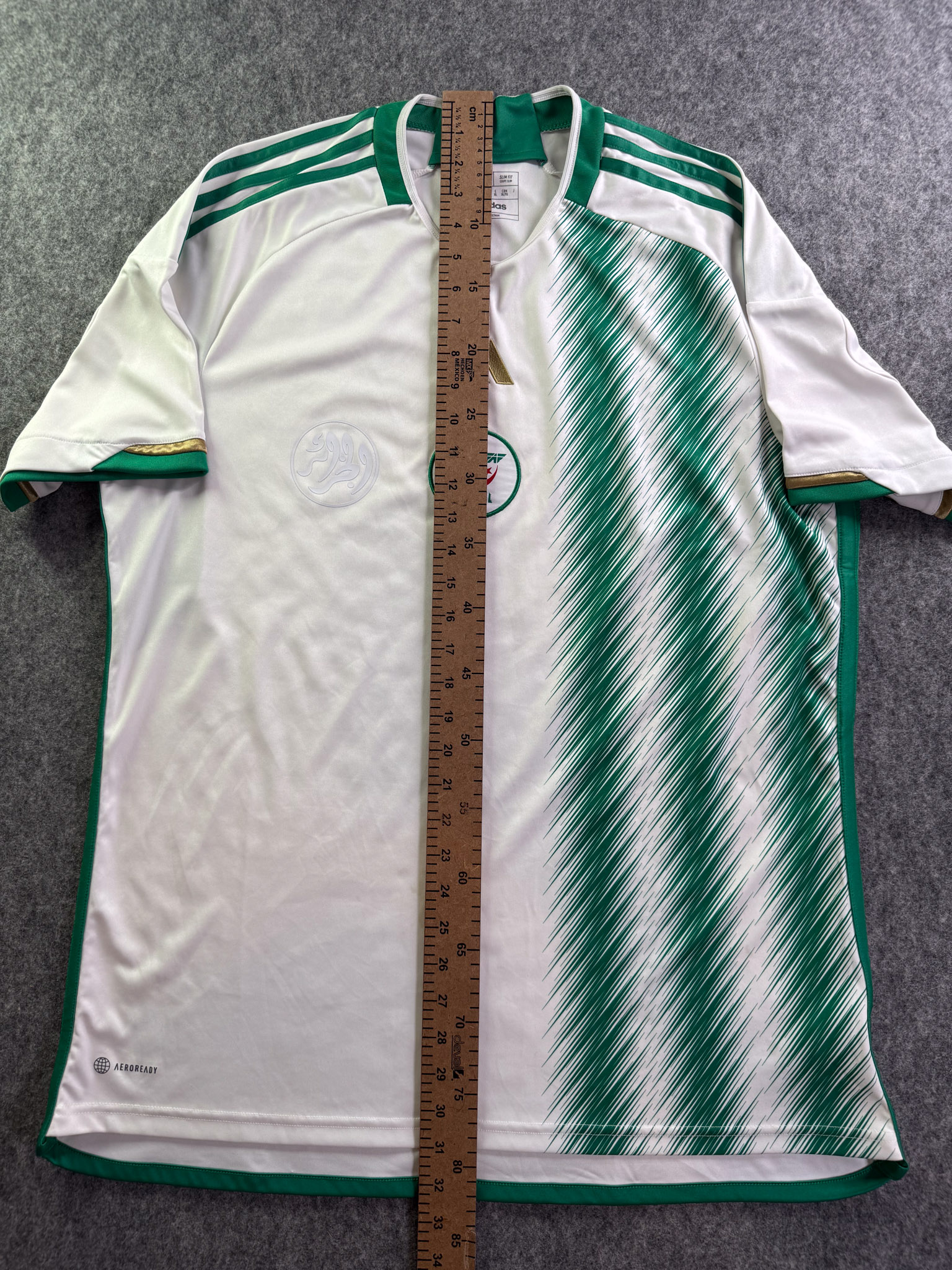 Jersey del Selección Algeria fabricado por Adidas, originario de Algeria. Se trata de la equipación Local correspondiente a la temporada 2022. Talla XL, con dorsal ‘No’ y en condición Excelente. Detalles: Ninguno.