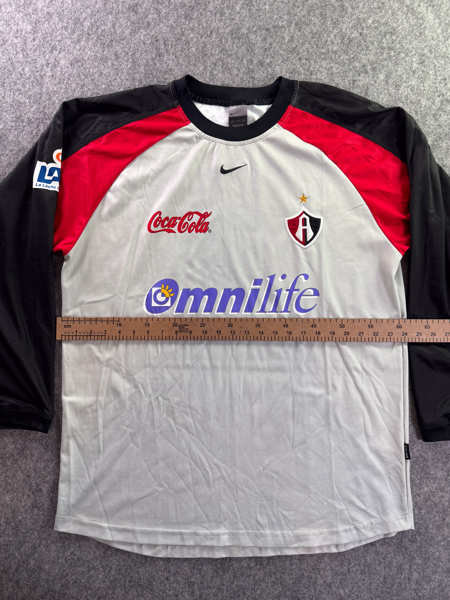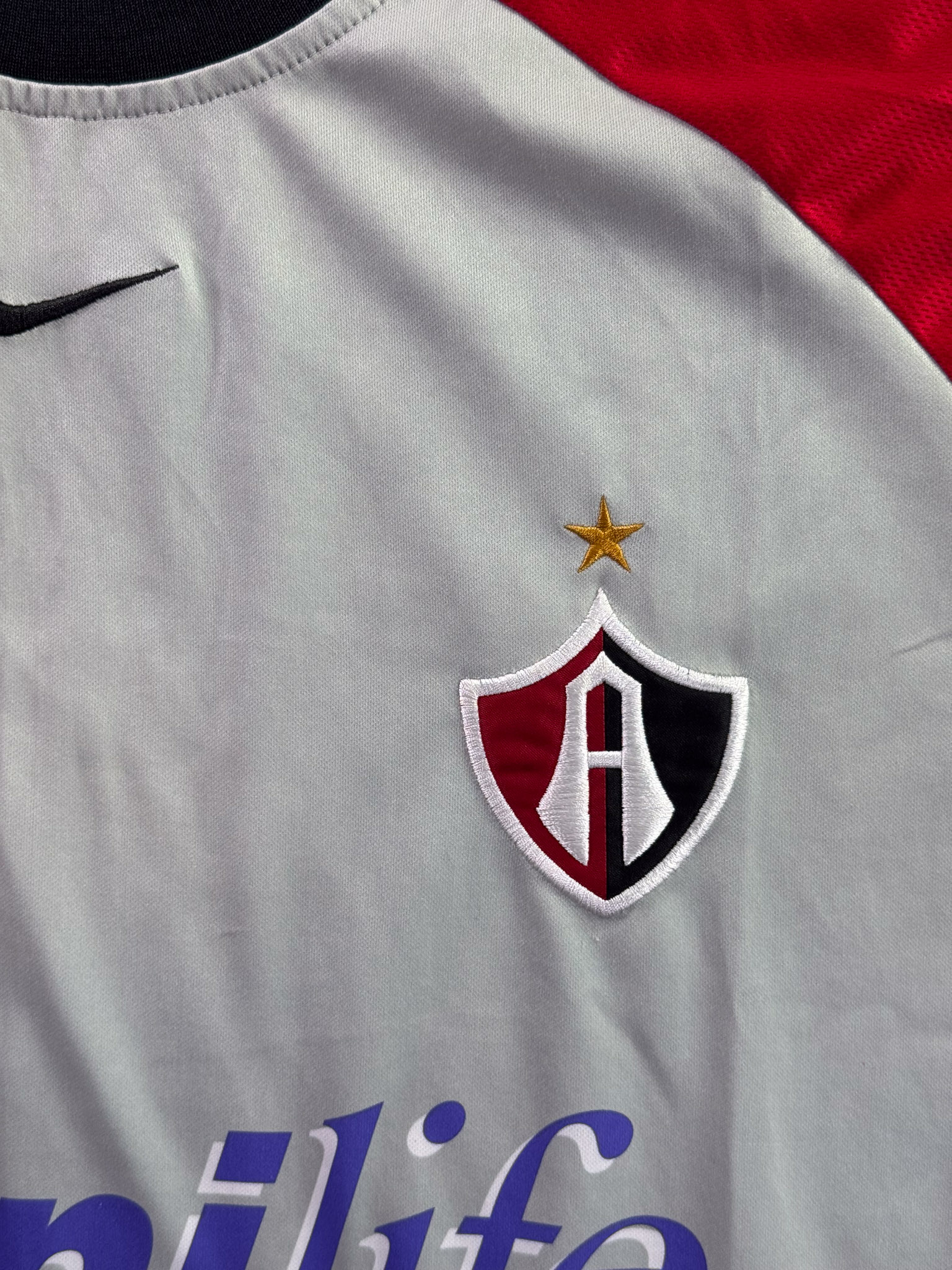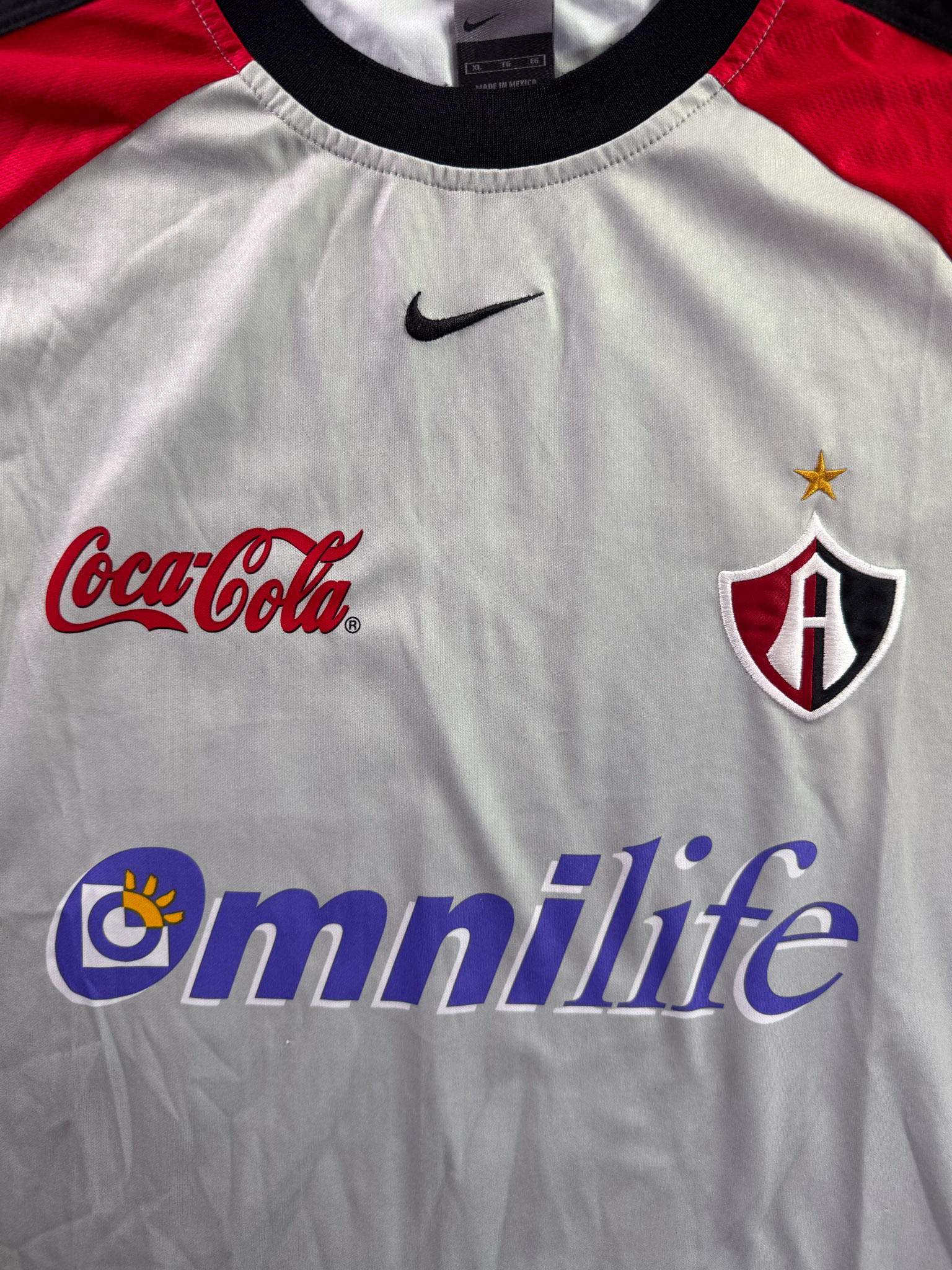 Jersey del Atlas fabricado por Nike, originario de México. Se trata de la equipación Visita correspondiente a la temporada 01-02. Talla XL, con dorsal ‘No’ y en condición Excelente. Detalles: Ninguno.