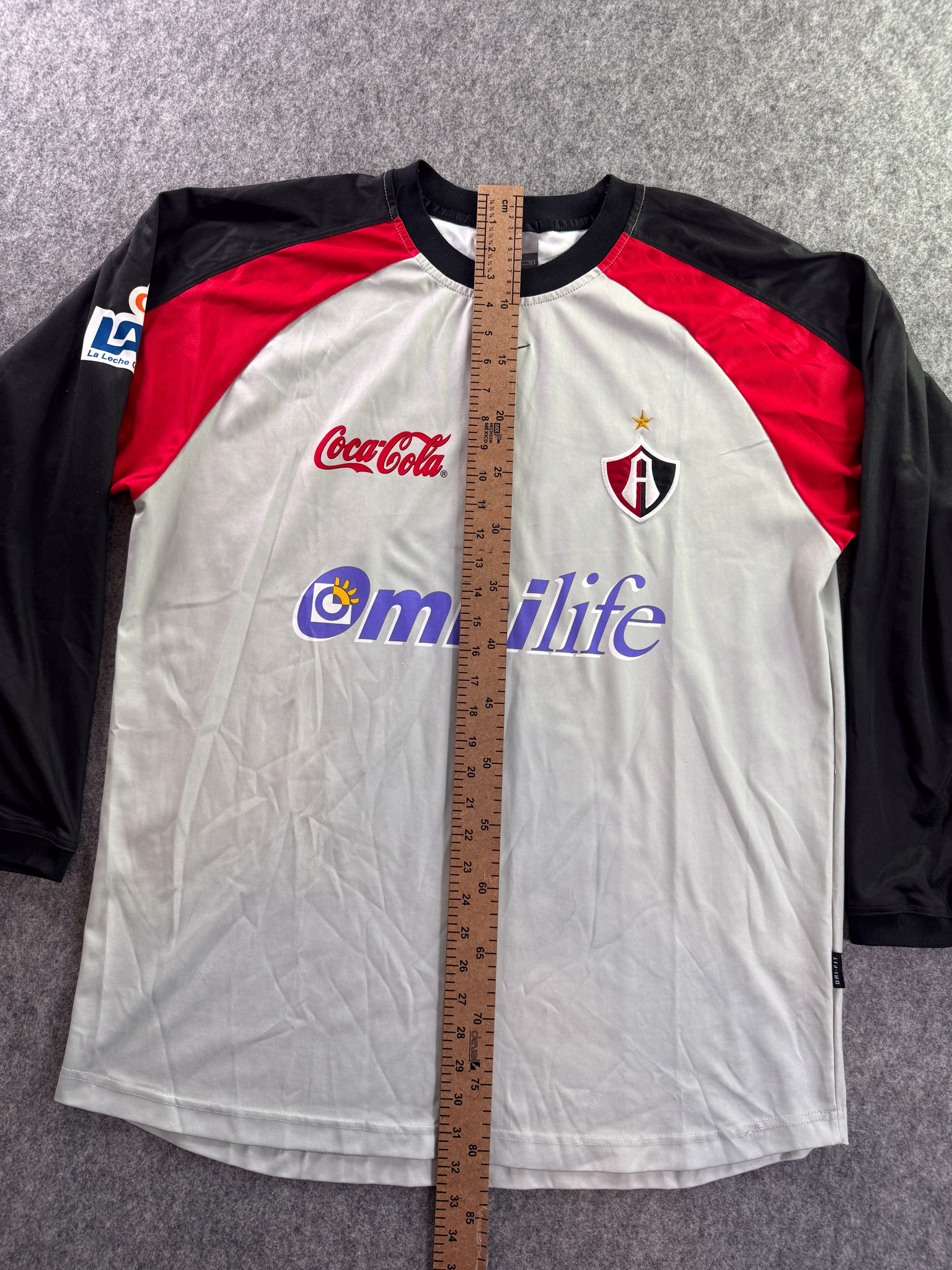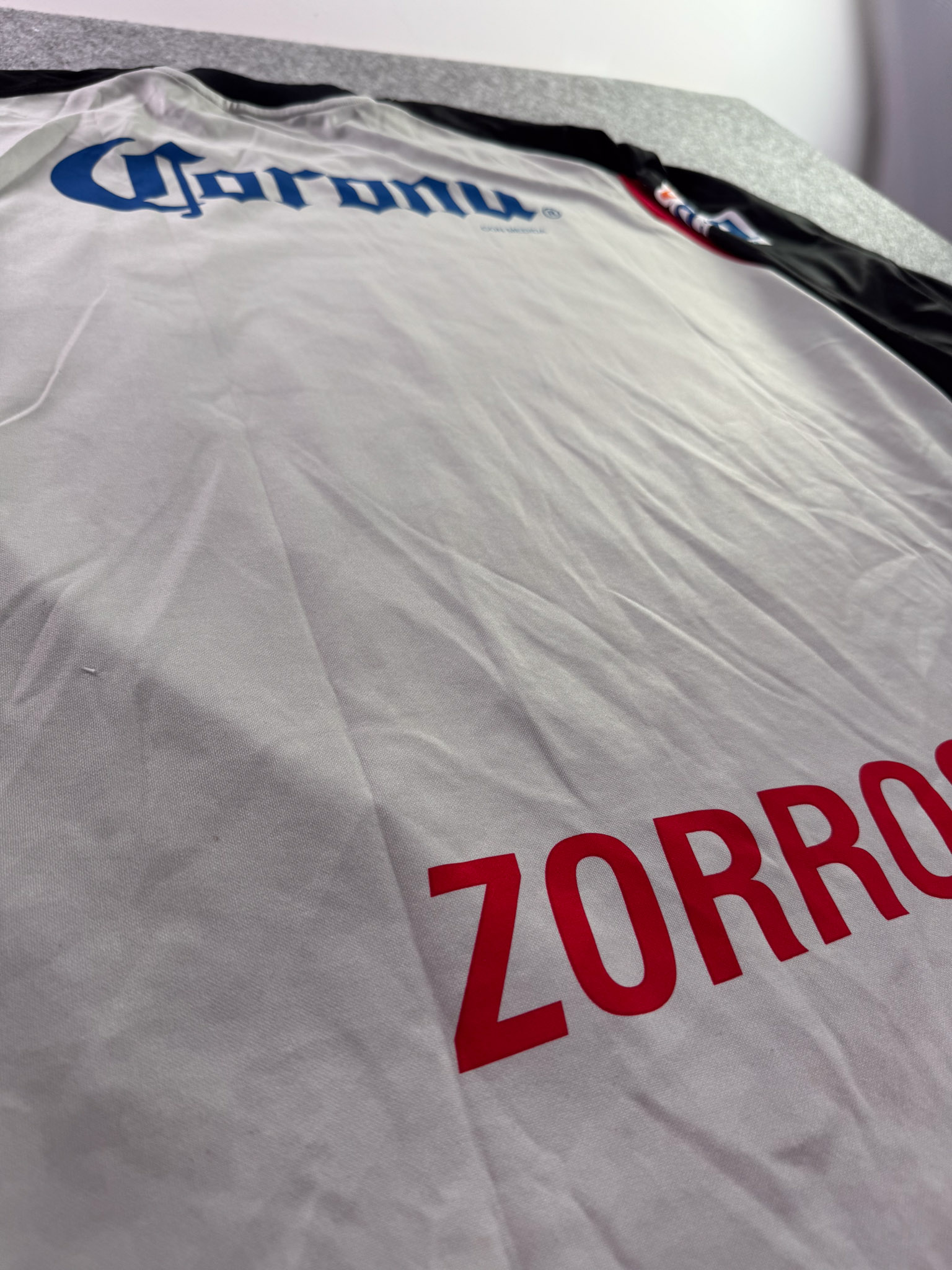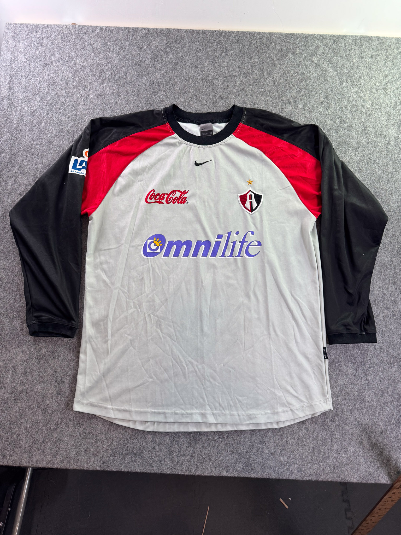 Jersey del Atlas fabricado por Nike, originario de México. Se trata de la equipación Visita correspondiente a la temporada 01-02. Talla XL, con dorsal ‘No’ y en condición Excelente. Detalles: Ninguno.