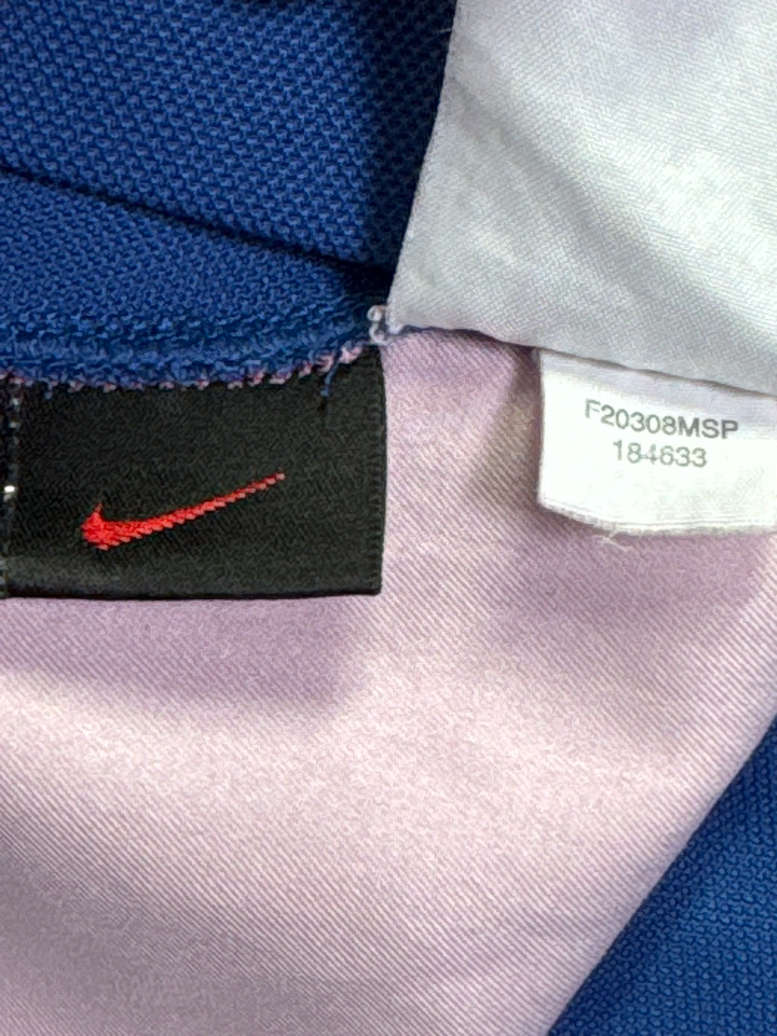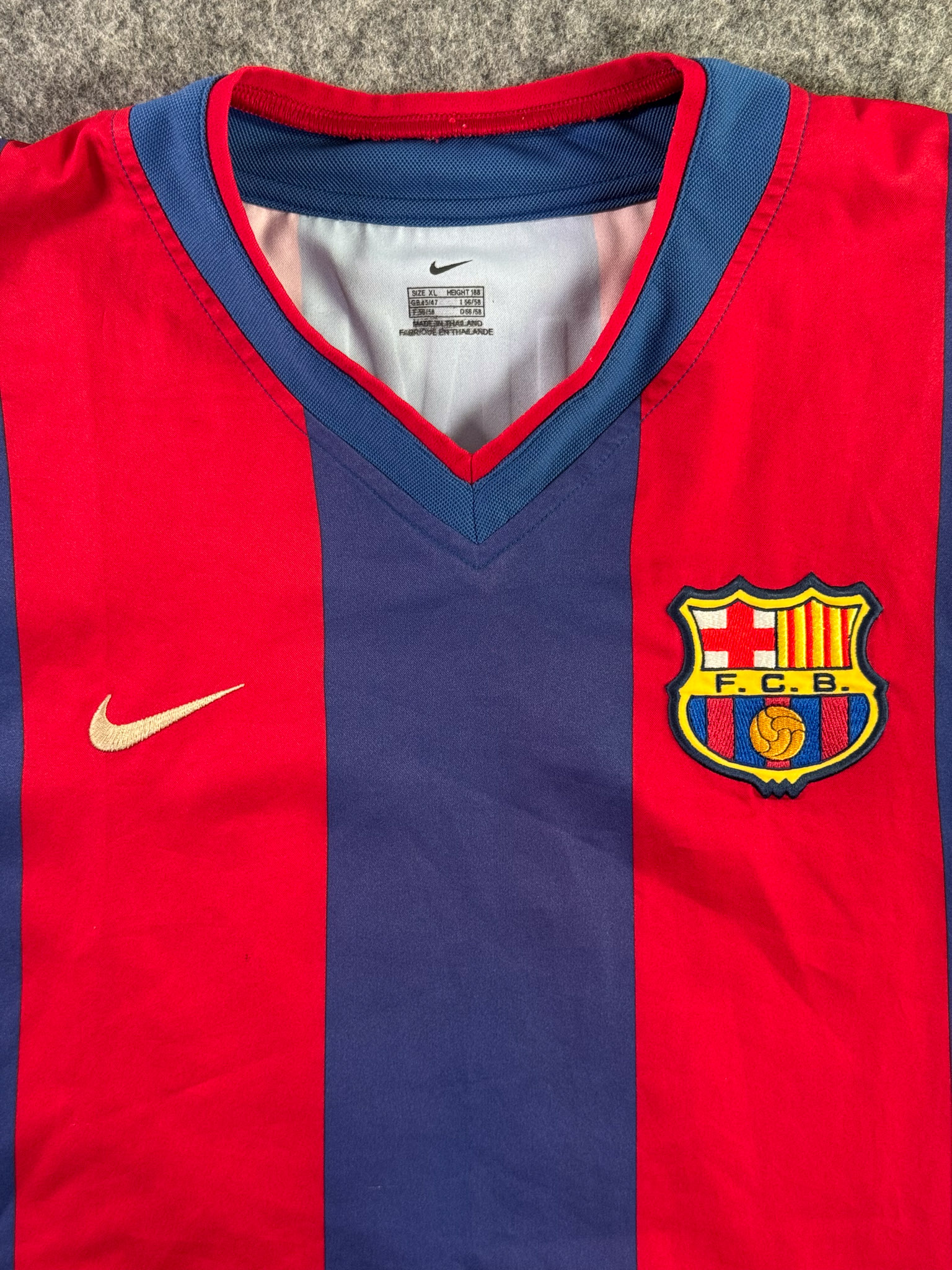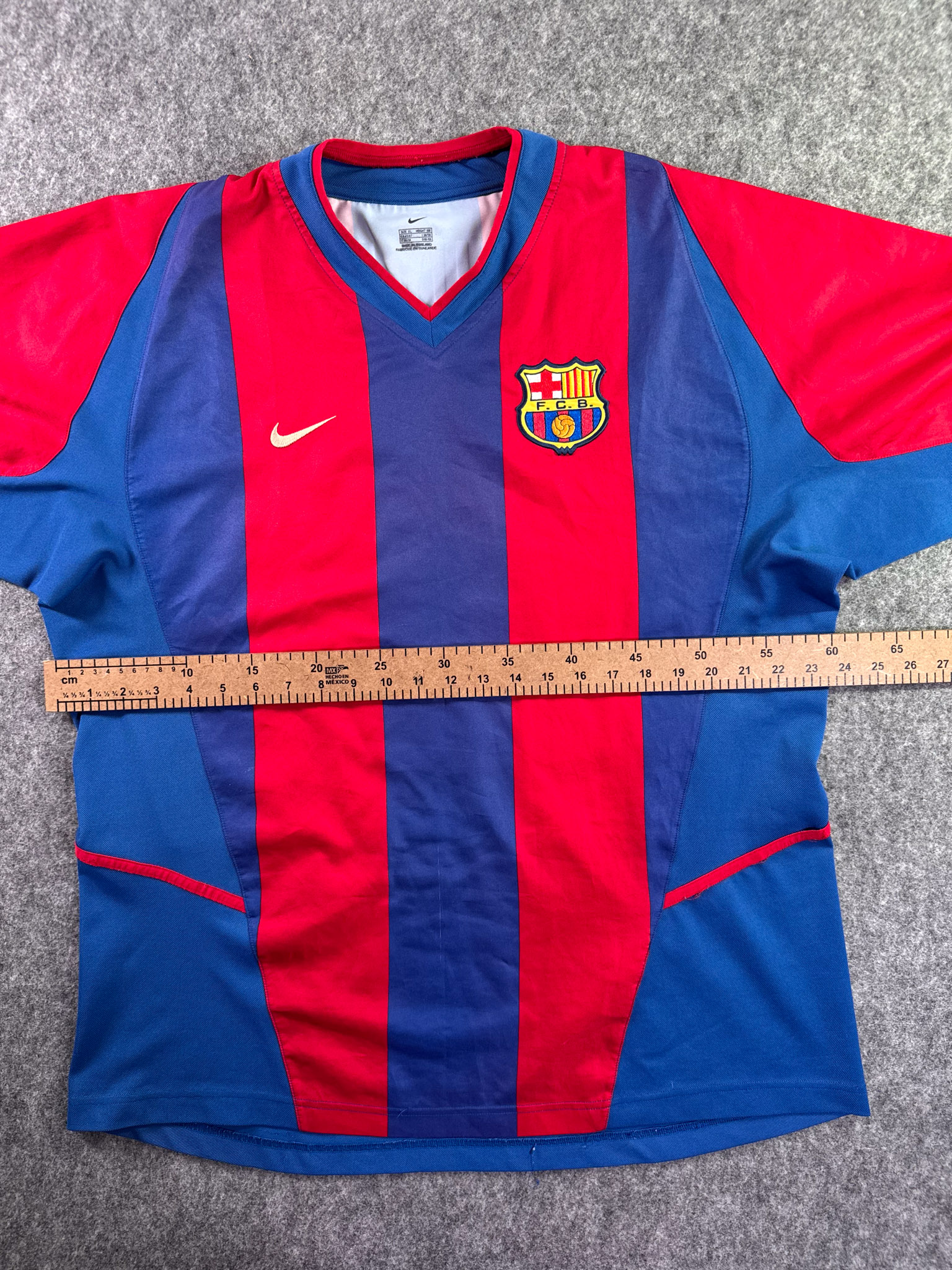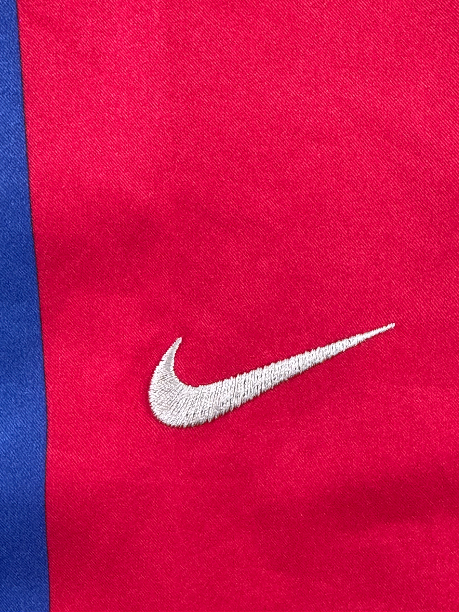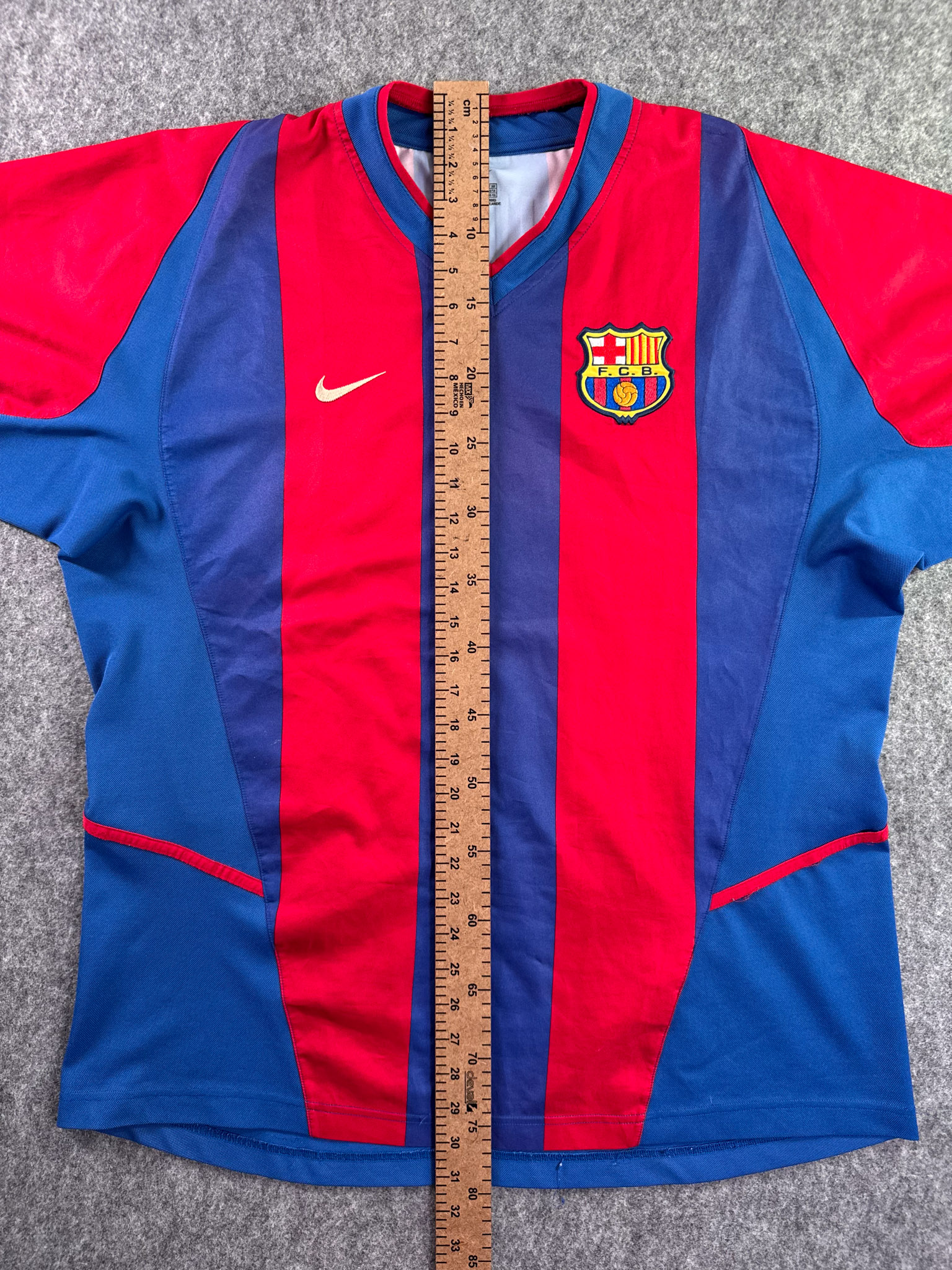 Jersey del Barcelona fabricado por Nike, originario de España. Se trata de la equipación Local correspondiente a la temporada 02-03. Talla XL , con dorsal ‘Kluivert 9’ y en condición Excelente. Detalles: Algunos hilos jalados, ligeras manchas en la tela.
