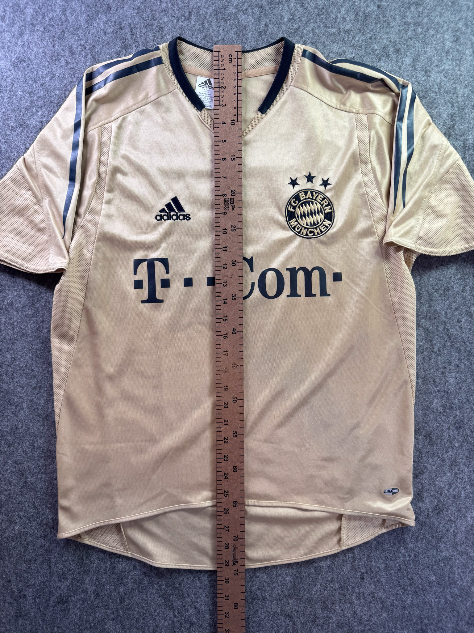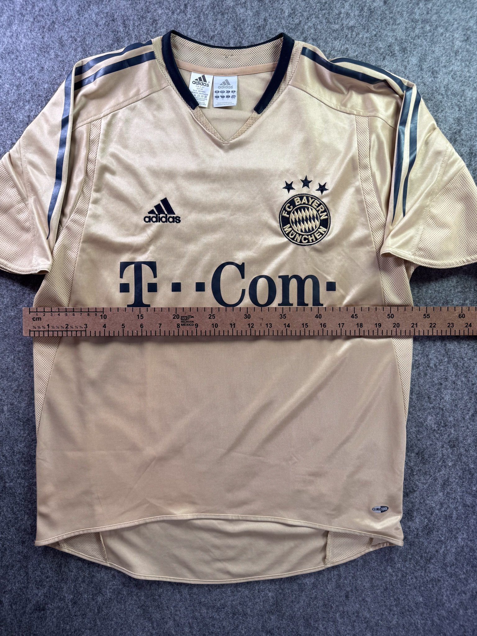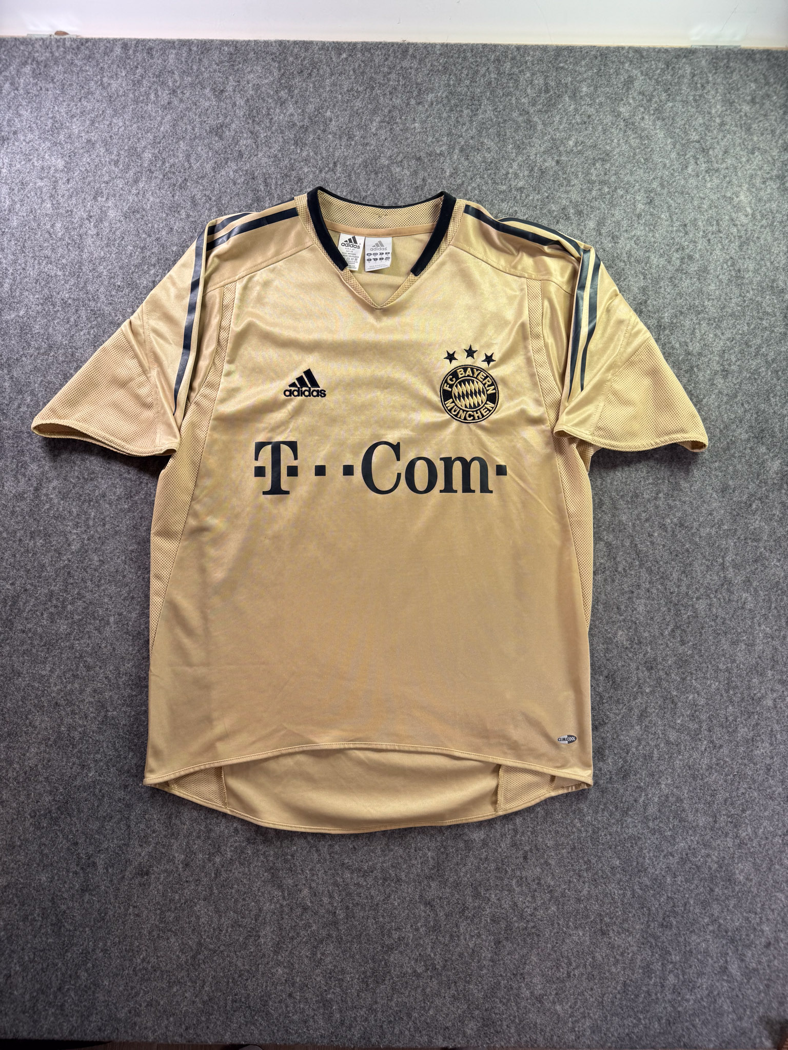 Jersey del Bayern Munich fabricado por Adidas, originario de Alemania. Se trata de la equipación Visita correspondiente a la temporada 05-06. Talla M, con dorsal ‘No’ y en condición Excelente. Detalles: Ninguna.