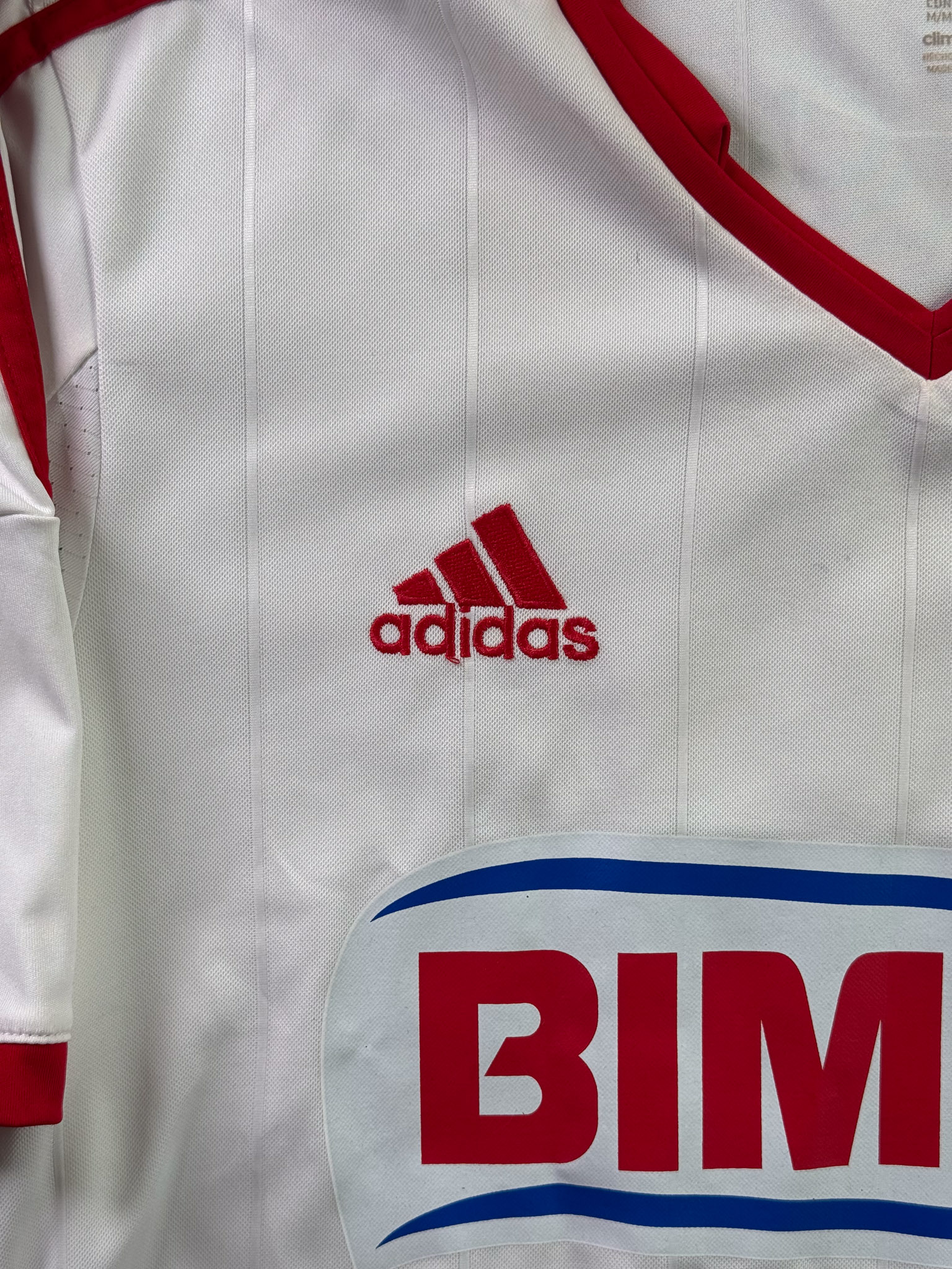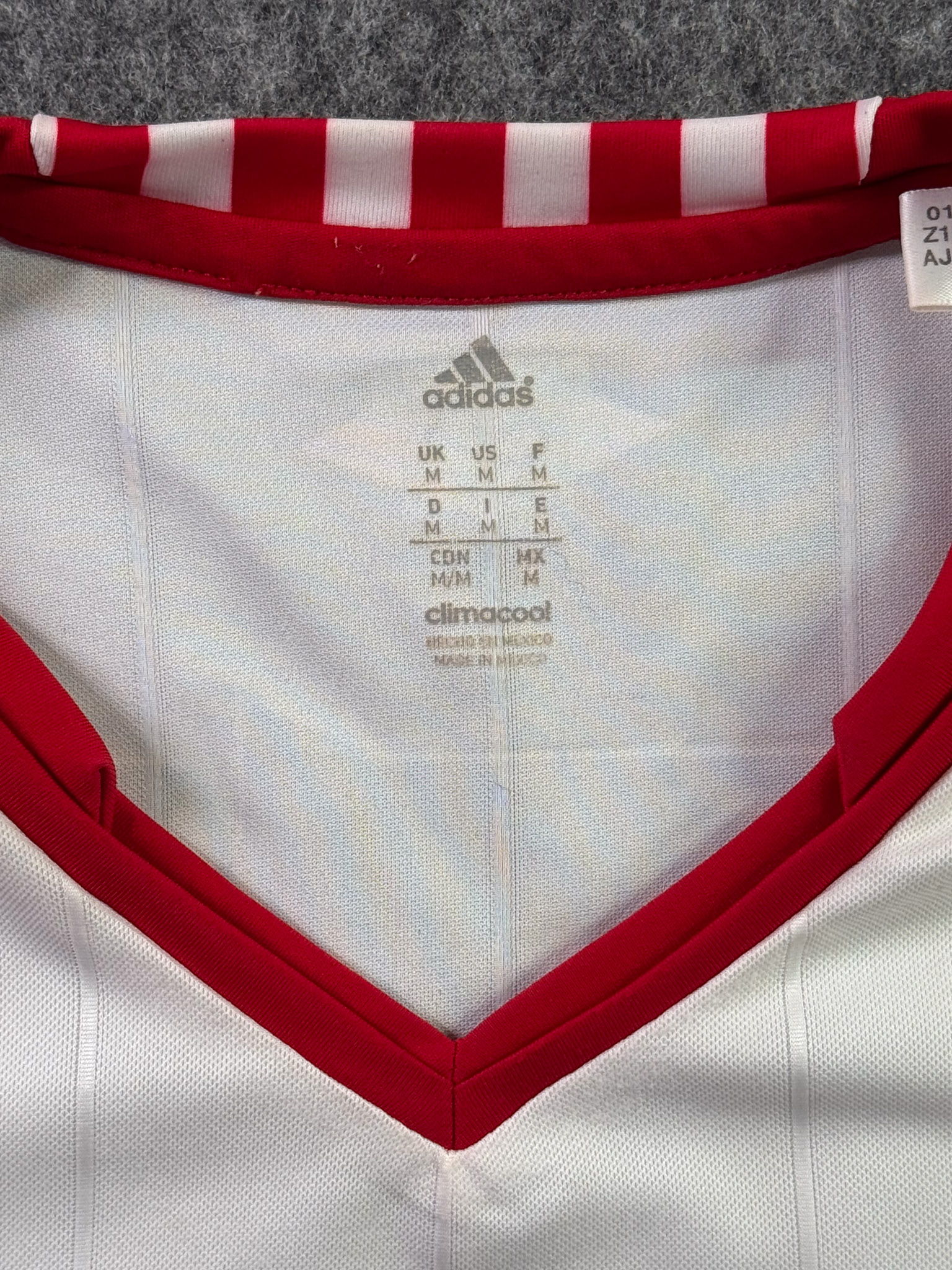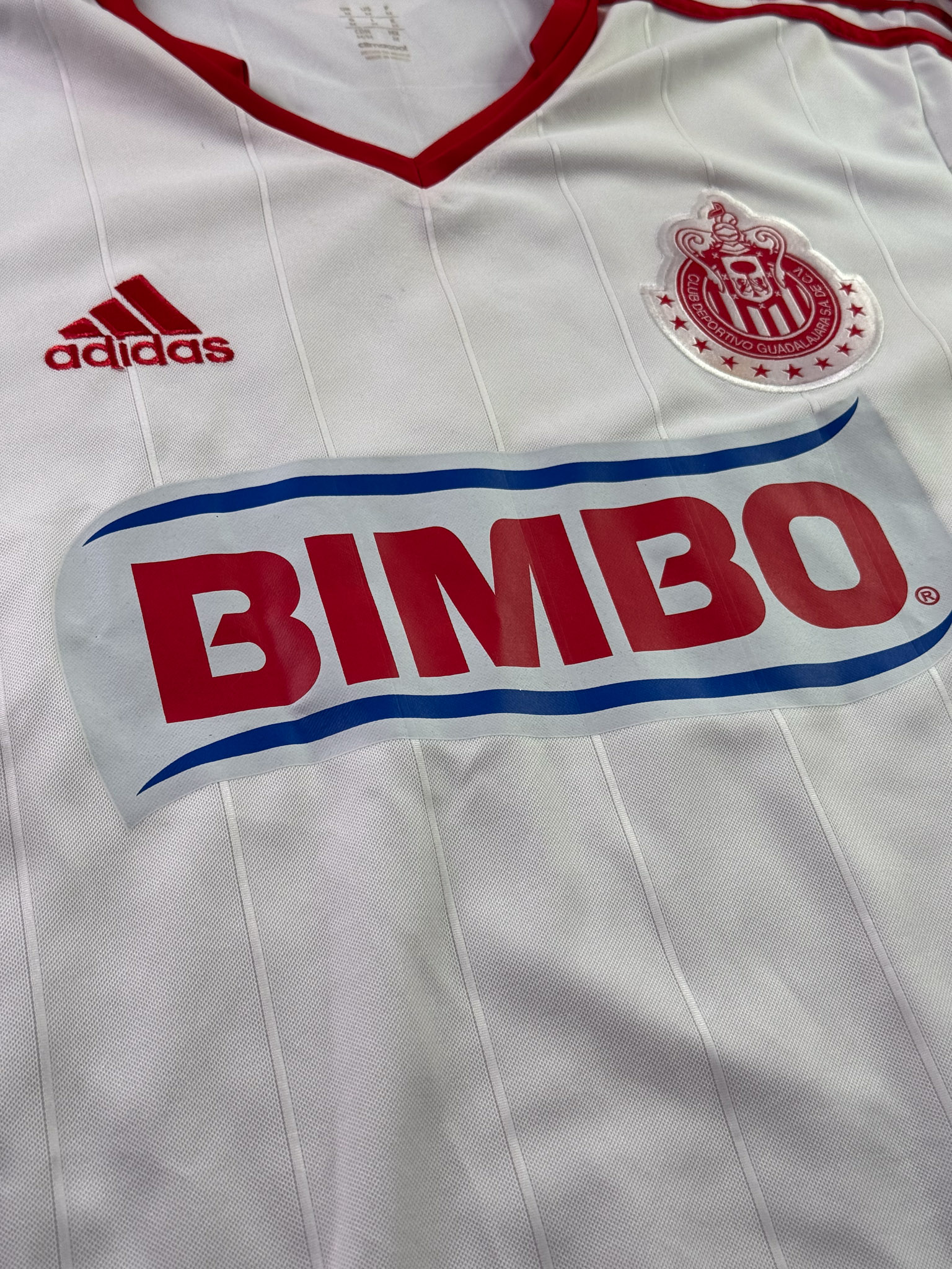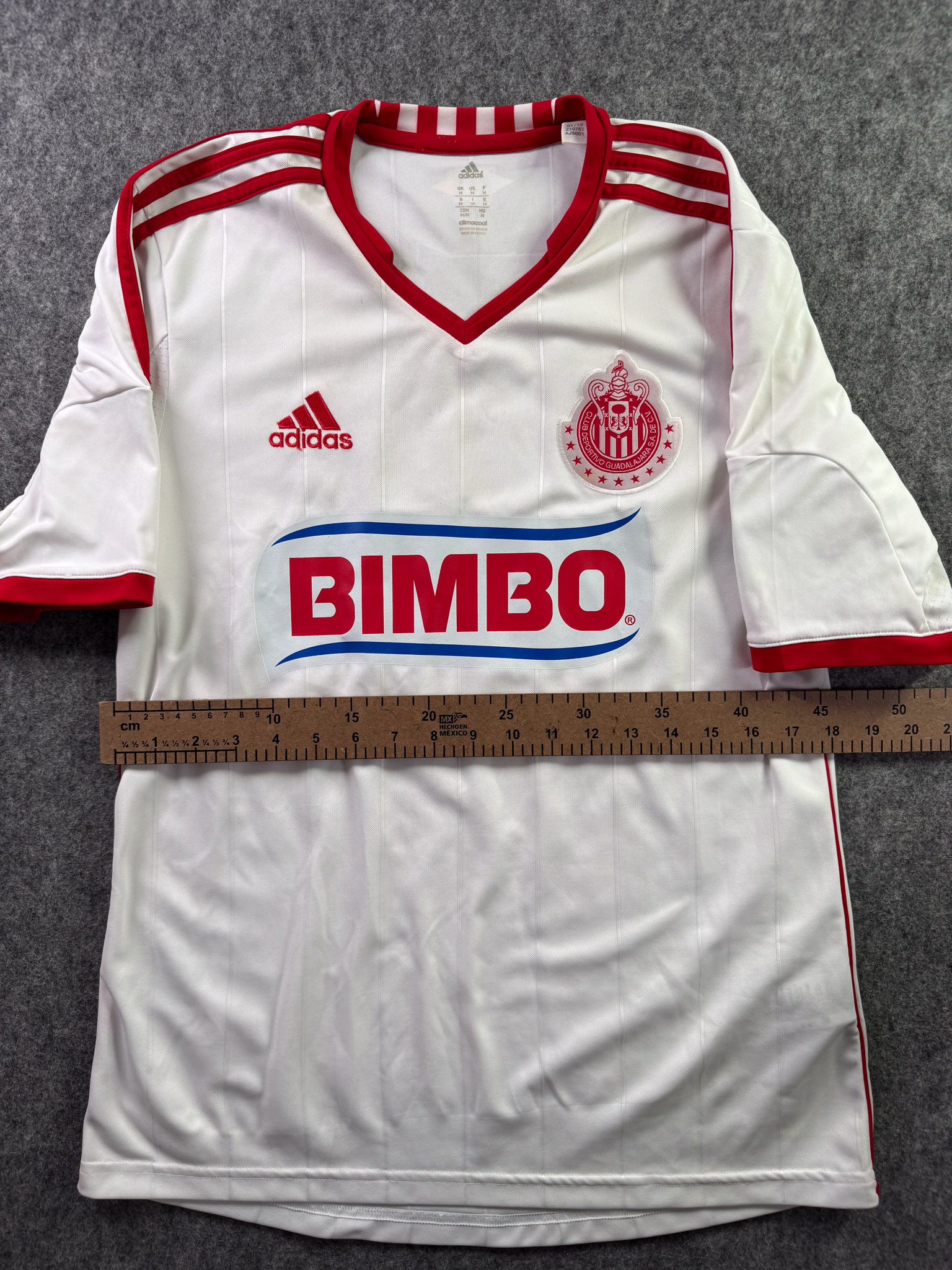 Jersey del Chivas fabricado por Adidas, originario de México. Se trata de la equipación Visita correspondiente a la temporada 12-13. Talla M, con dorsal ‘R.M. Lugo 7’ y en condición Muy Buena. Detalles: Patrocinios de Tecate y Pepsi restaurados.