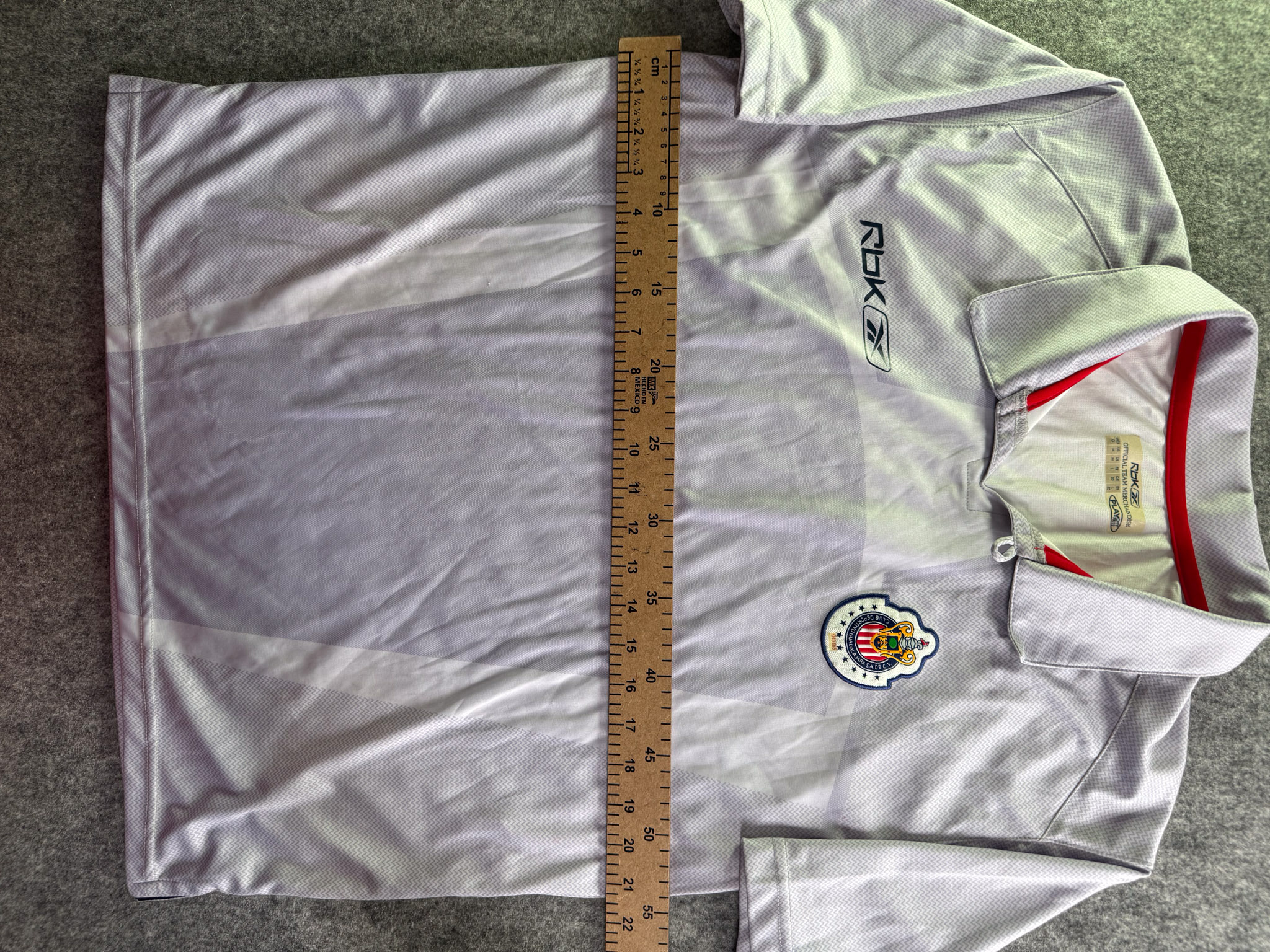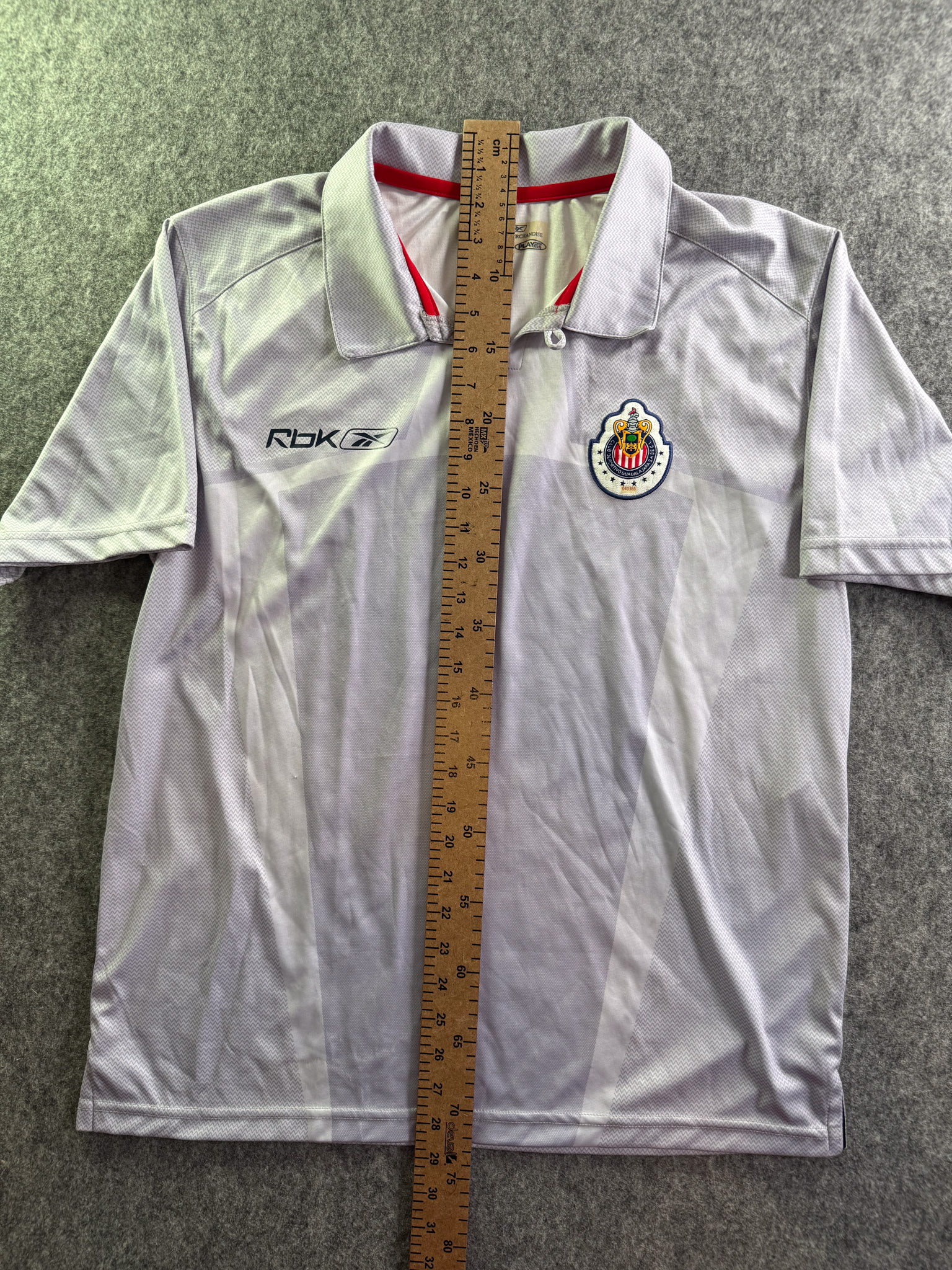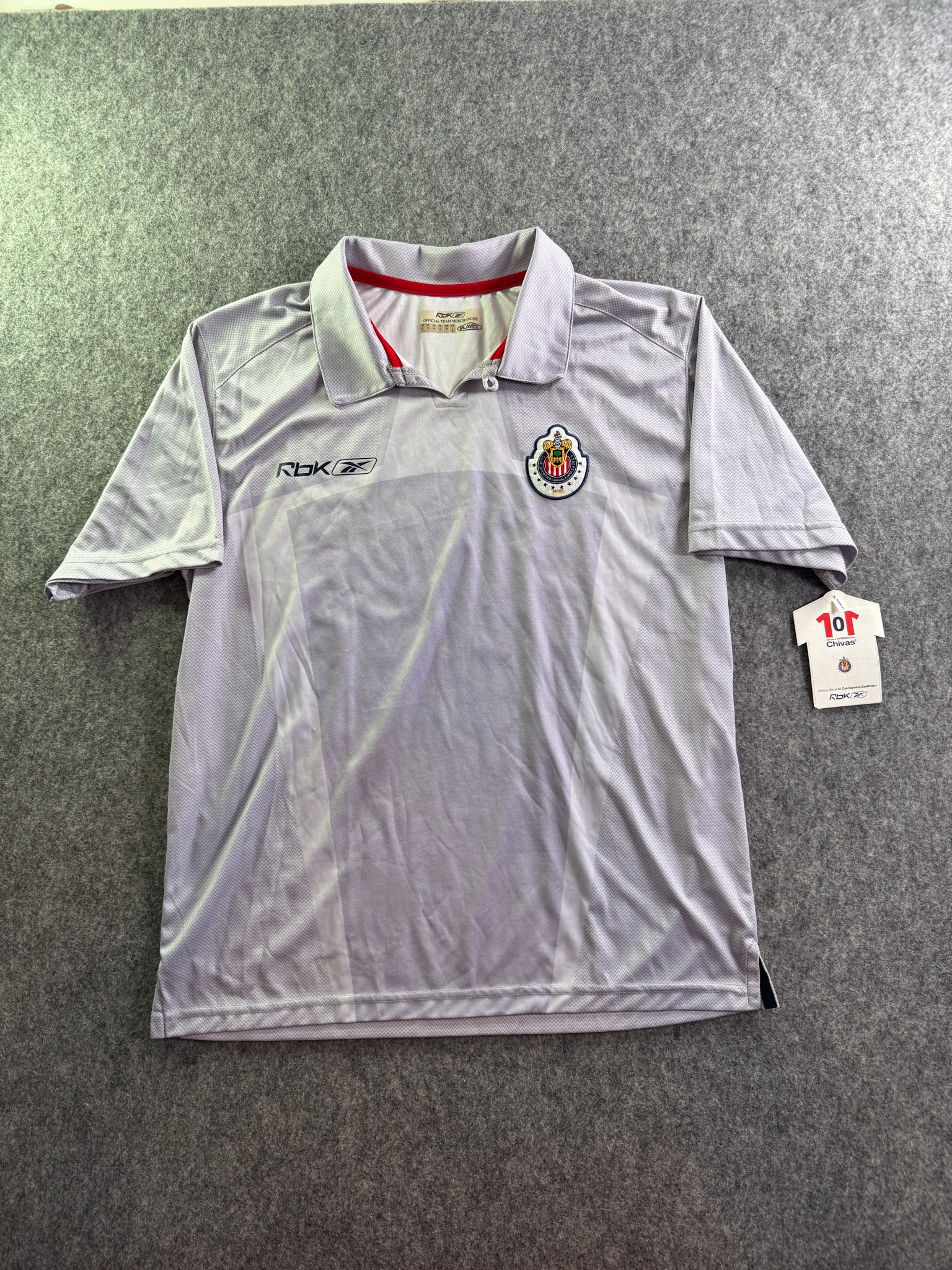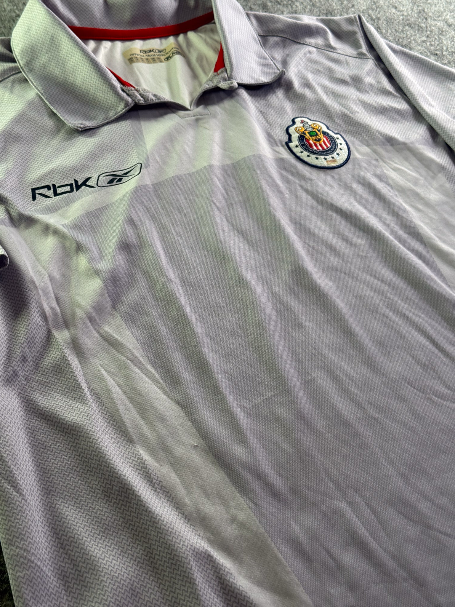 Jersey del Chivas fabricado por Reebok, originario de México. Se trata de la equipación Concentración correspondiente a la temporada 06-07. Talla L, con dorsal ‘No’ y en condición Excelente. Detalles: Nueva con etiquetas.