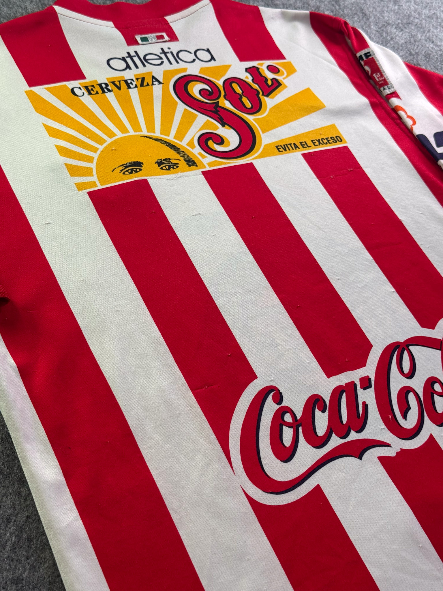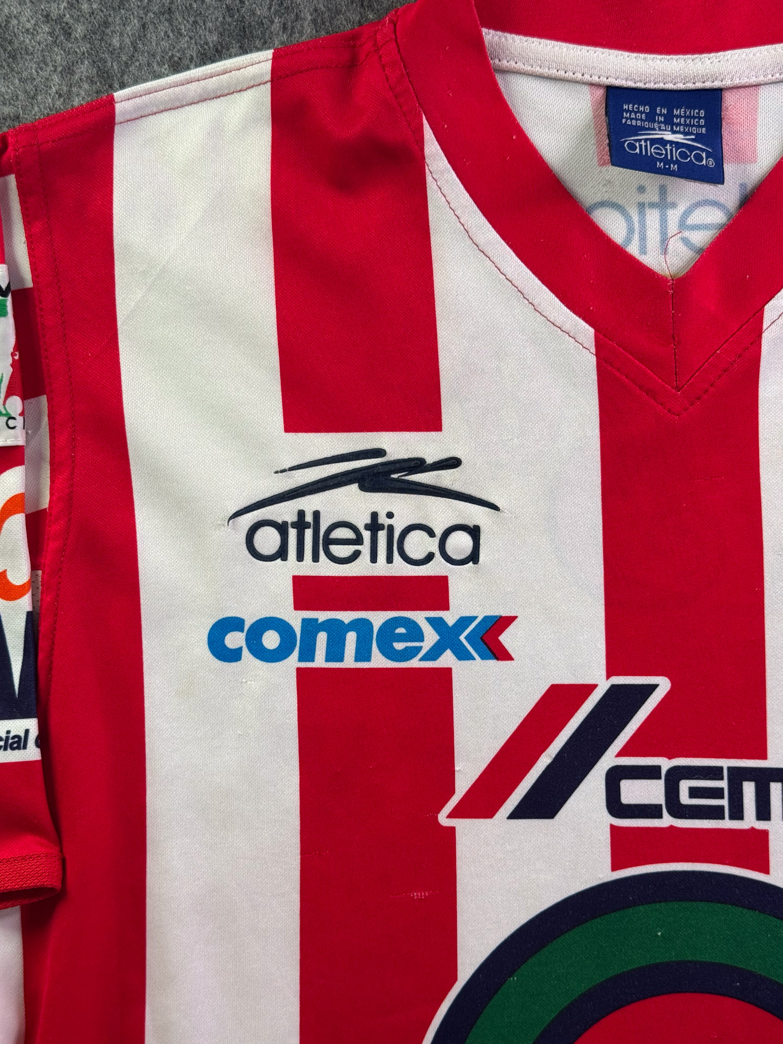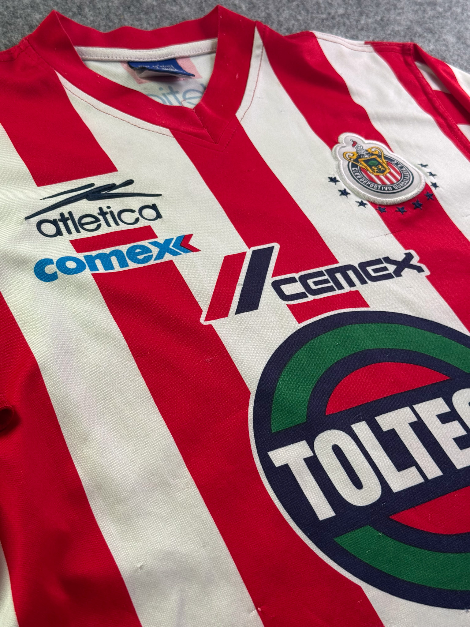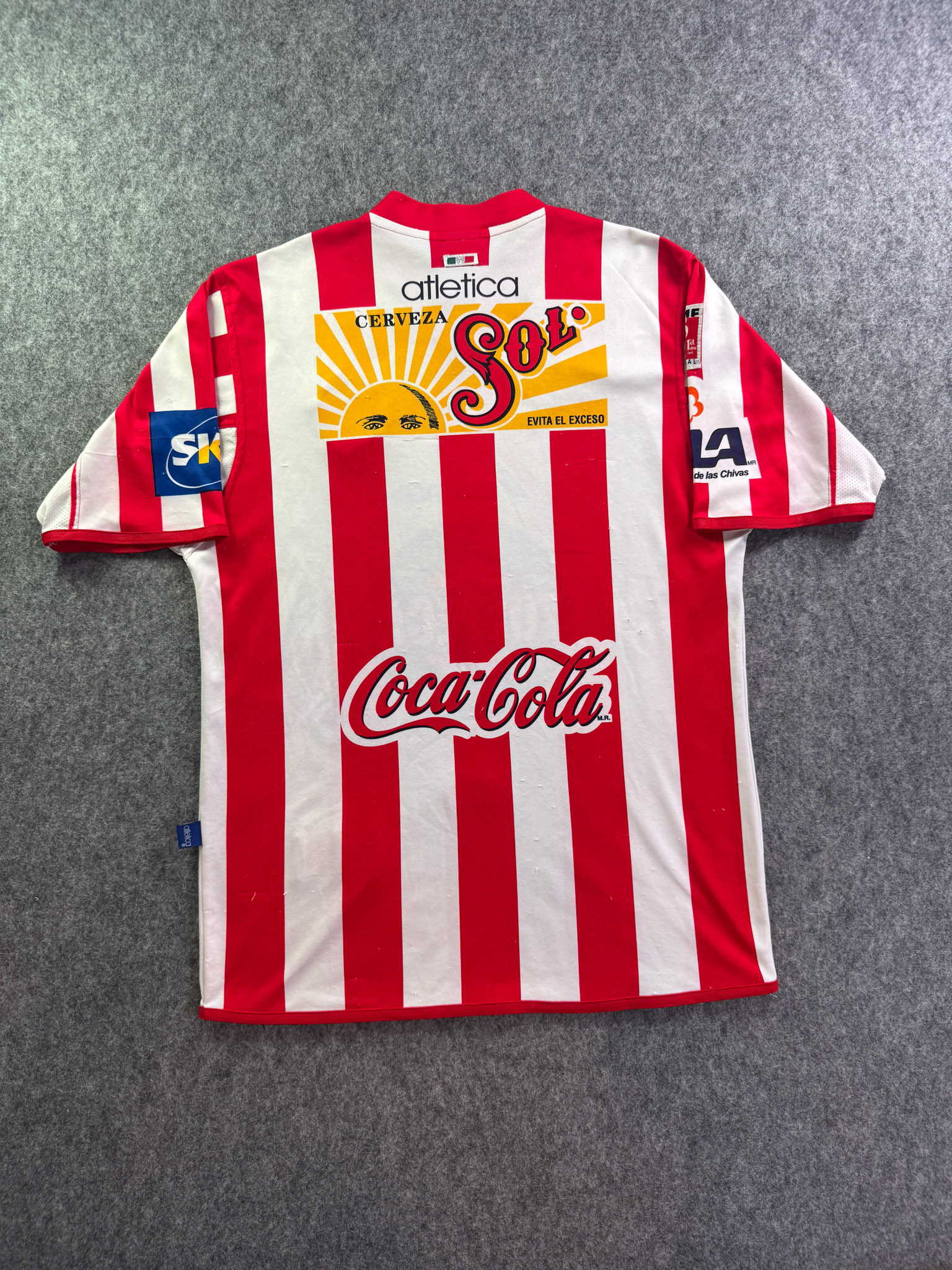Jersey del Chivas fabricado por Atletica, originario de México. Se trata de la equipación Local correspondiente a la temporada 01-02. Talla M, con dorsal ‘No’ y en condición Buena. Detalles: Varios hilos jalados.
