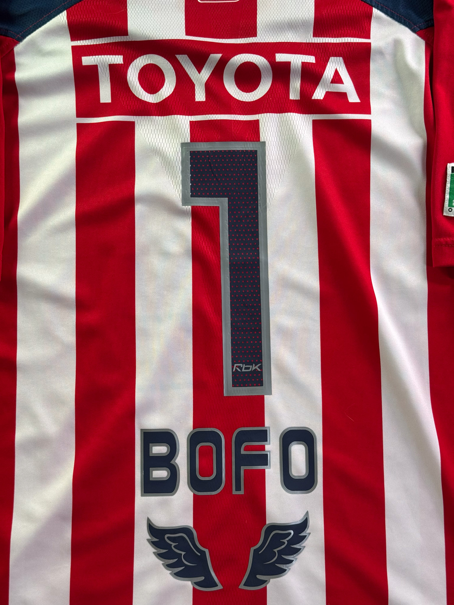 Jersey del Chivas fabricado por Reebok, originario de México. Se trata de la equipación Local correspondiente a la temporada 06-07. Talla L, con dorsal ‘Bofo 1’ y en condición Excelente. Detalles: Impecable.