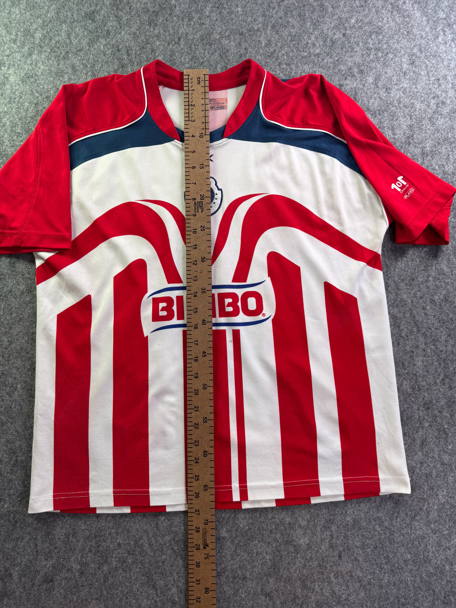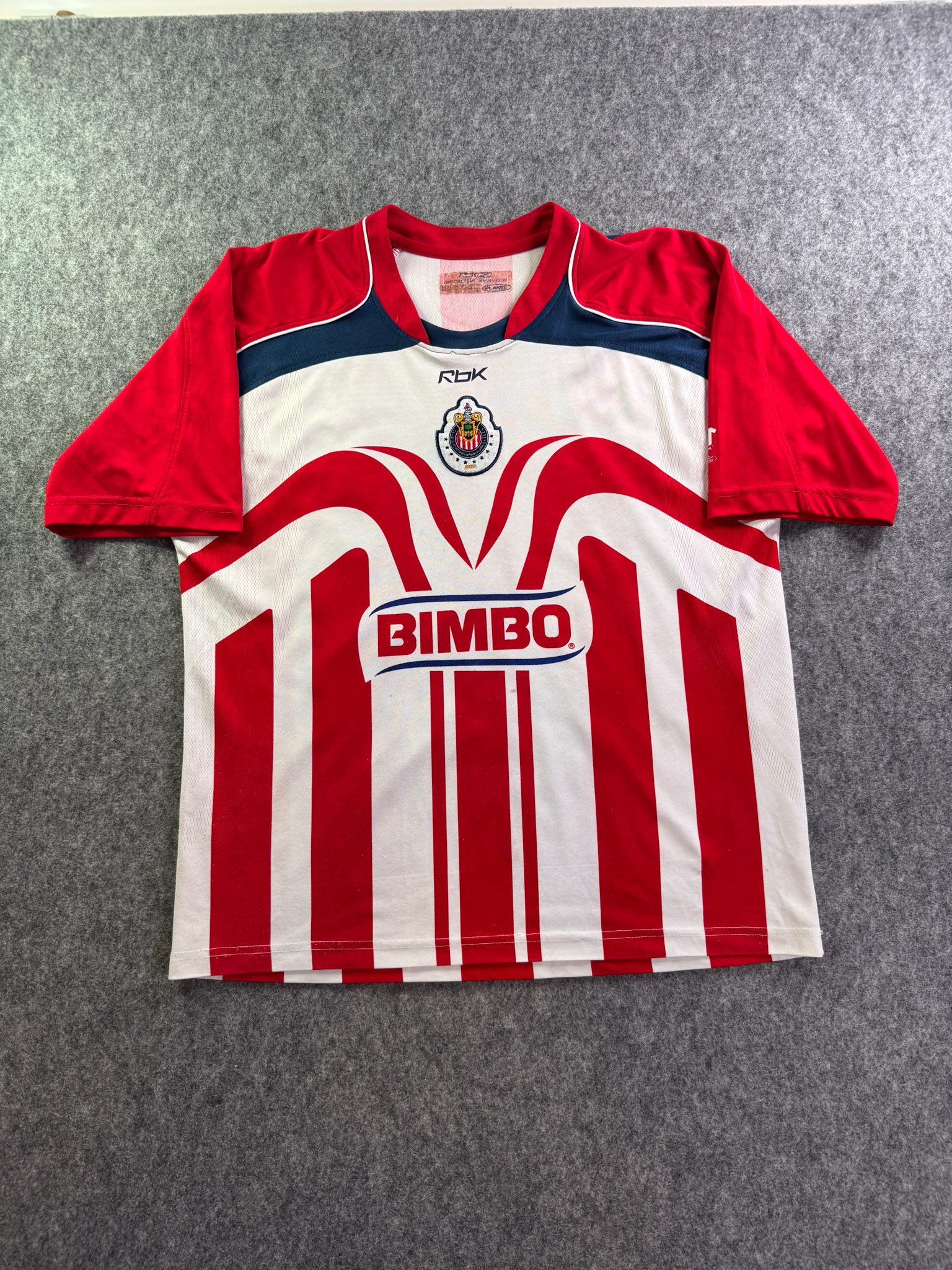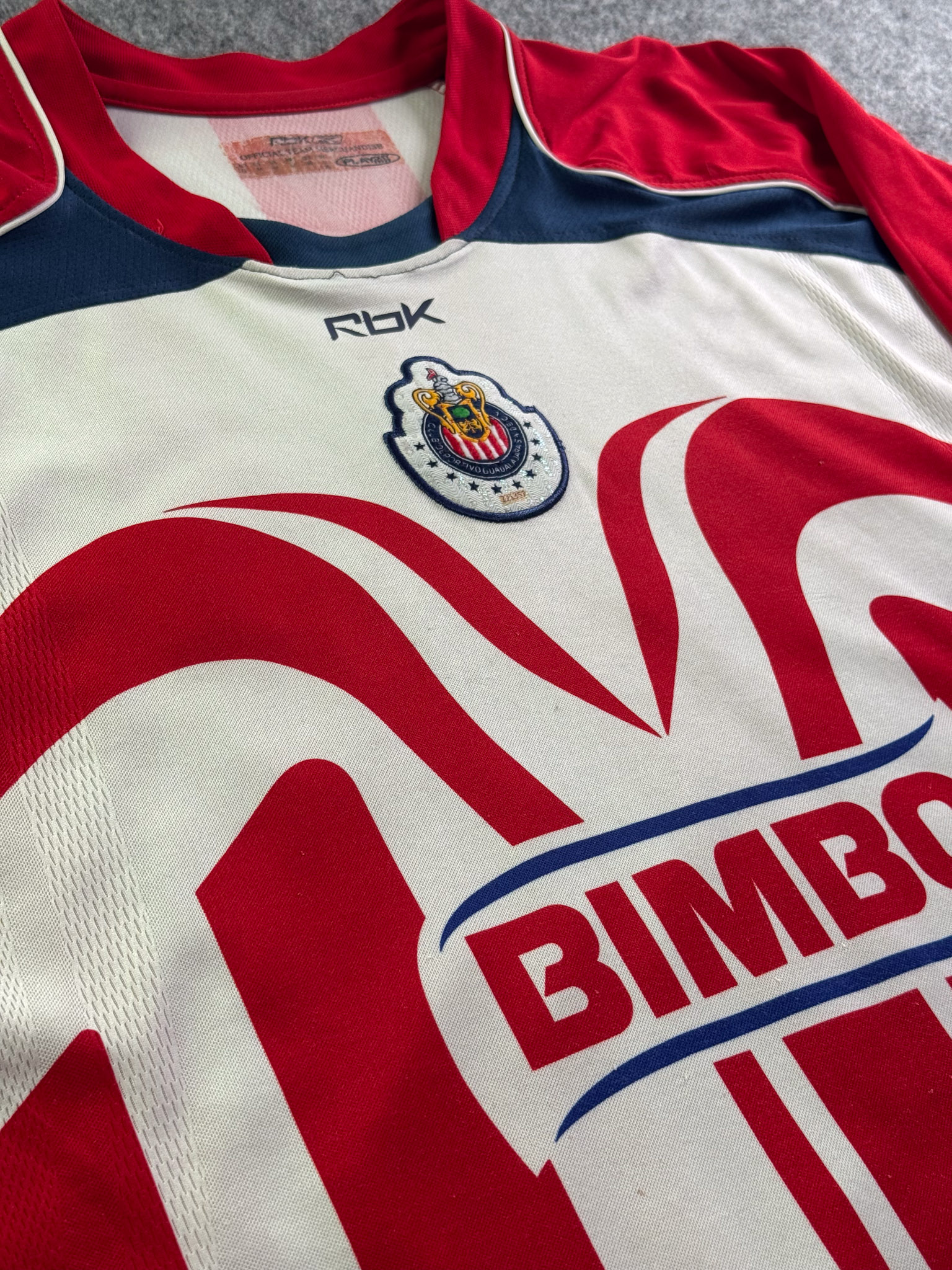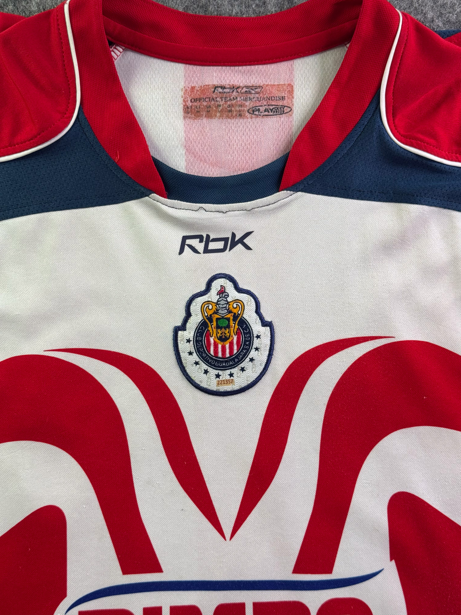 Jersey del Chivas fabricado por Reebok, originario de México. Se trata de la equipación Local correspondiente a la temporada 06-07. Talla L, con dorsal ‘J. Hernández 45’ y en condición Muy Buena. Detalles: Costuras ligeramente dañadas en el área del cuello frontal.
