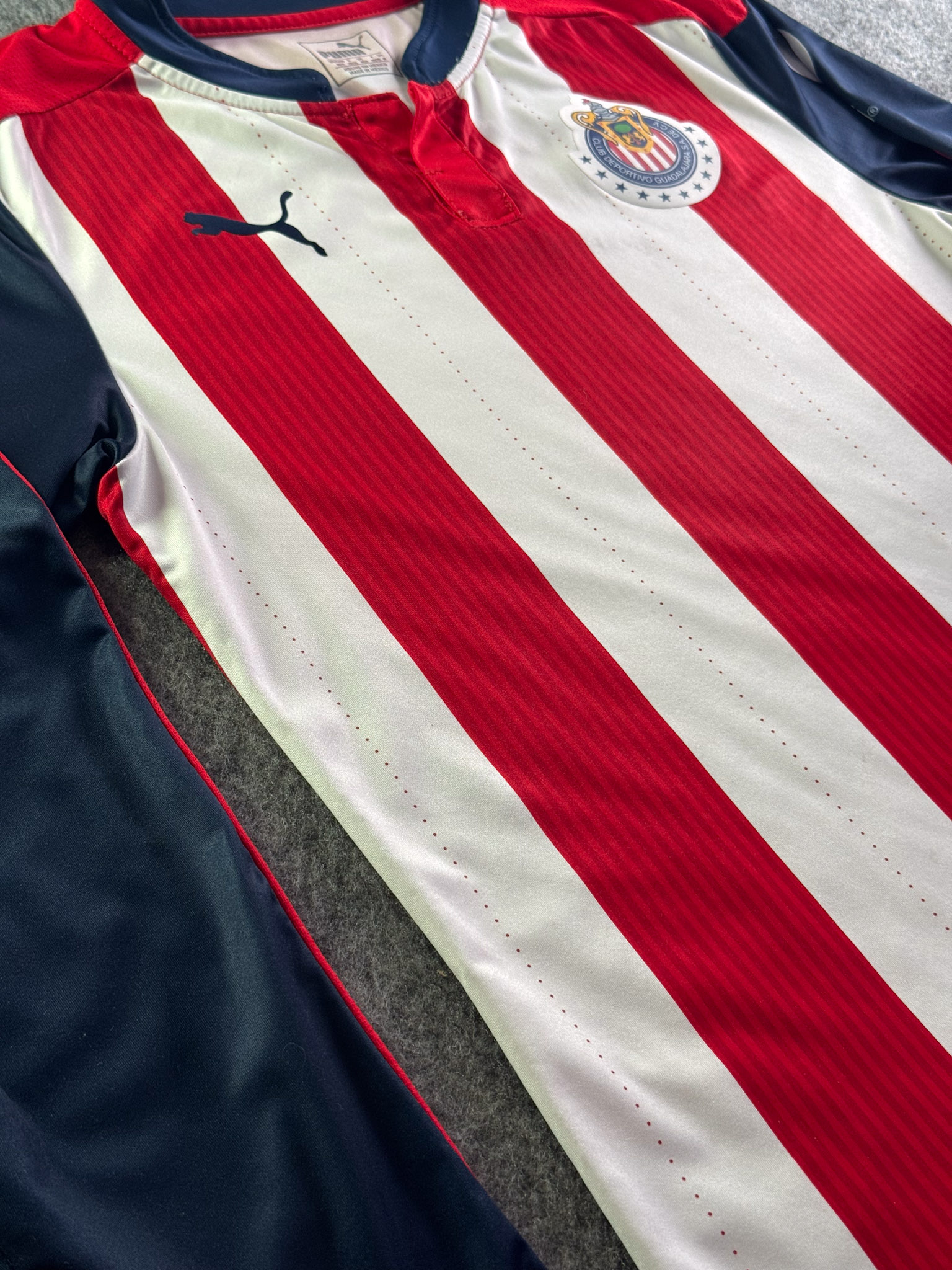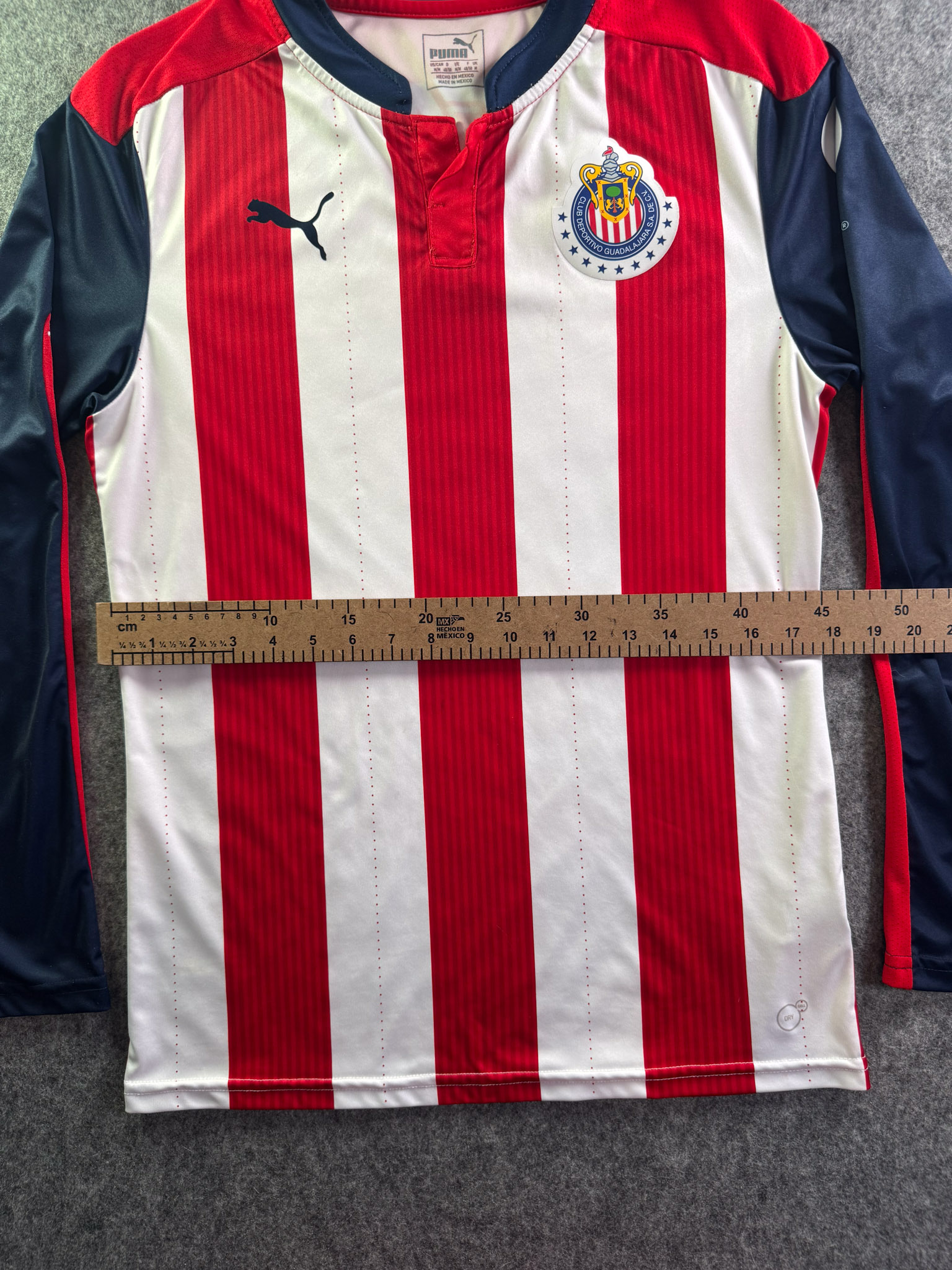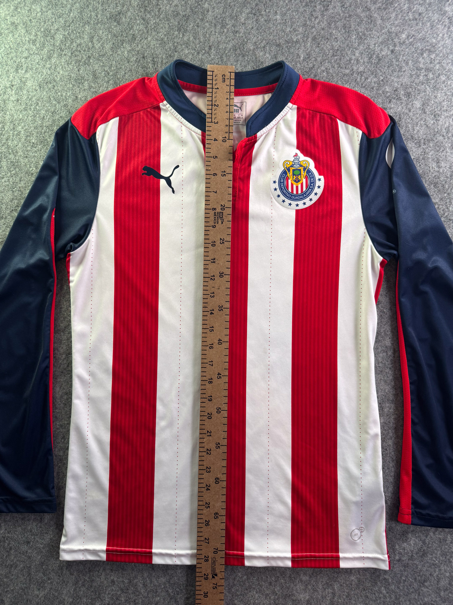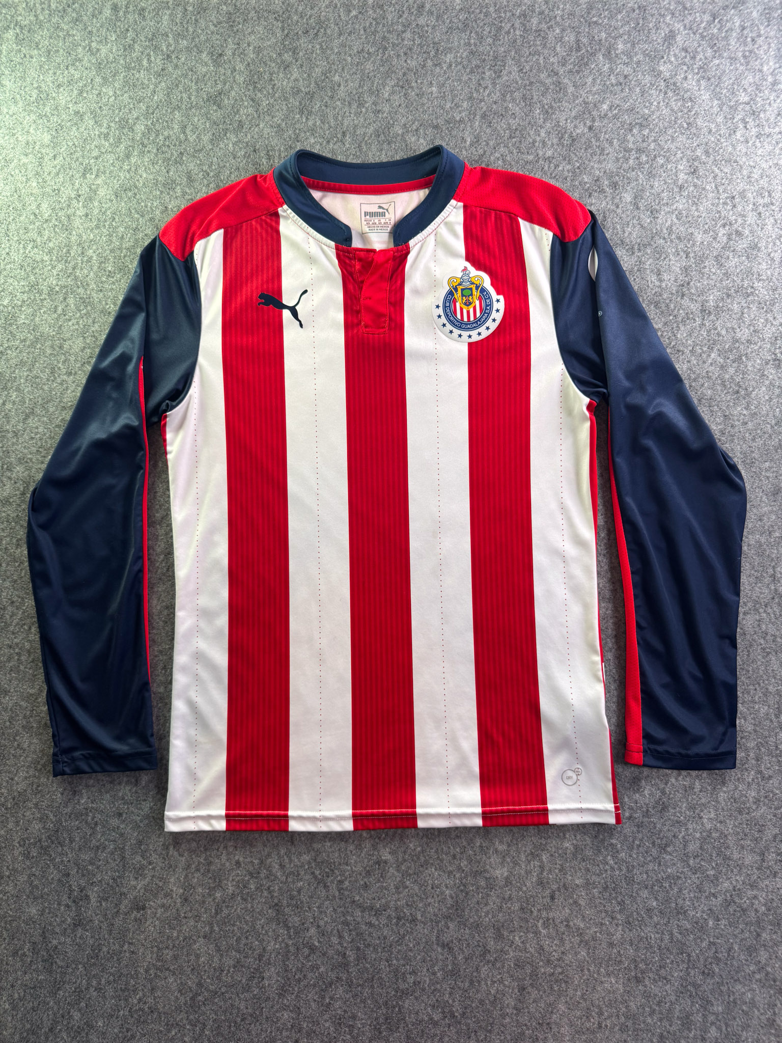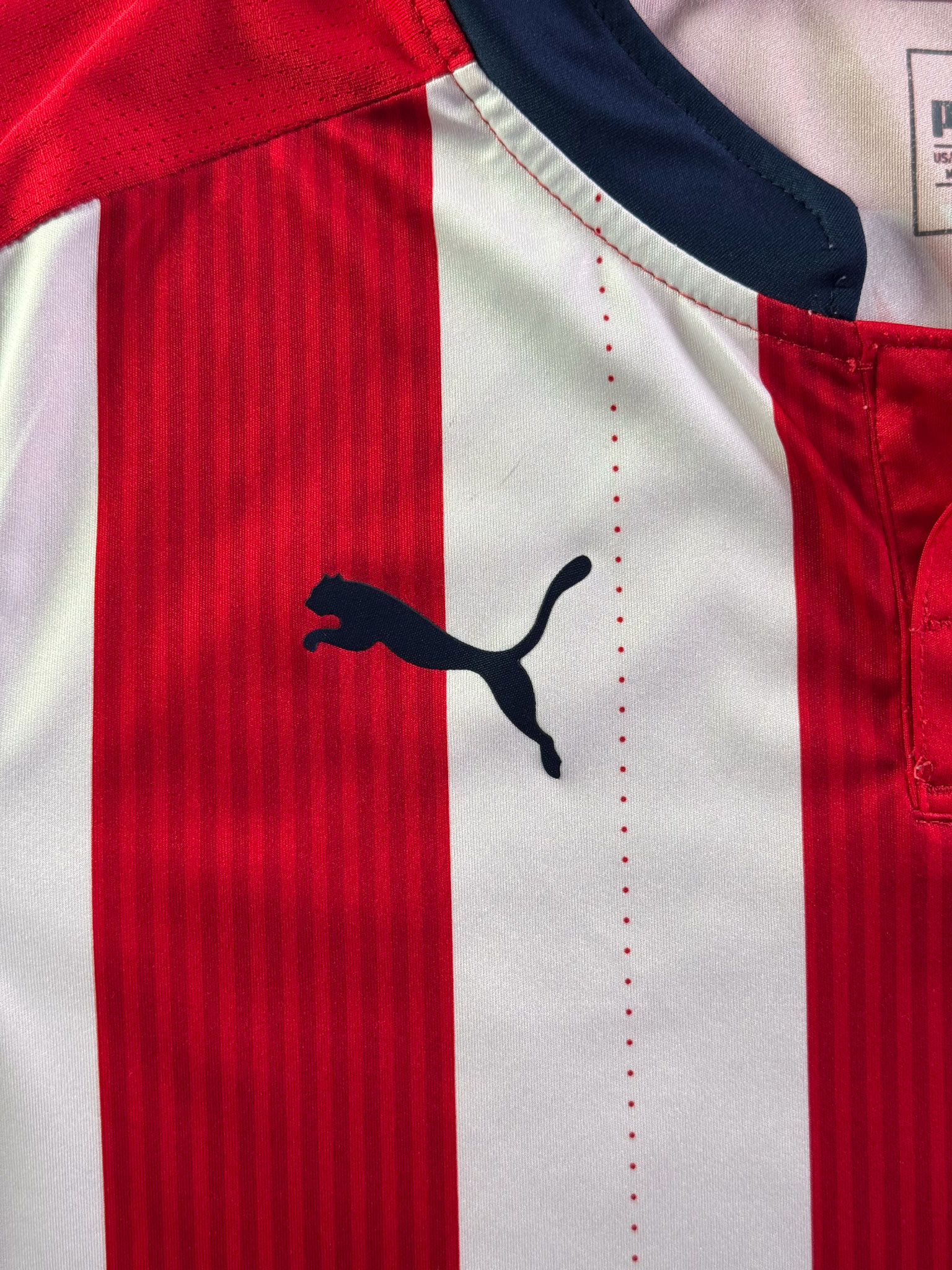 Jersey del Chivas fabricado por Puma, originario de México. Se trata de la equipación Local correspondiente a la temporada 16-17. Talla M, con dorsal ‘No’ y en condición Excelente. Detalles: Ninguno.