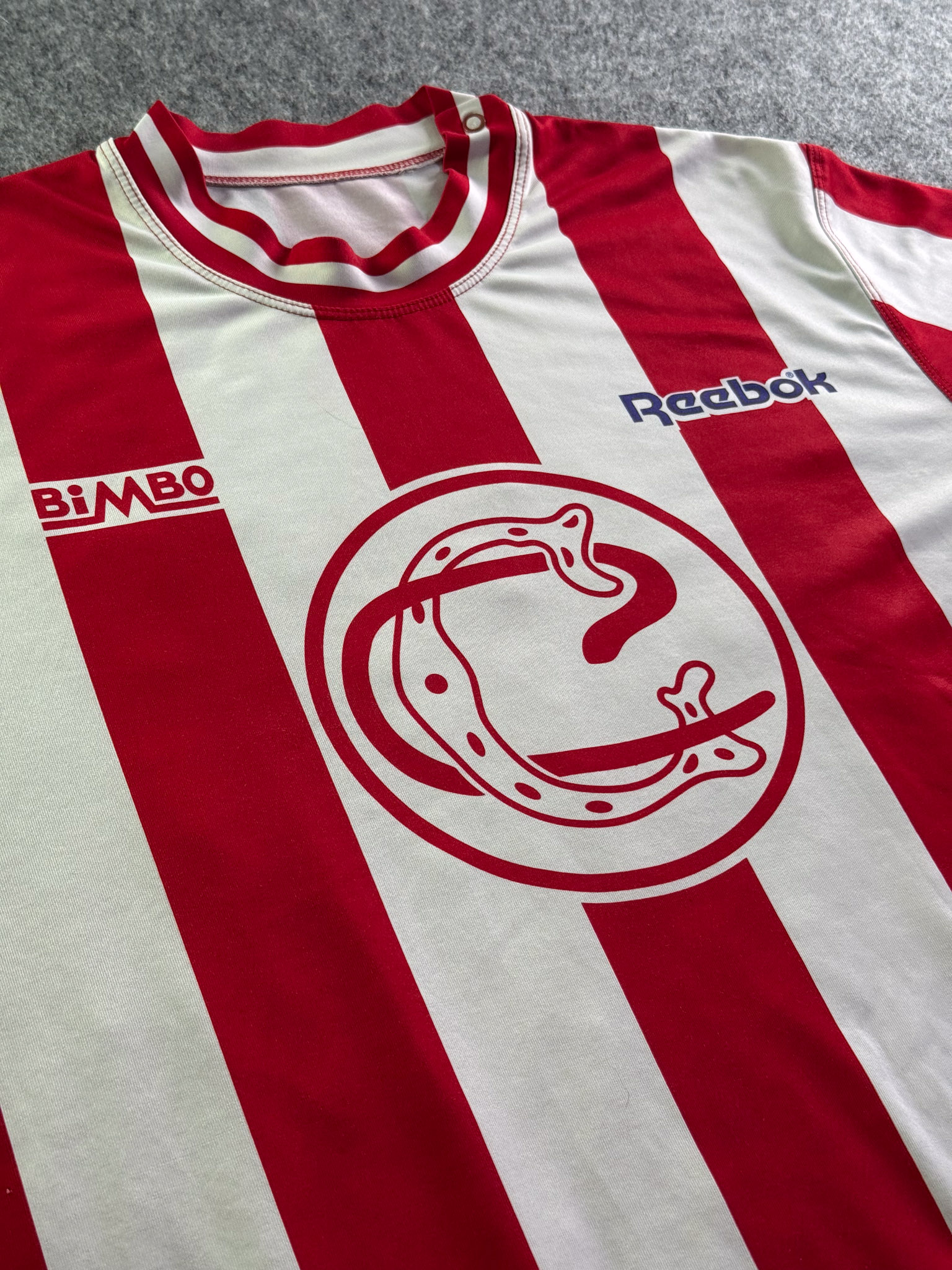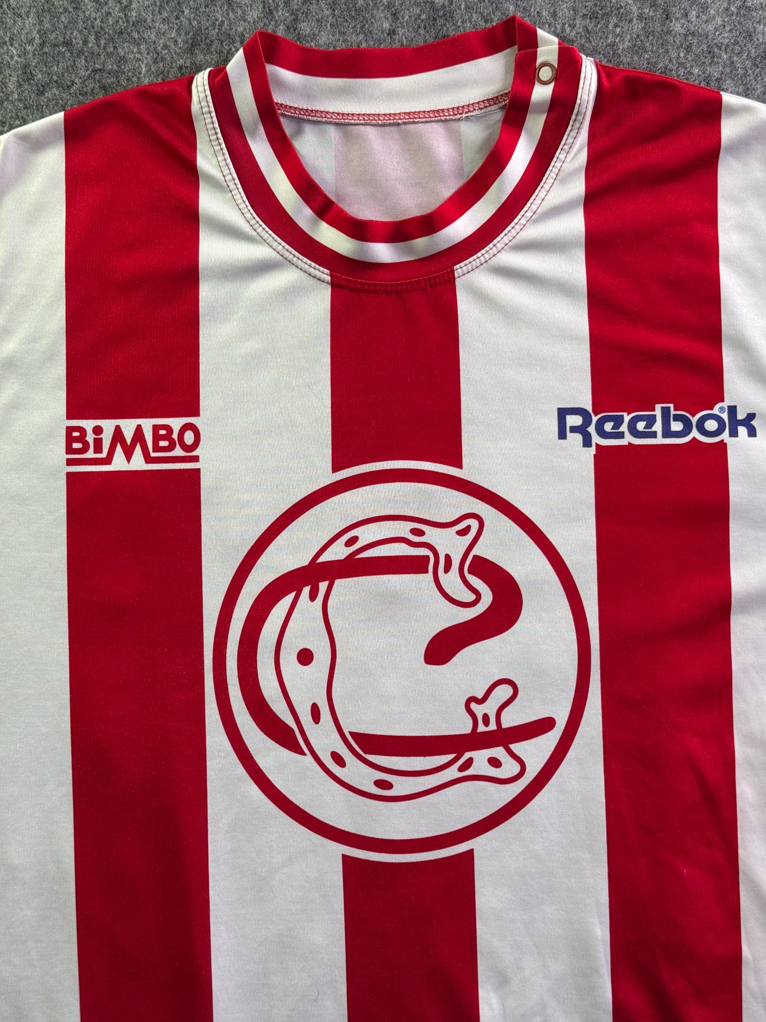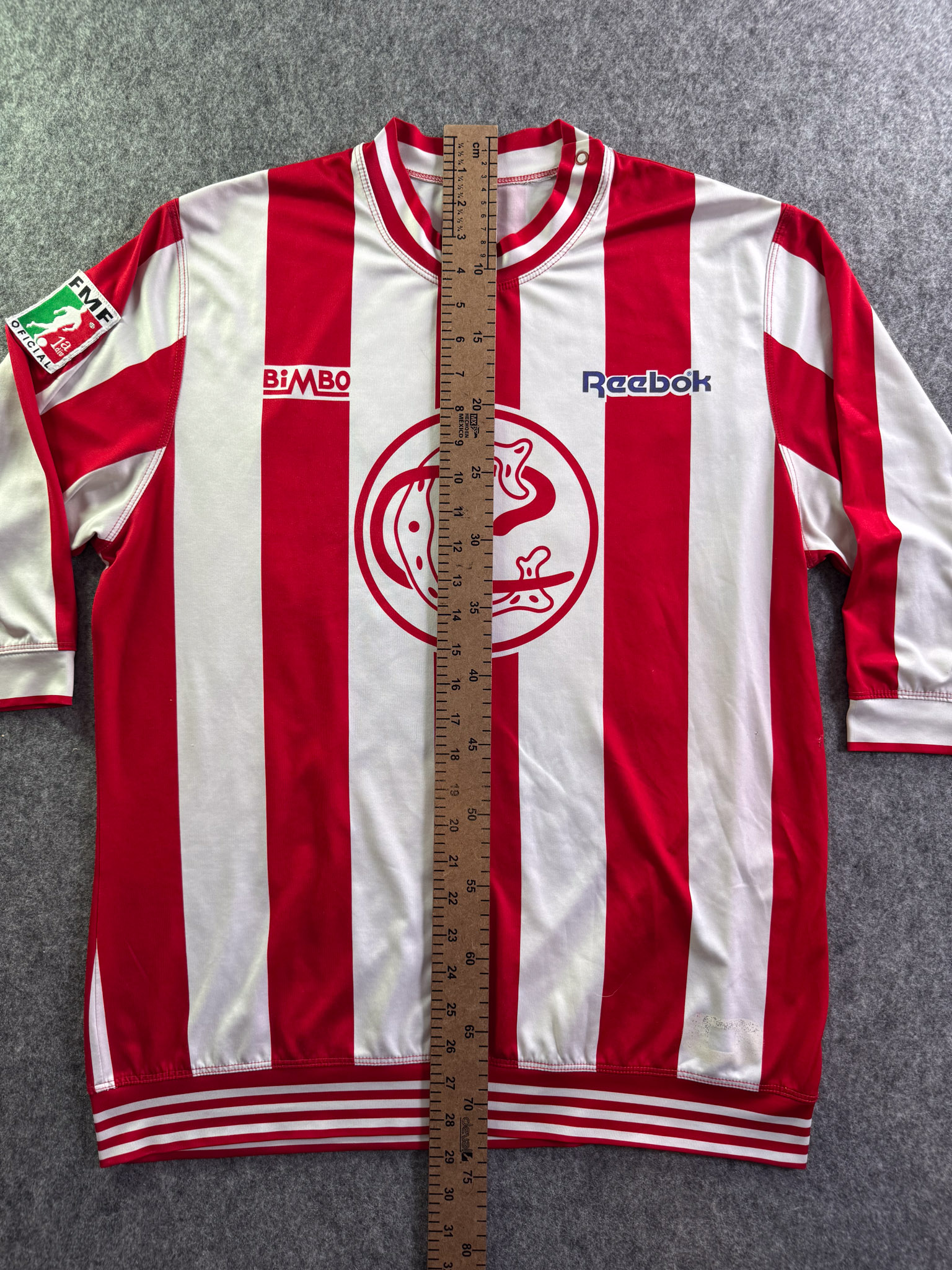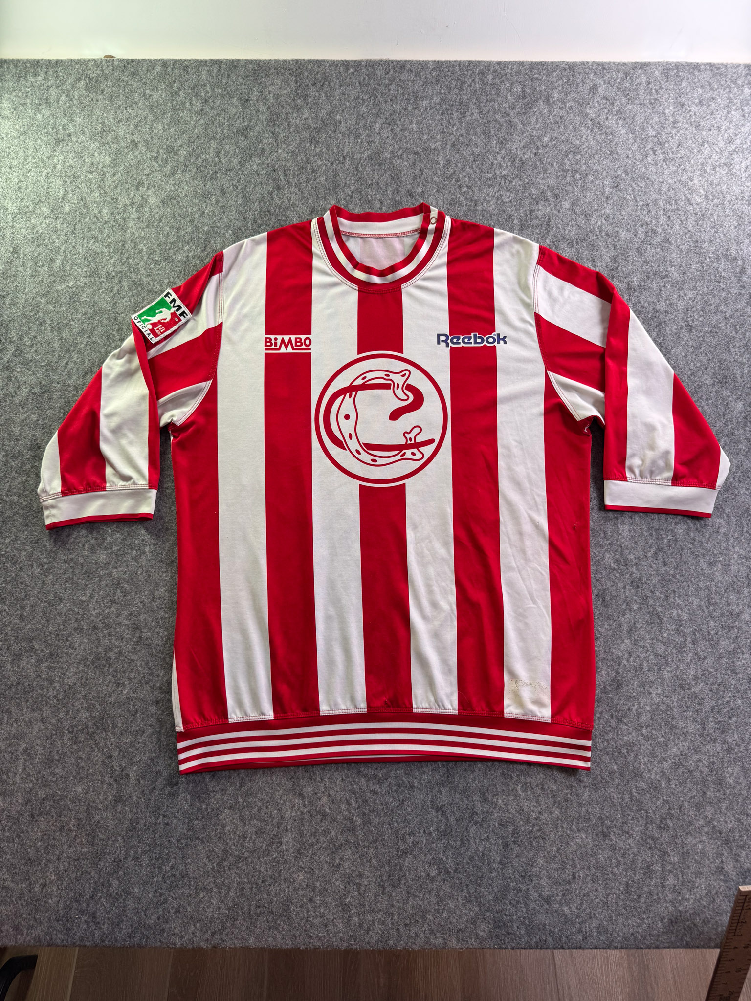 Jersey del Chivas fabricado por Reebok, originario de México. Se trata de la equipación Local correspondiente a la temporada 05-06. Talla L, con dorsal ‘Bofo 100 My Angel’ y en condición Muy Buena. Detalles: Ligero daño en la parte frontal izquierda, algunos hilos jalados, vini inferior izquierdo dañado, parche libertadores.