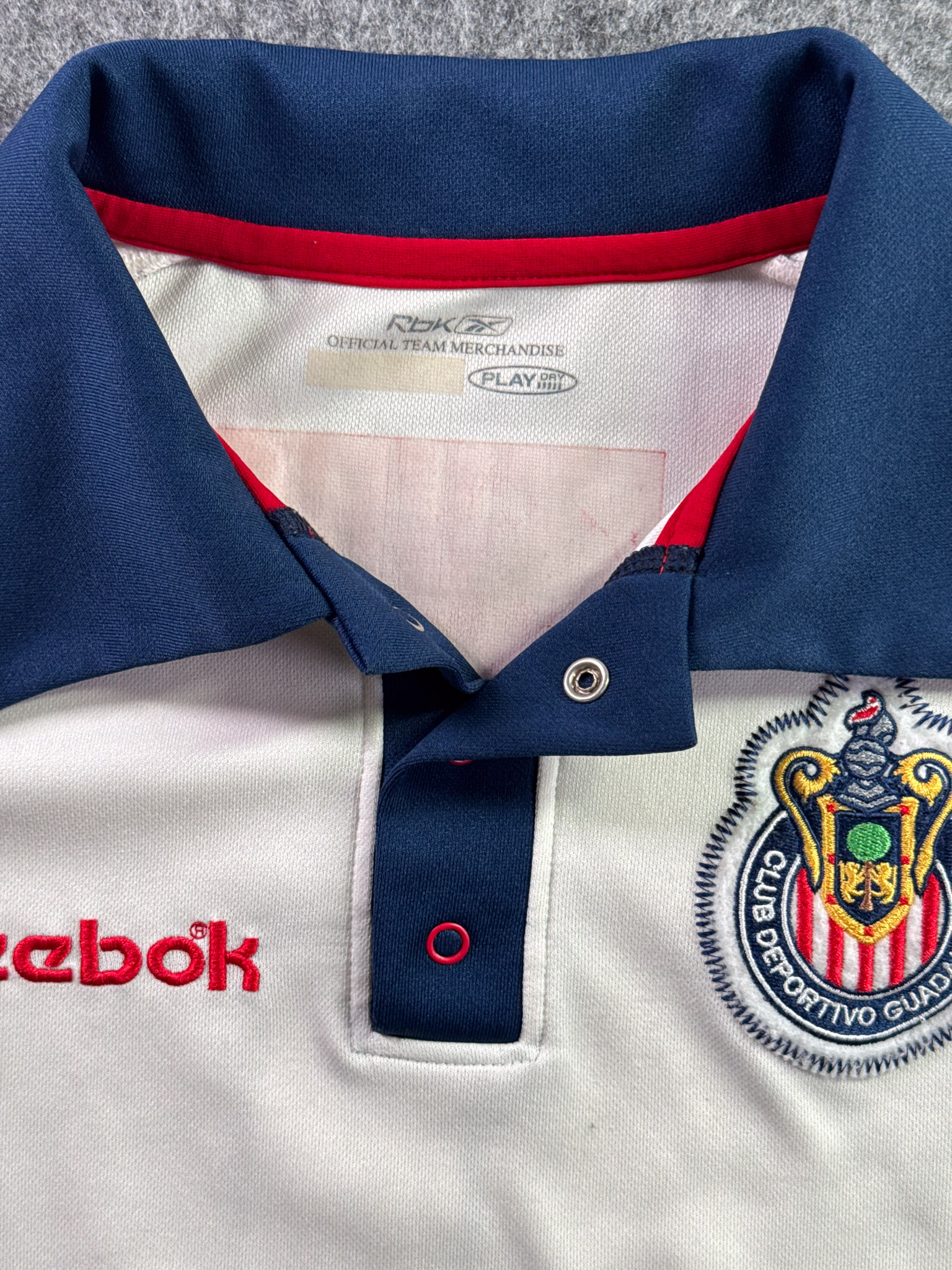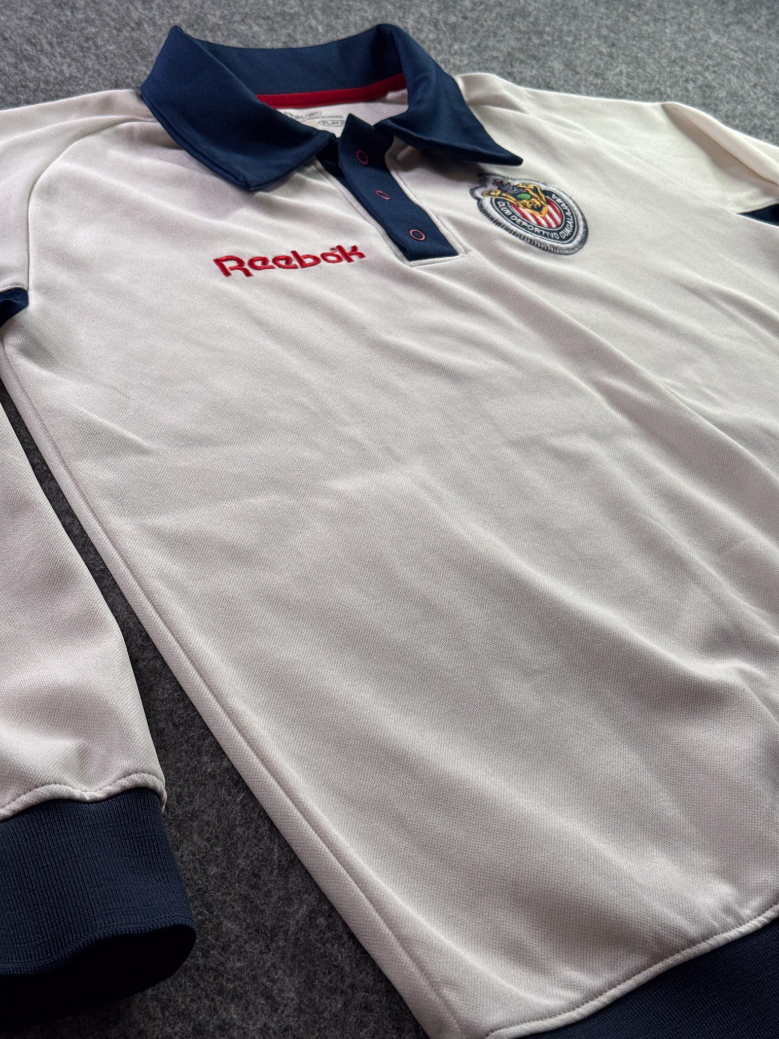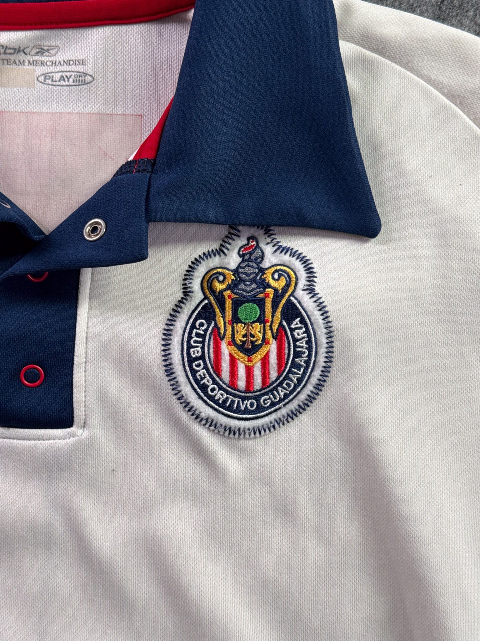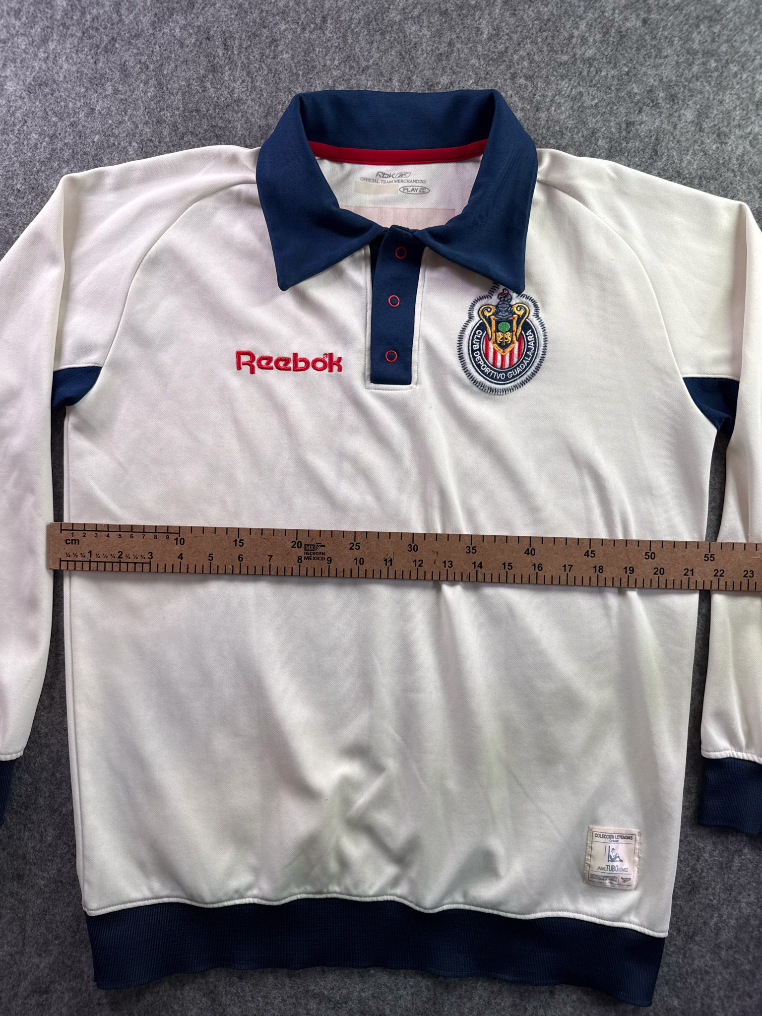Jersey del Chivas fabricado por Reebok, originario de México. Se trata de la equipación Portero correspondiente a la temporada 30-06. Talla L, con dorsal ‘Tubo Gómez 1’ y en condición Excelente. Detalles: Desgaste en vinil interior del cuello.