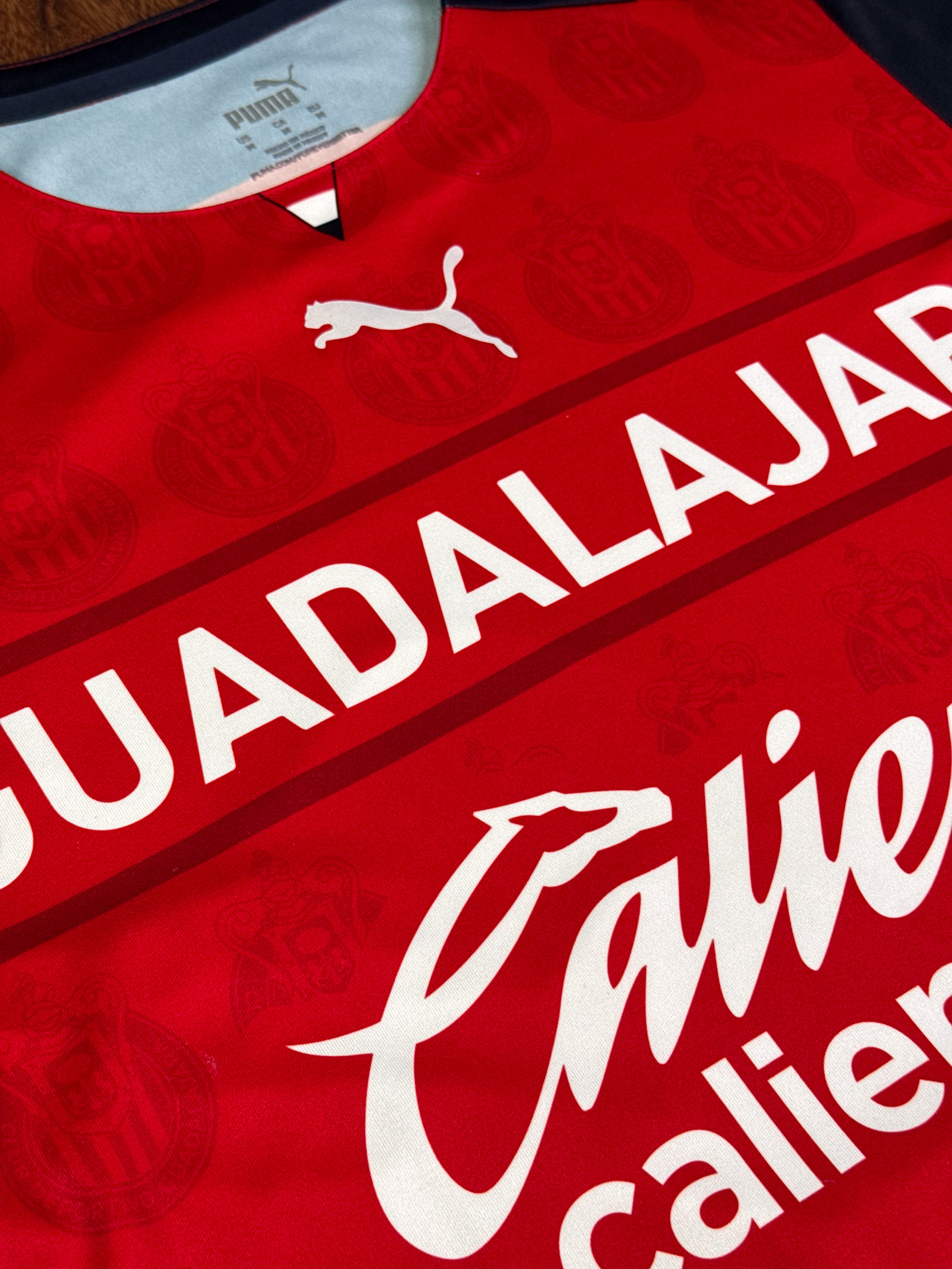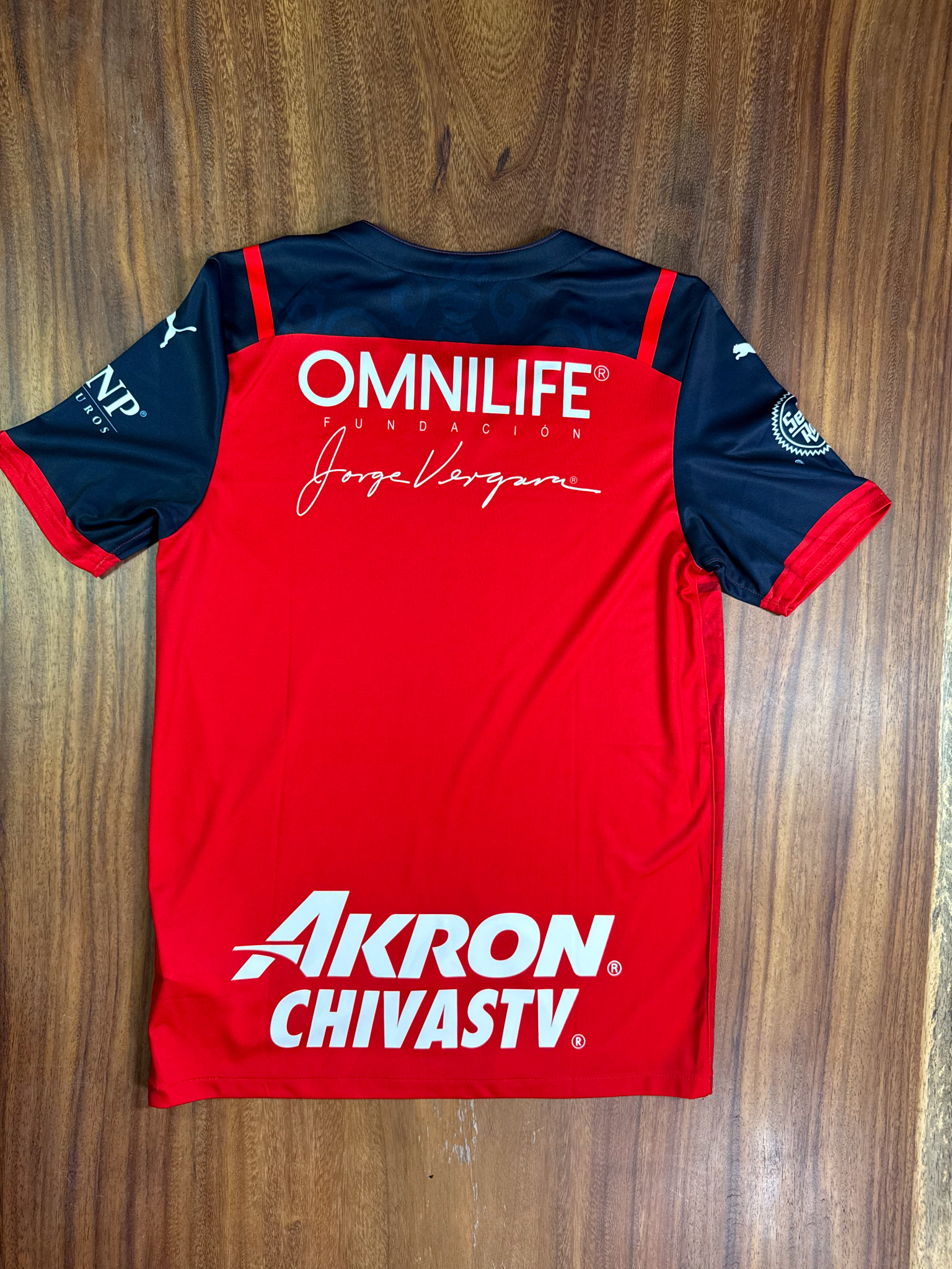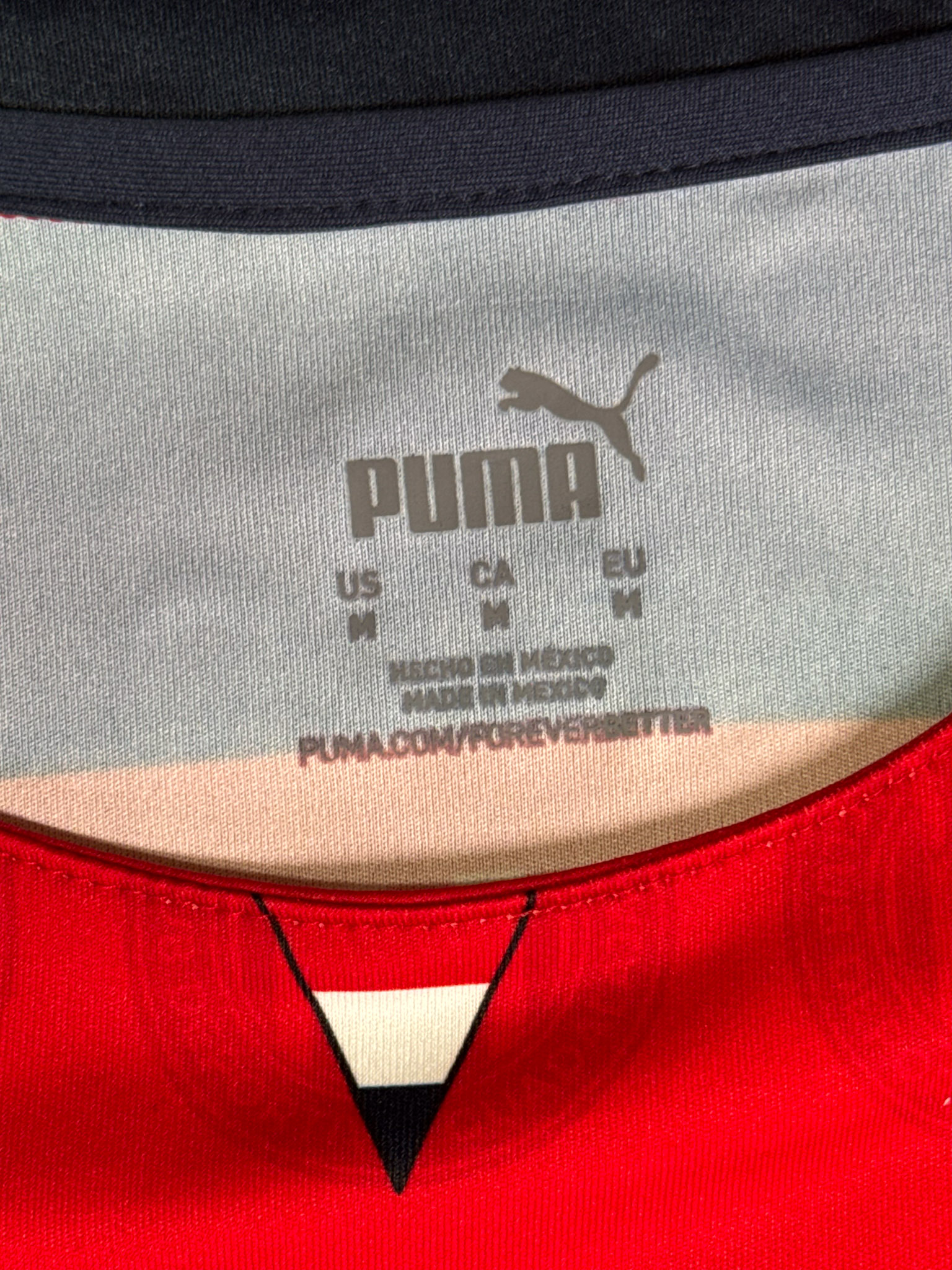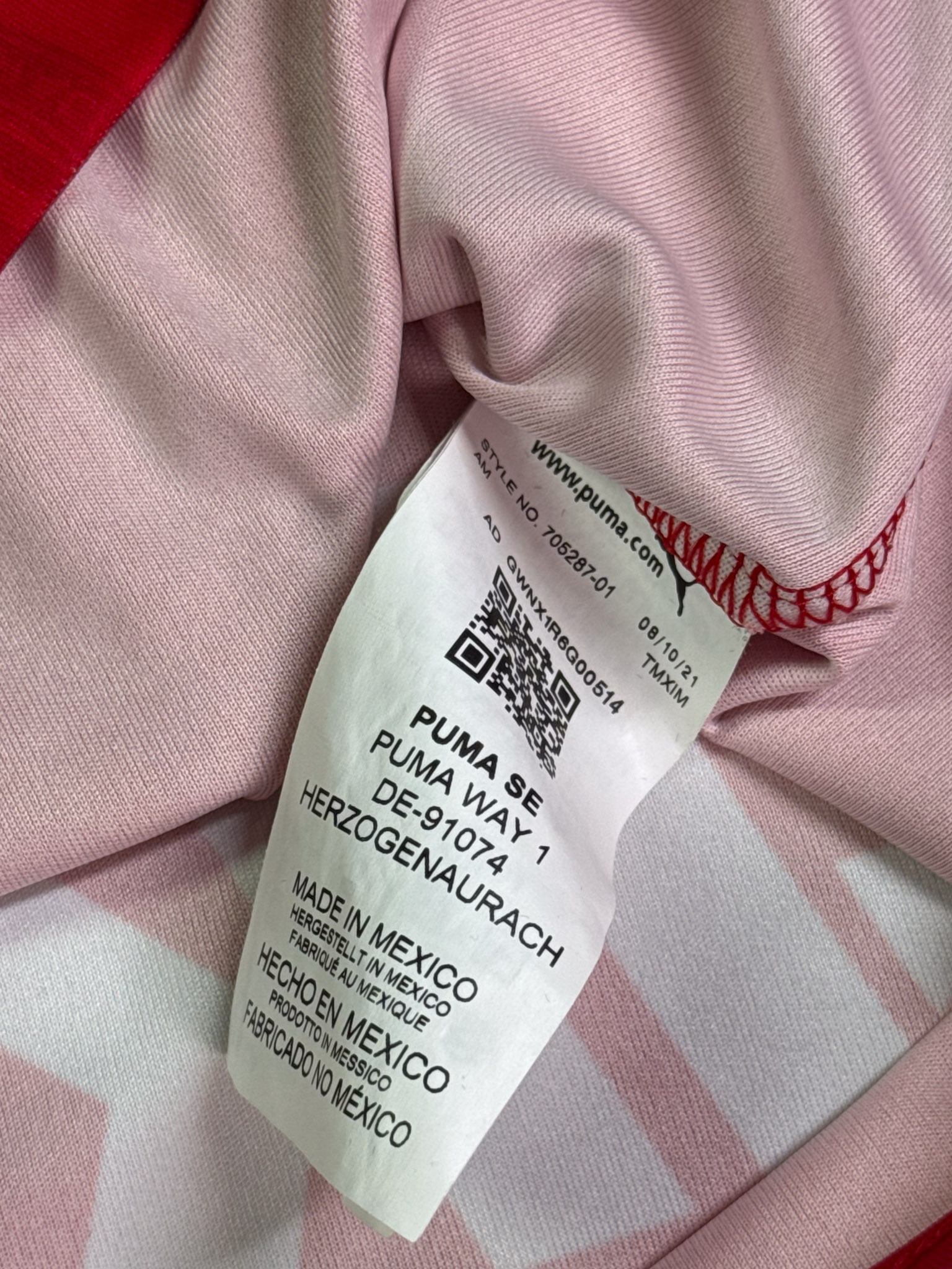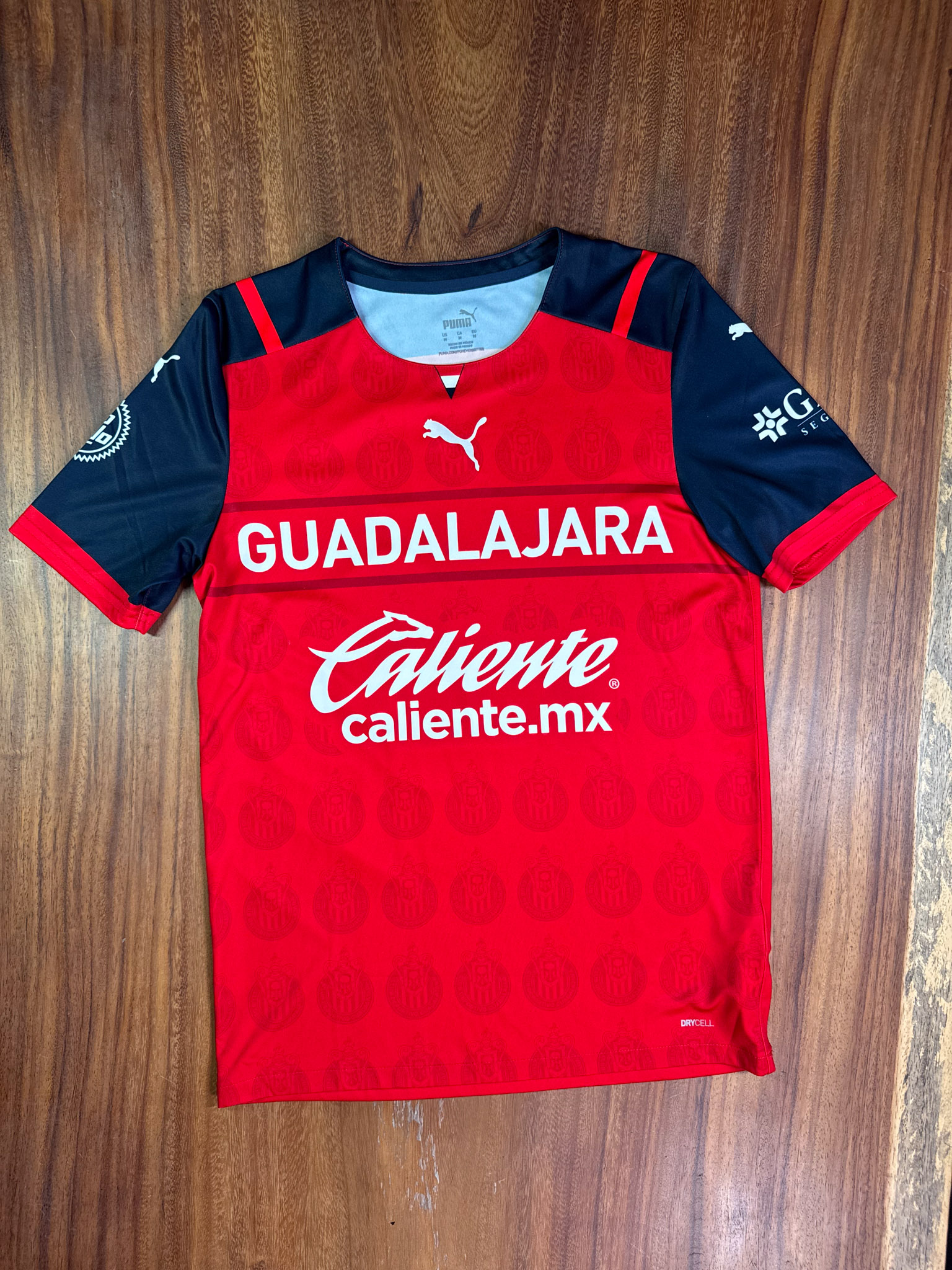 Jersey del Chivas fabricado por Puma, originario de México. Se trata de la equipación Tercera correspondiente a la temporada 21-22. Talla M, con dorsal ‘No’ y en condición Buena. Detalles: Ninguno.