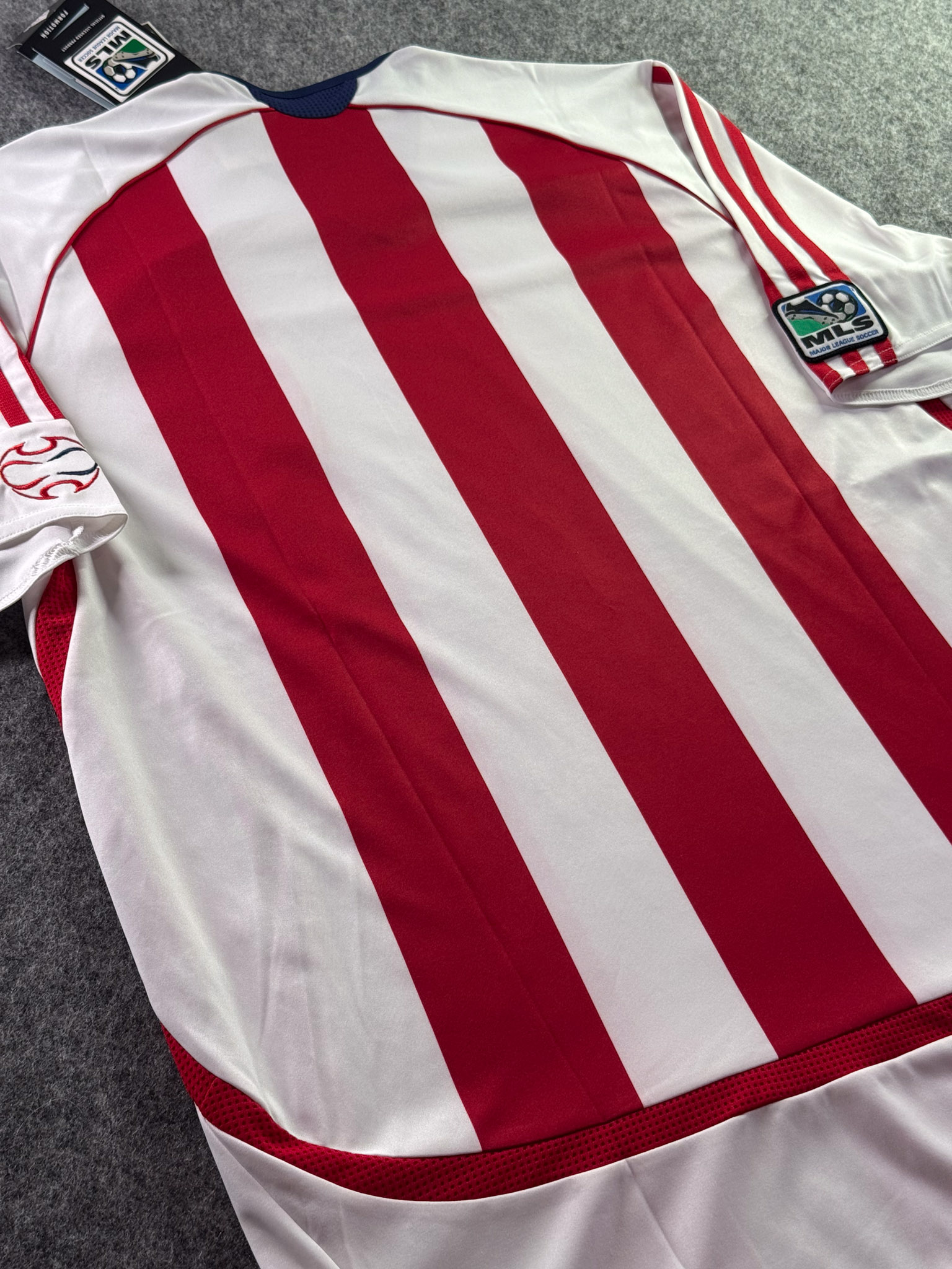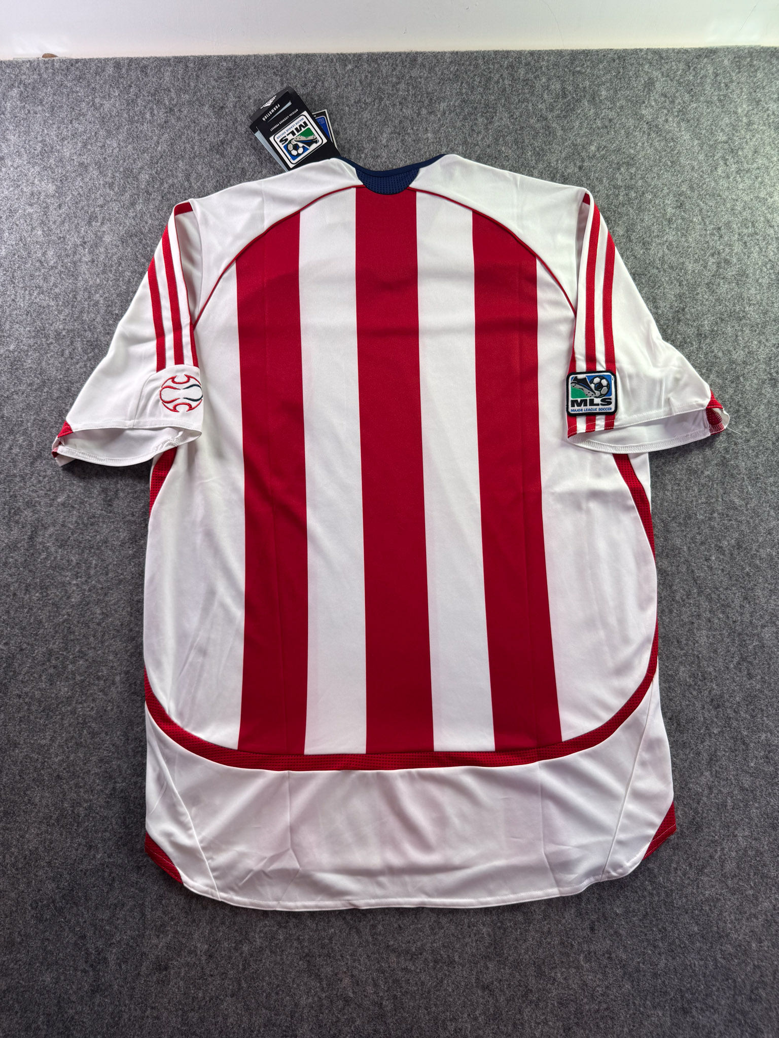 Jersey del Chivas USA fabricado por Adidas, originario de Estados Unidos. Se trata de la equipación Visita correspondiente a la temporada 2006. Talla XL, con dorsal ‘No’ y en condición Excelente. Detalles: Nueva con etiquetas.