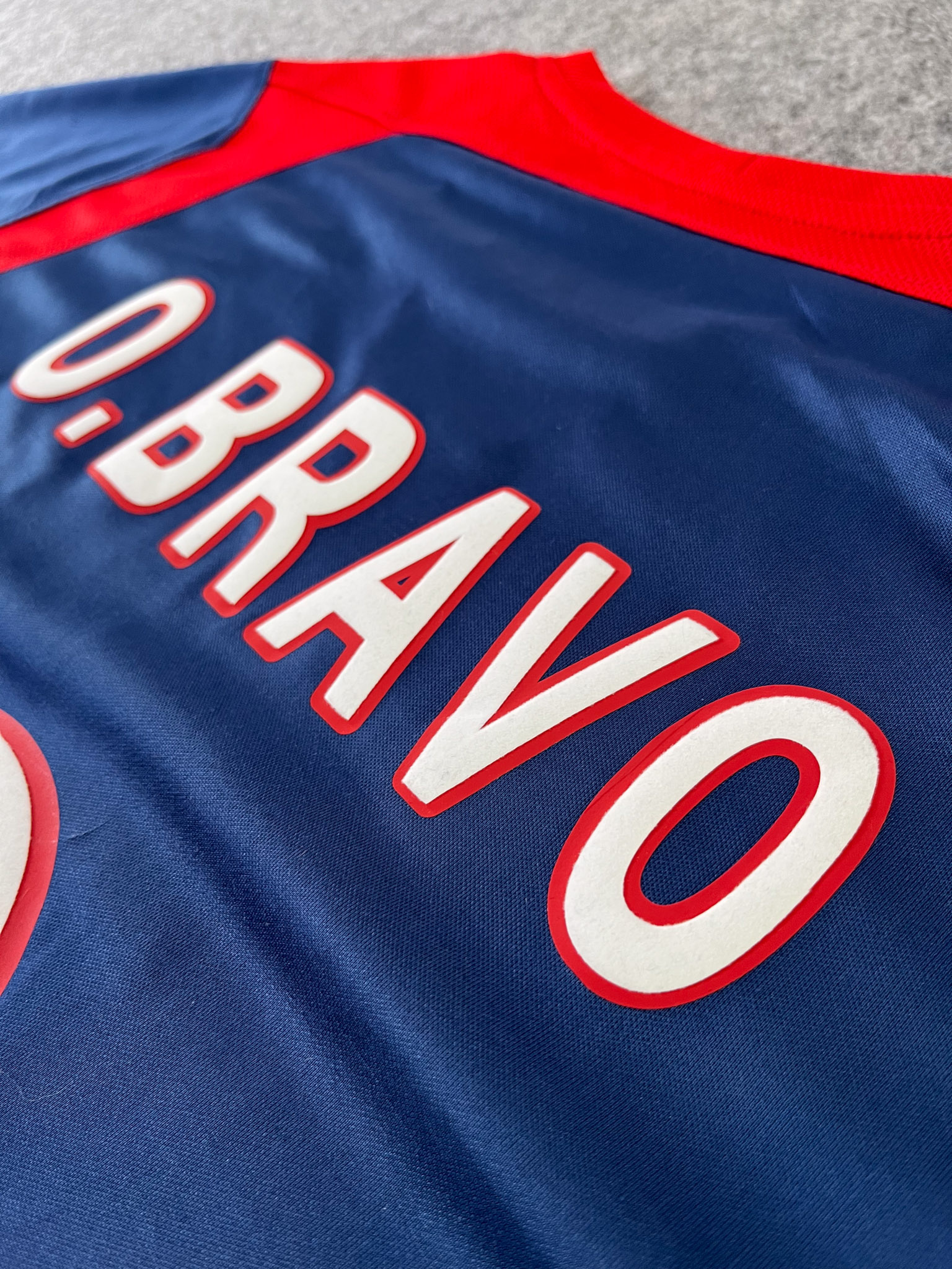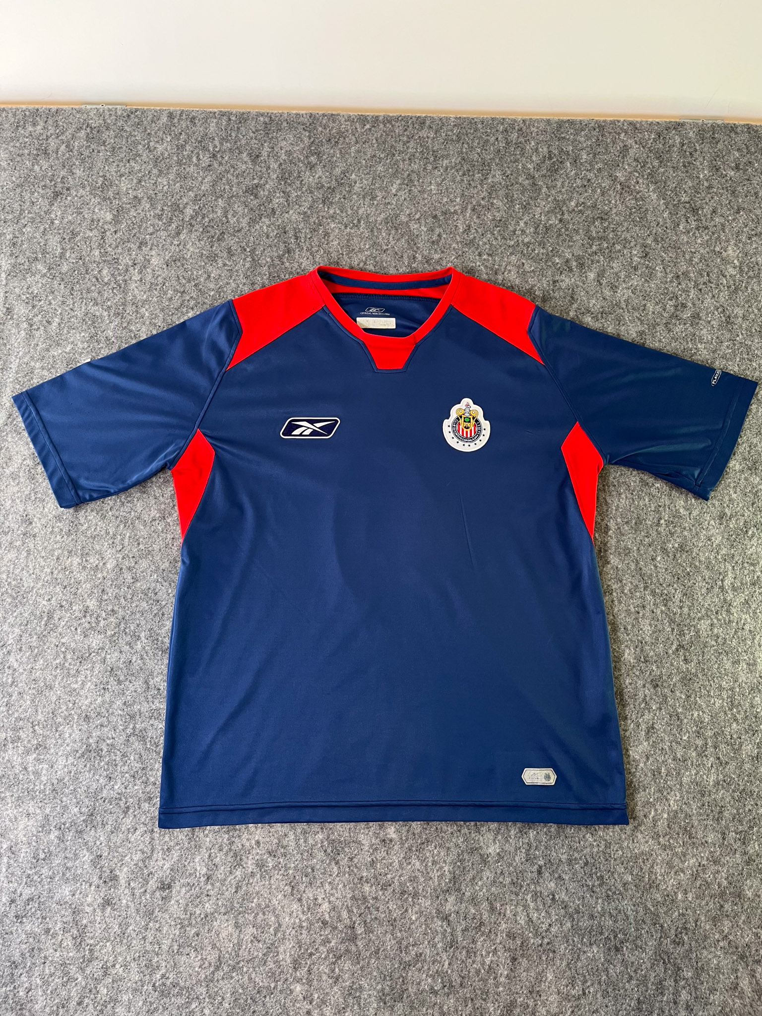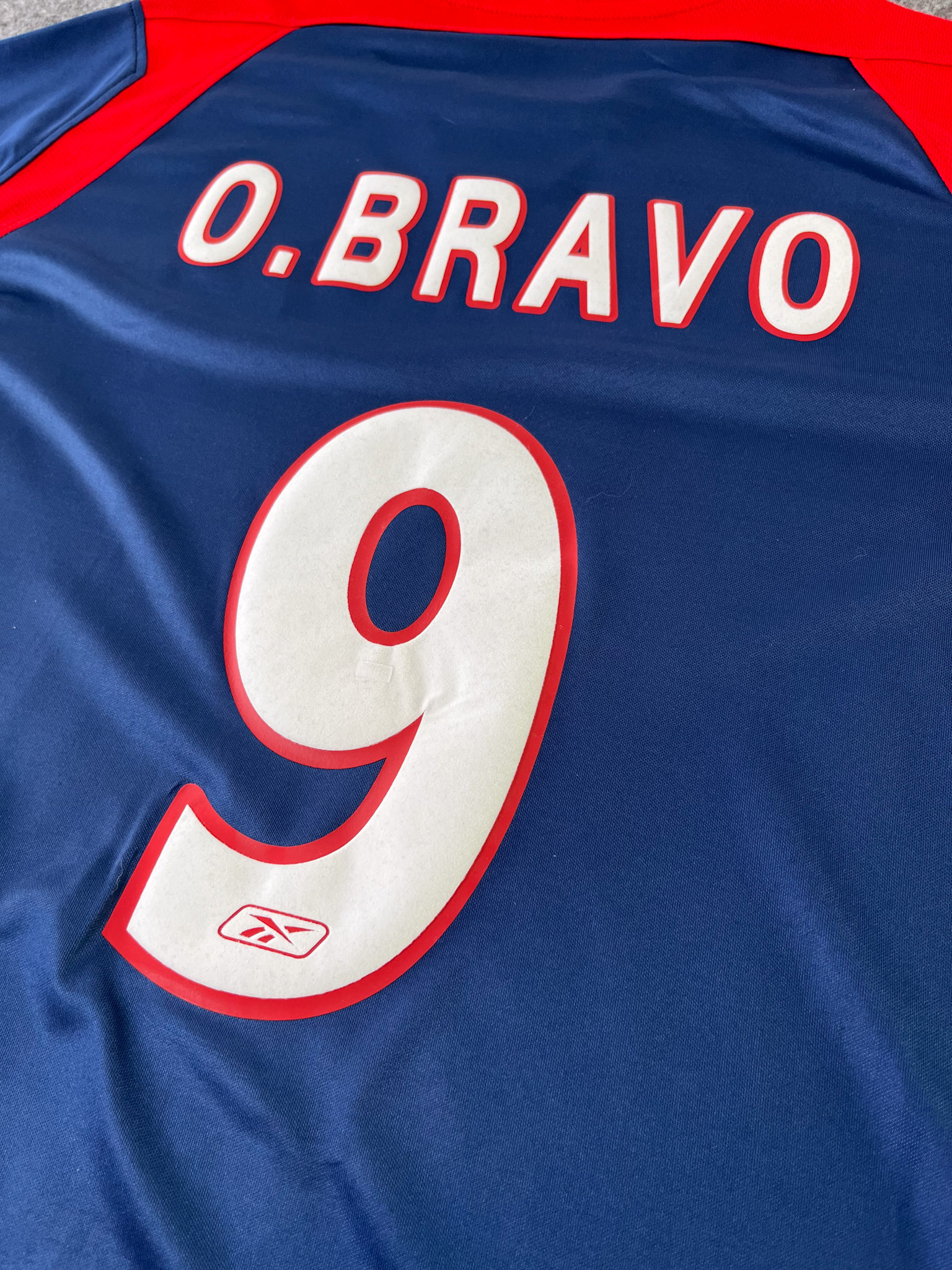Jersey del Chivas fabricado por Reebok, originario de México. Se trata de la equipación Visita correspondiente a la temporada 04-05. Talla L, con dorsal ‘O Bravo 9’ y en condición Muy Buena. Detalles: Dorsal reparado, vinil inferior frontal desgastado.