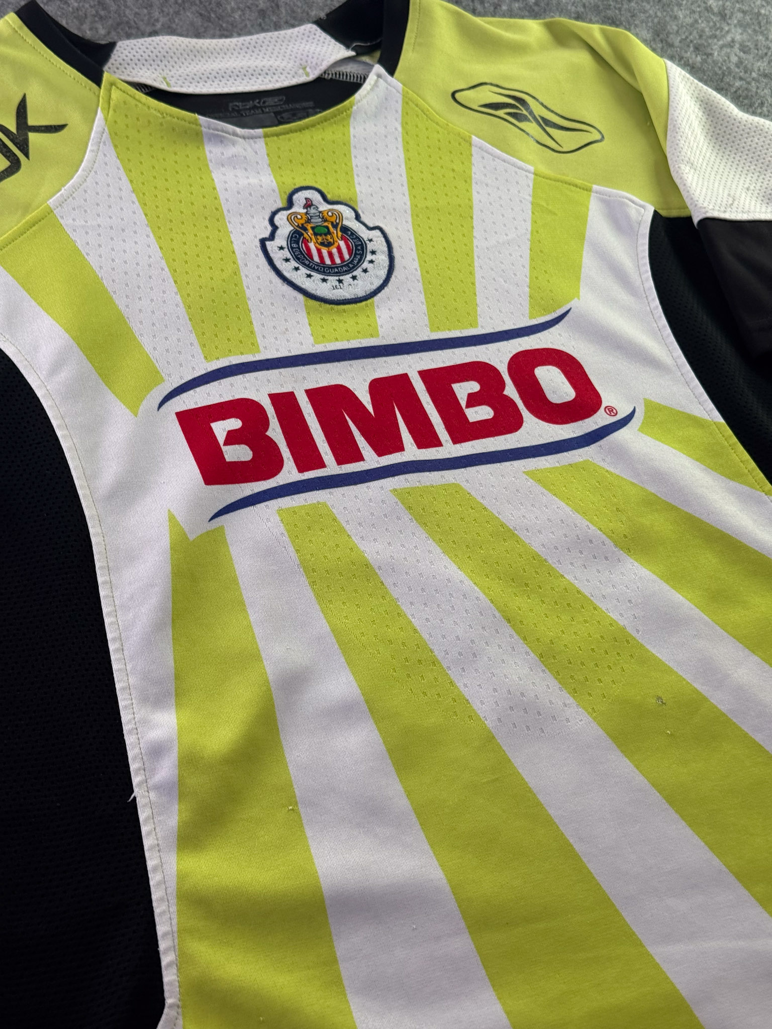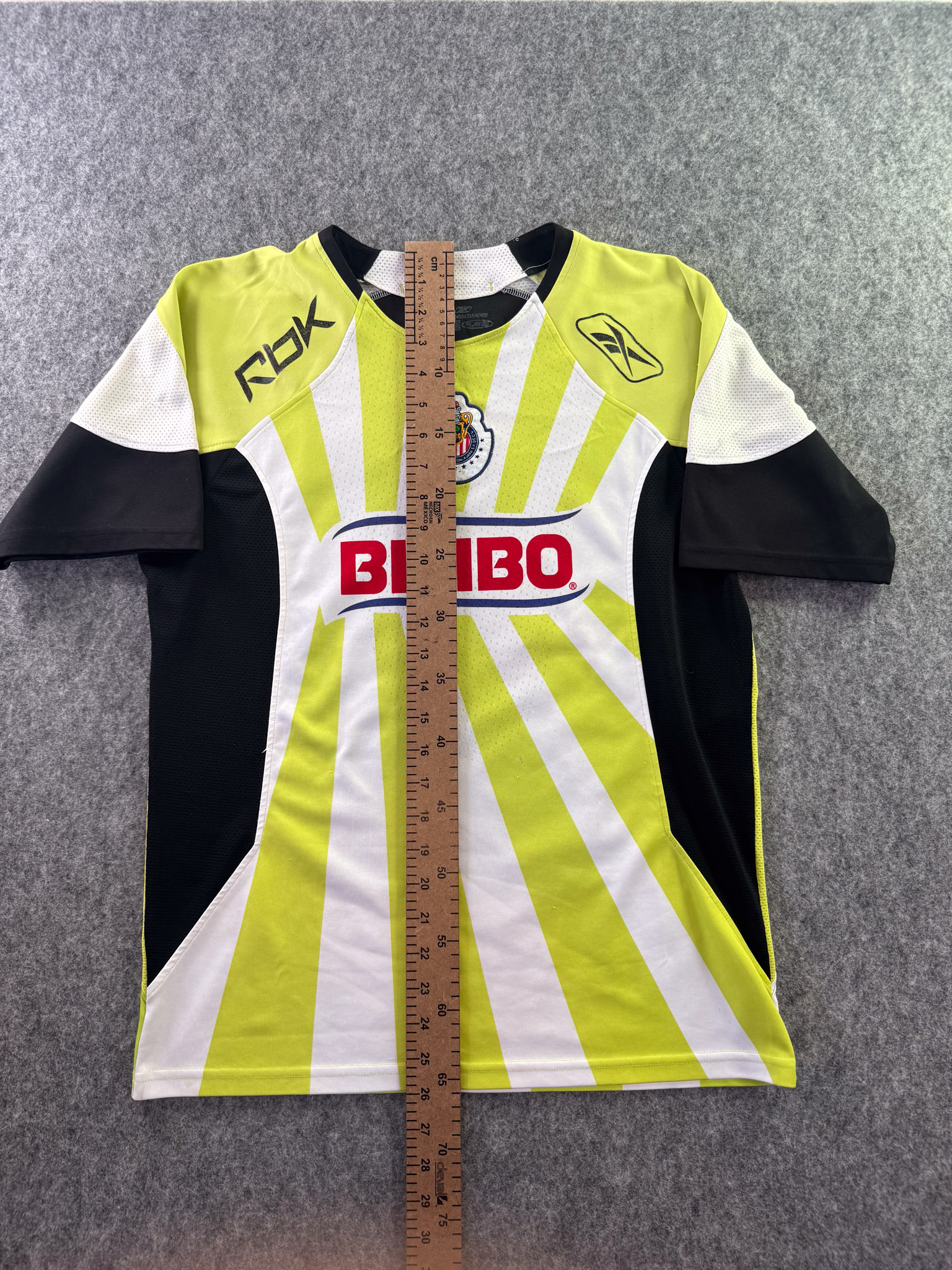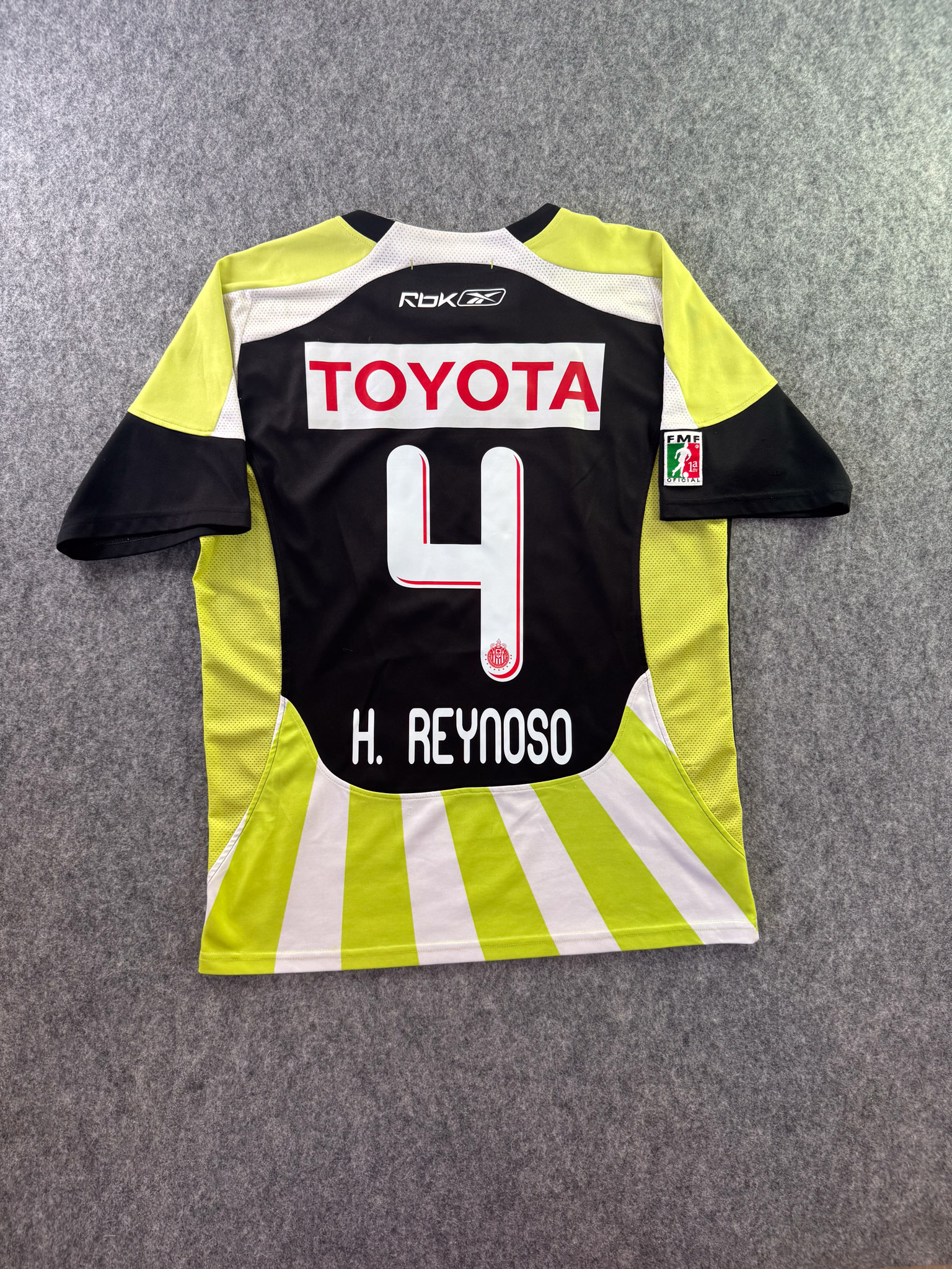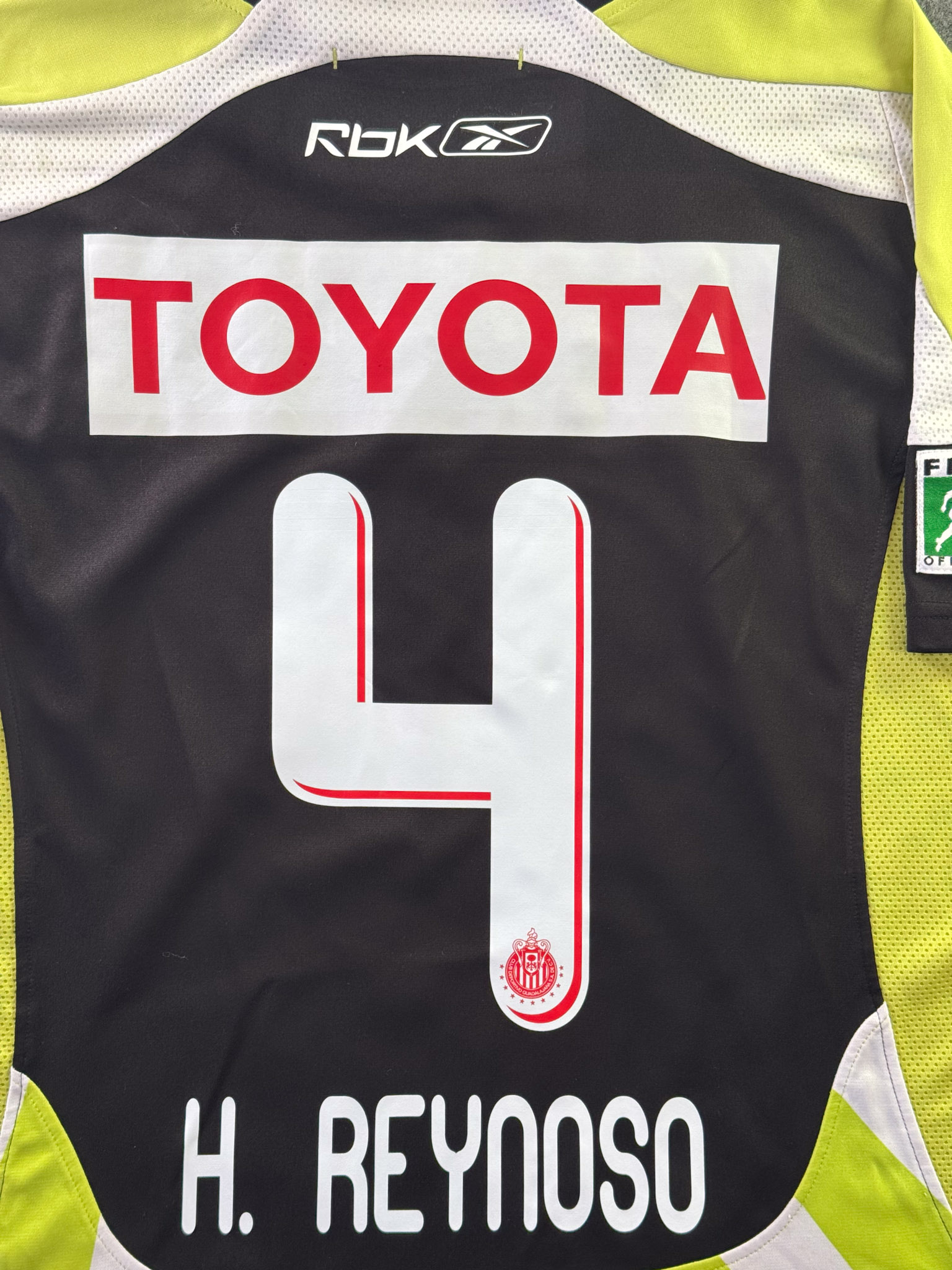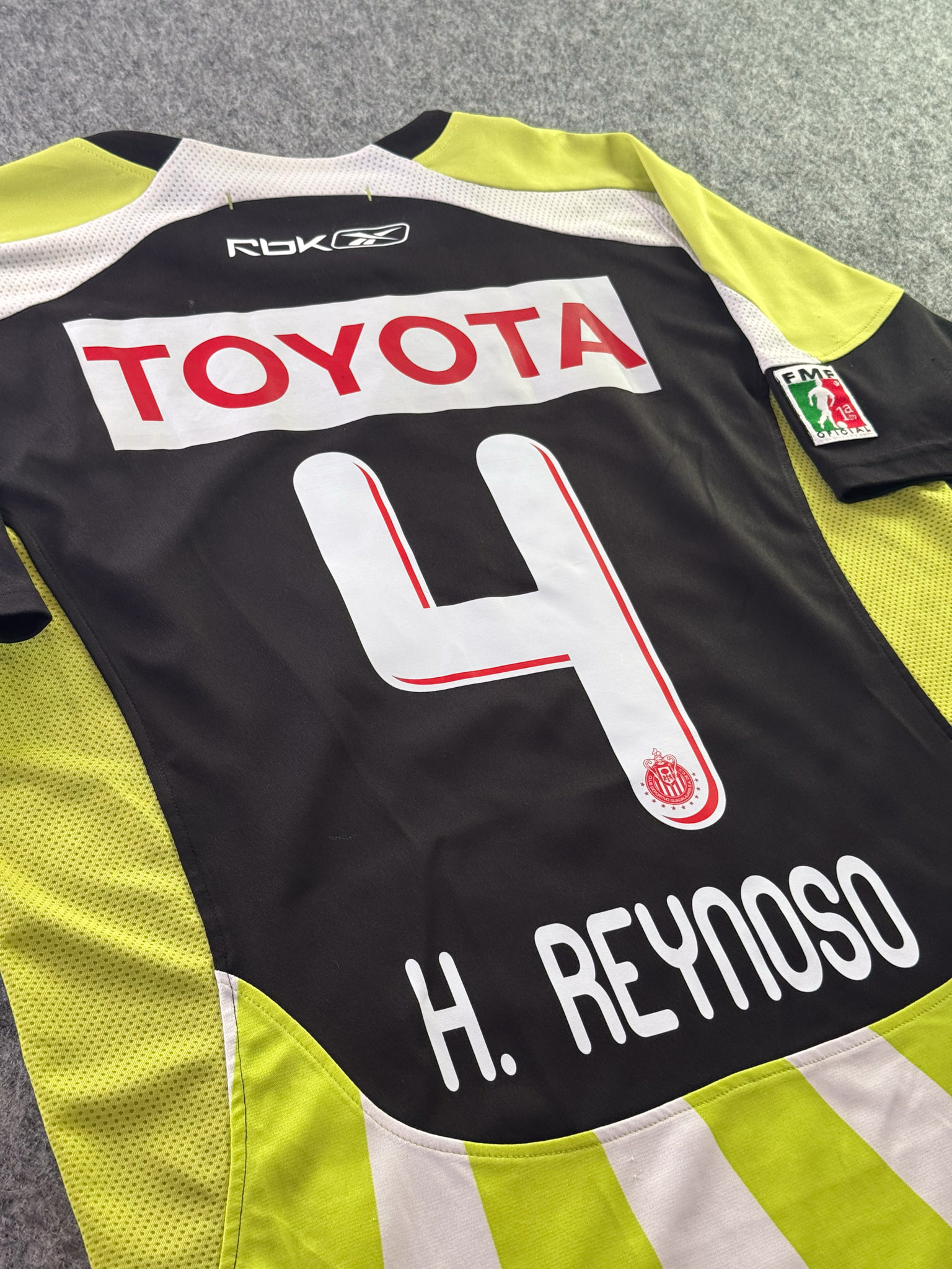 Jersey del Chivas fabricado por Reebok, originario de México. Se trata de la equipación Visita correspondiente a la temporada 08-09. Talla M, con dorsal ‘H. Reynoso 4’ y en condición Excelente. Detalles: Ligero desgaste en logos reebok de los hombros.
