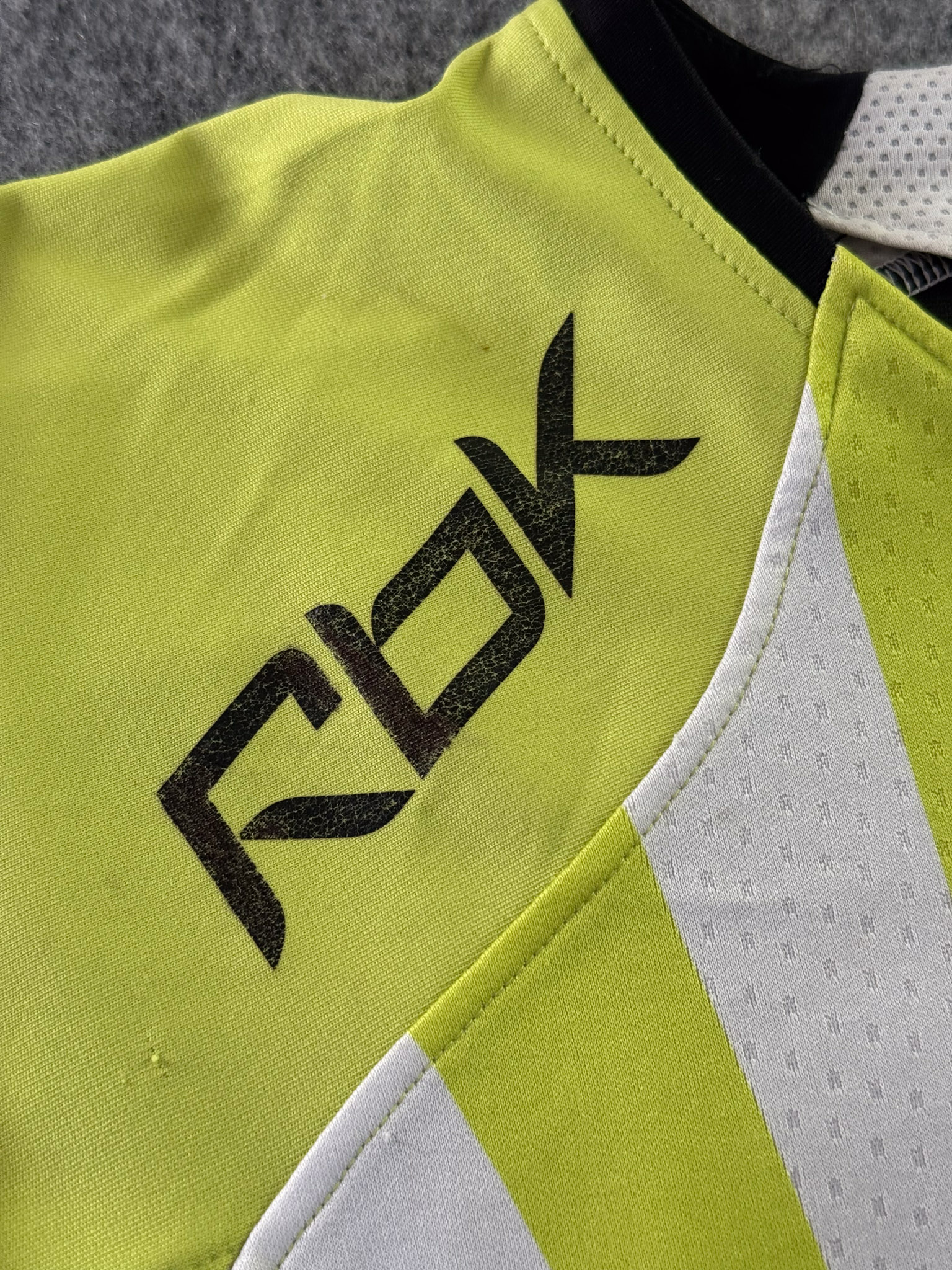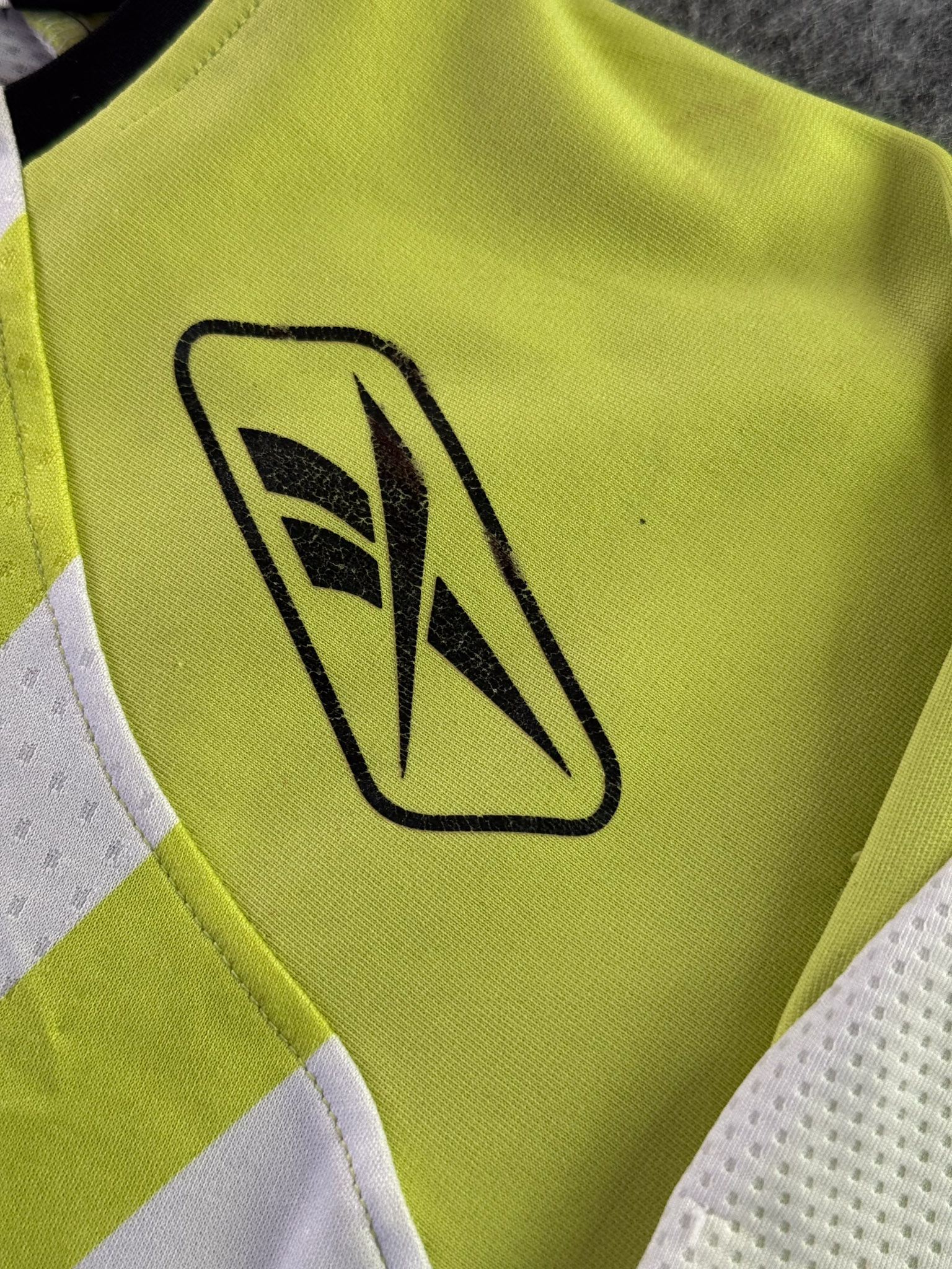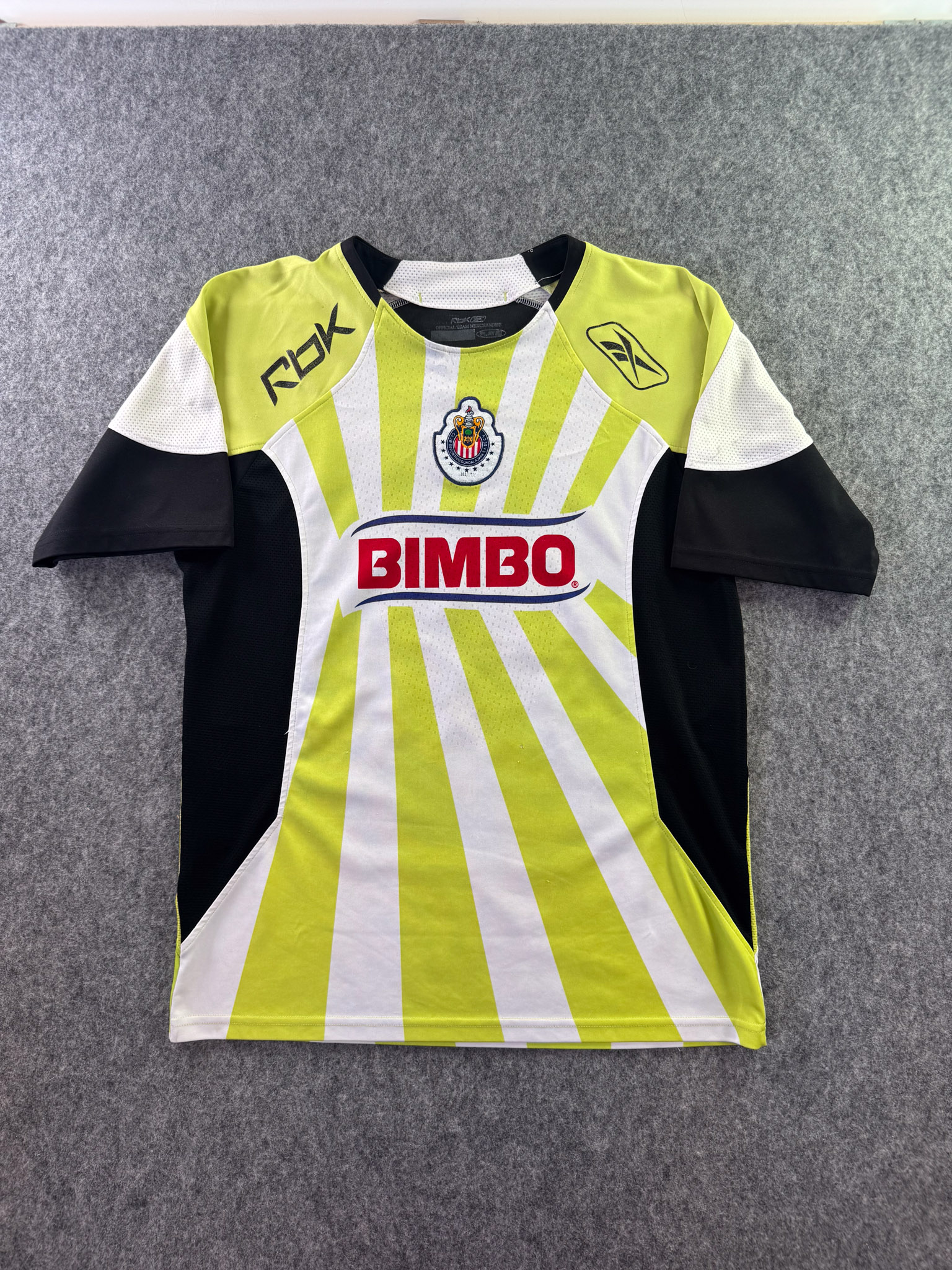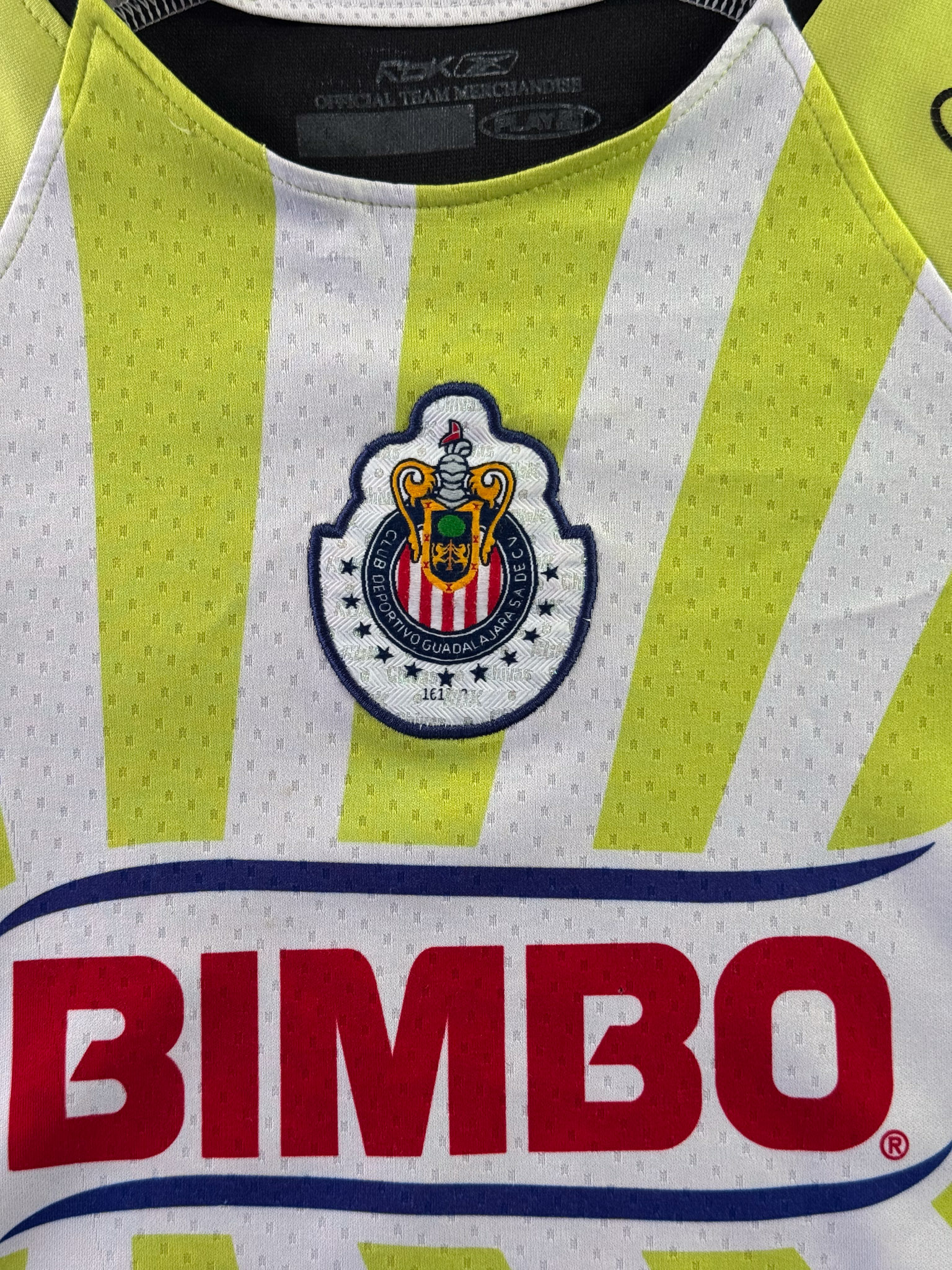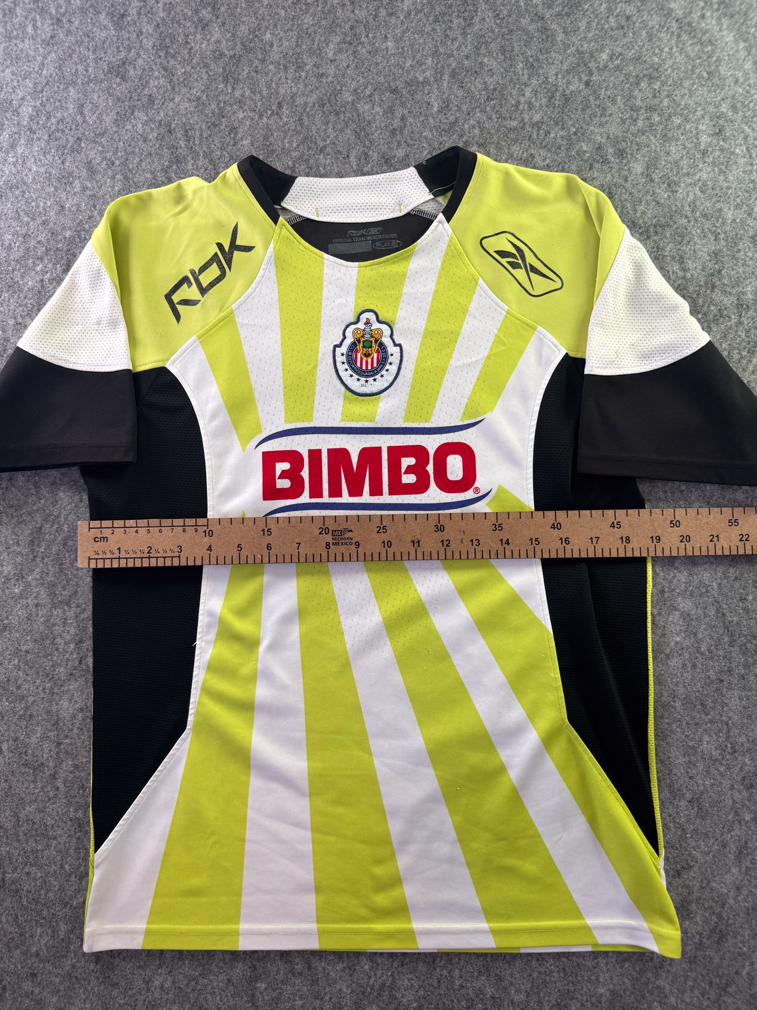 Jersey del Chivas fabricado por Reebok, originario de México. Se trata de la equipación Visita correspondiente a la temporada 08-09. Talla M, con dorsal ‘H. Reynoso 4’ y en condición Excelente. Detalles: Ligero desgaste en logos reebok de los hombros.