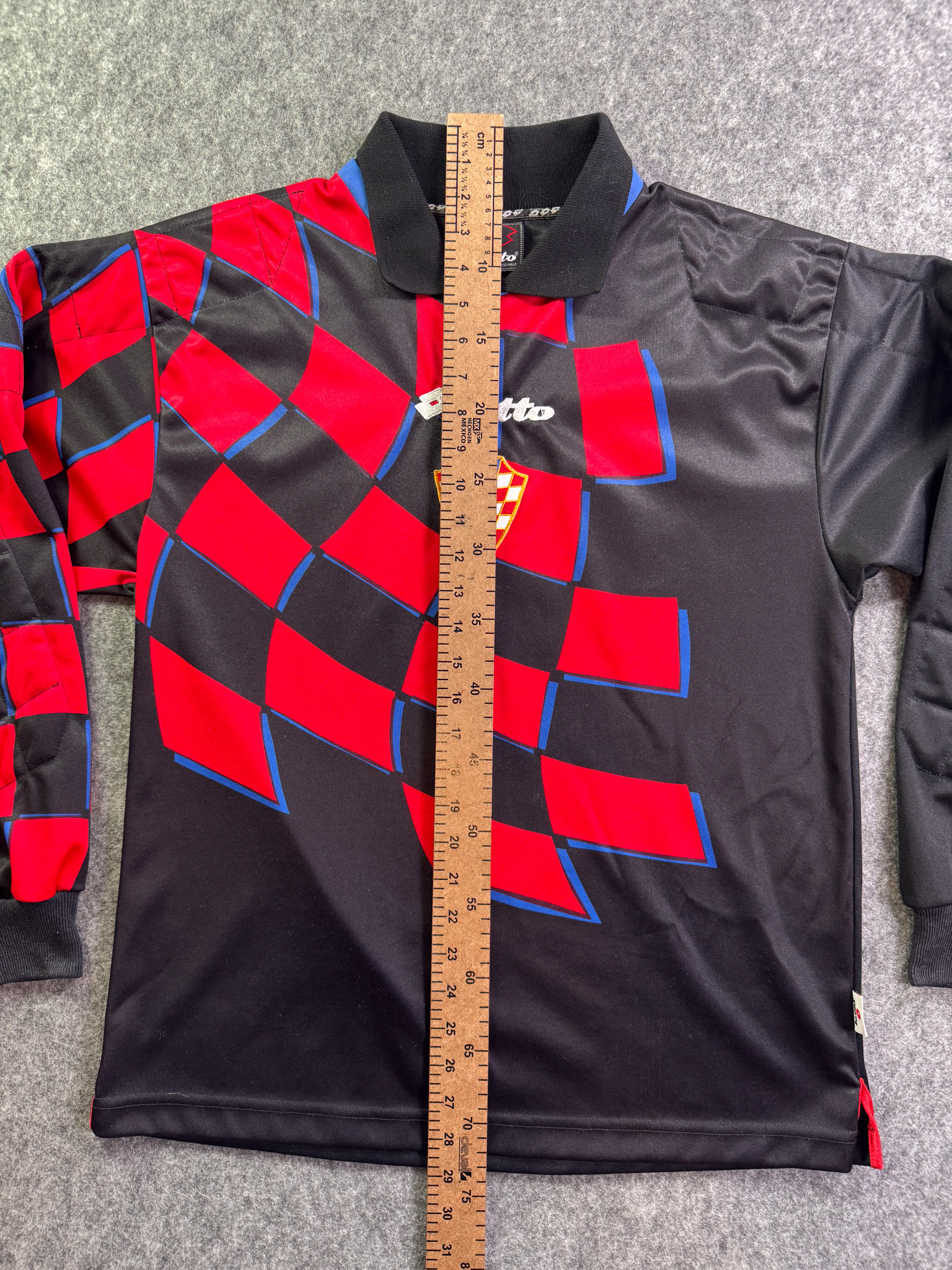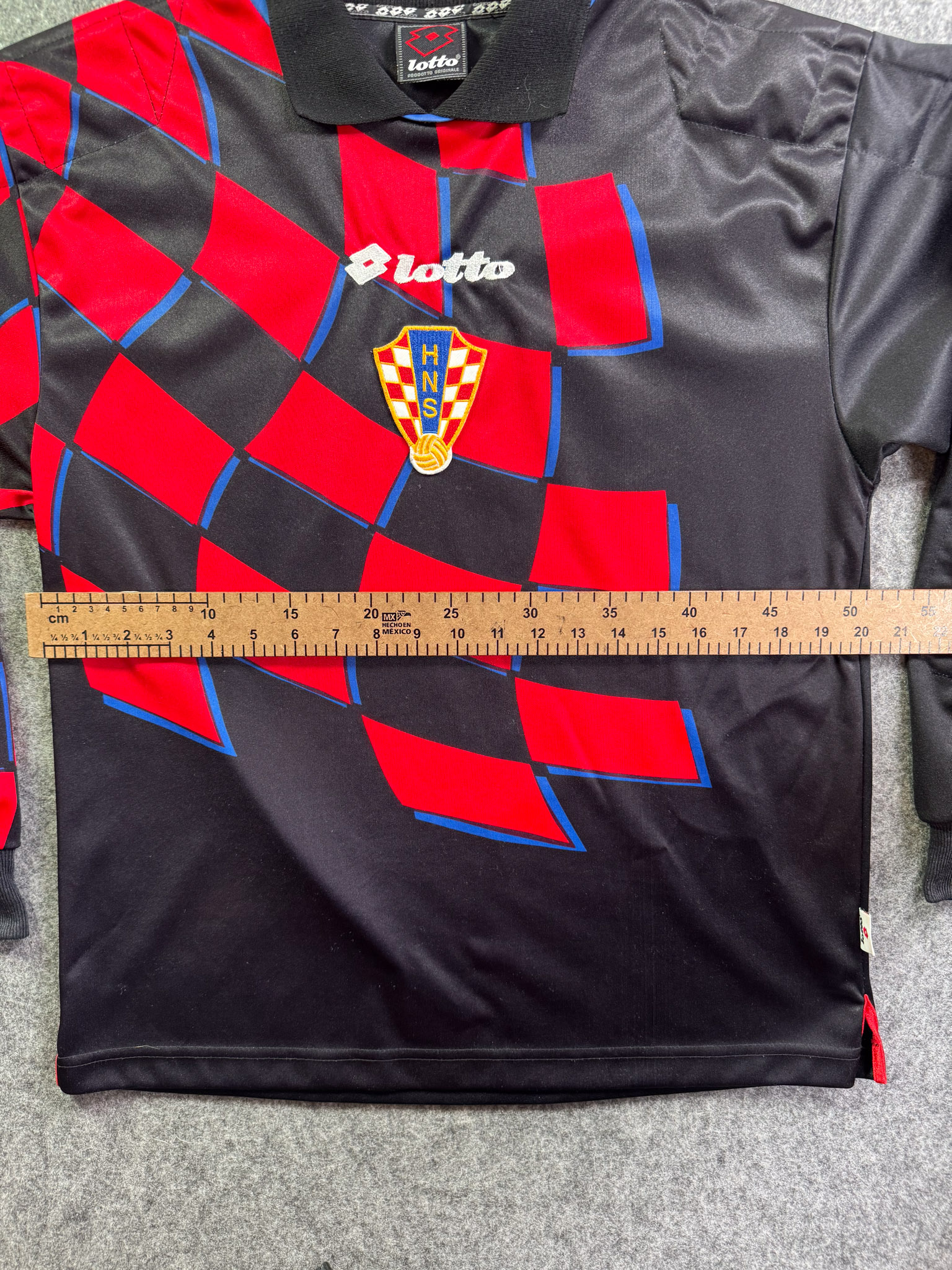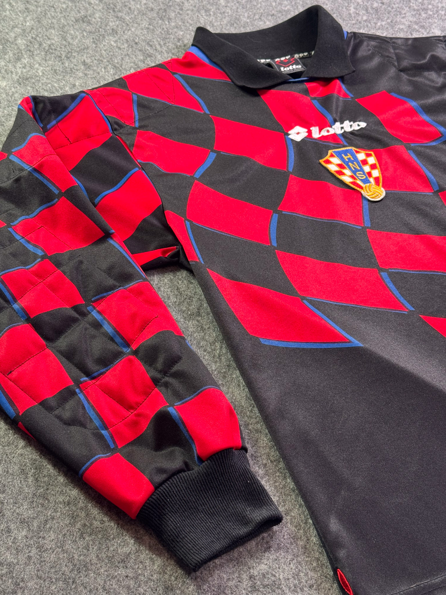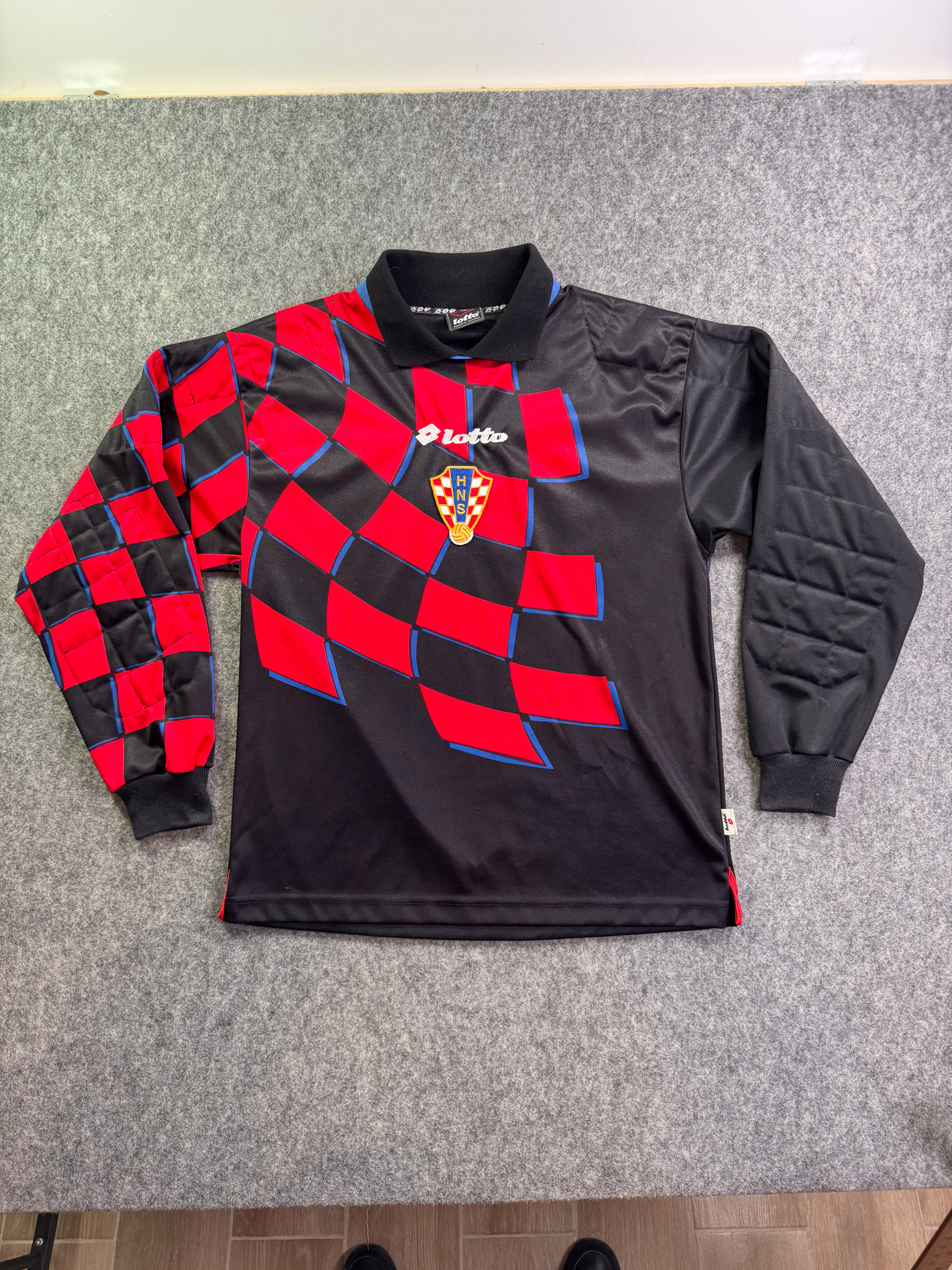 Jersey del Selección Croacia fabricado por Lotto, originario de Croacia. Se trata de la equipación Portero correspondiente a la temporada 1998. Talla L, con dorsal ‘No’ y en condición Excelente. Detalles: Talla reducida.