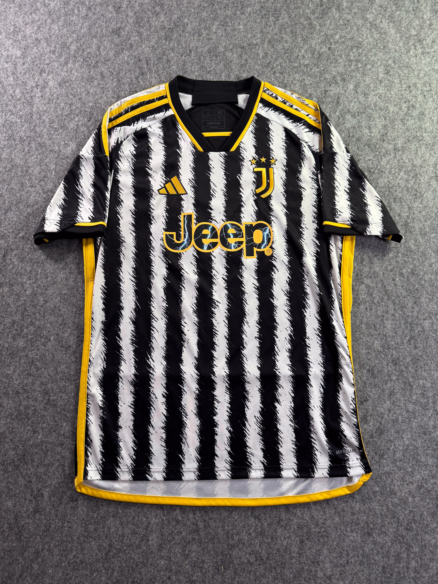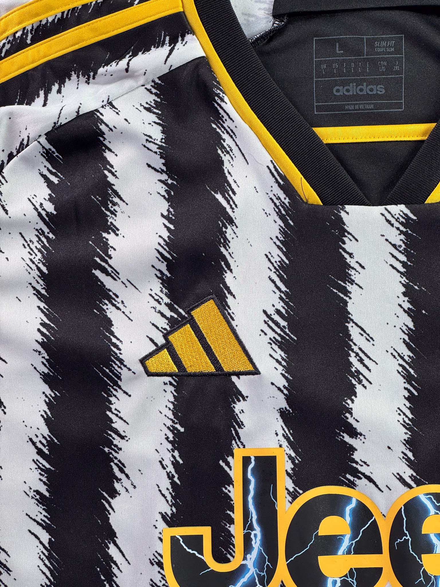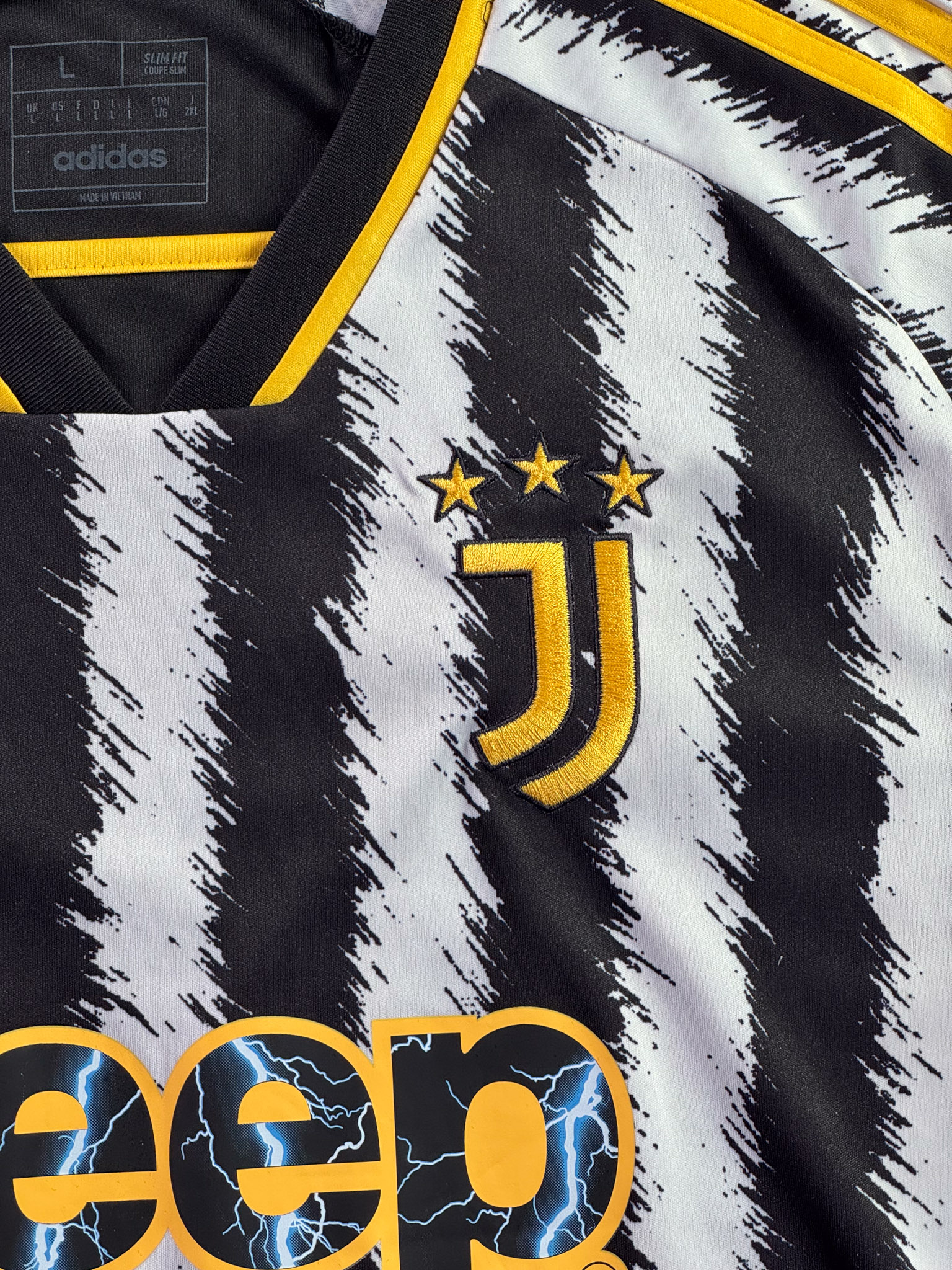 Jersey del Juventus fabricado por Adidas, originario de Italia. Se trata de la equipación Local correspondiente a la temporada 23-24. Talla L, con dorsal ‘No’ y en condición Muy Buena. Detalles: Ninguno.