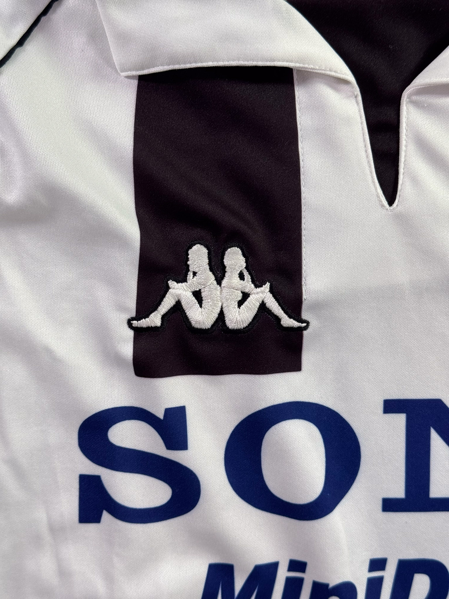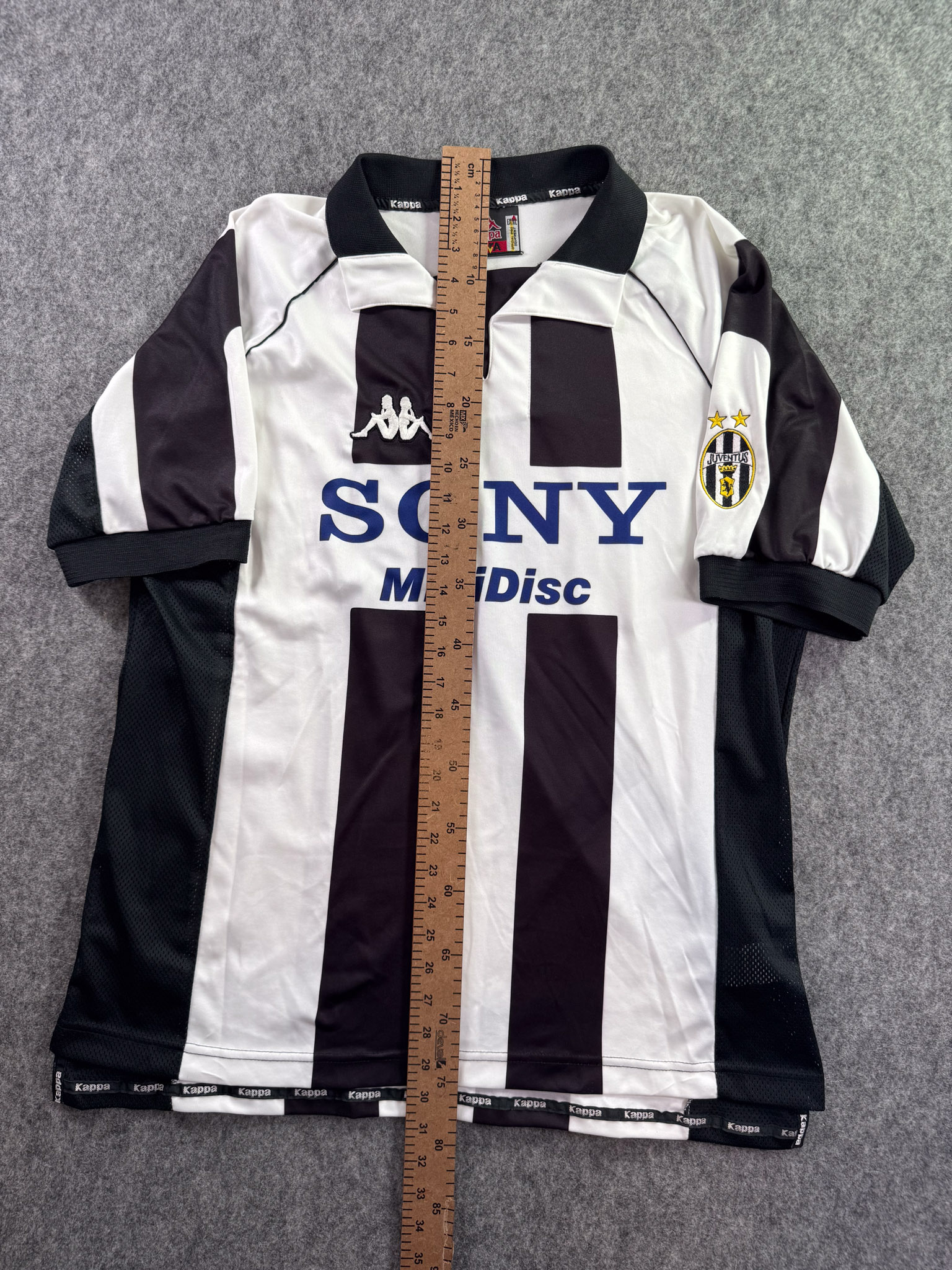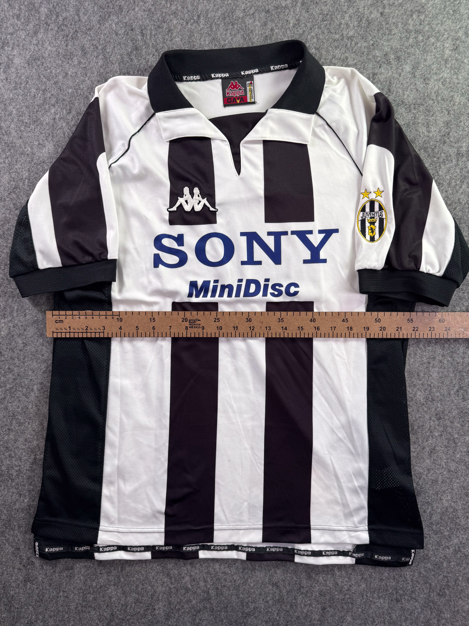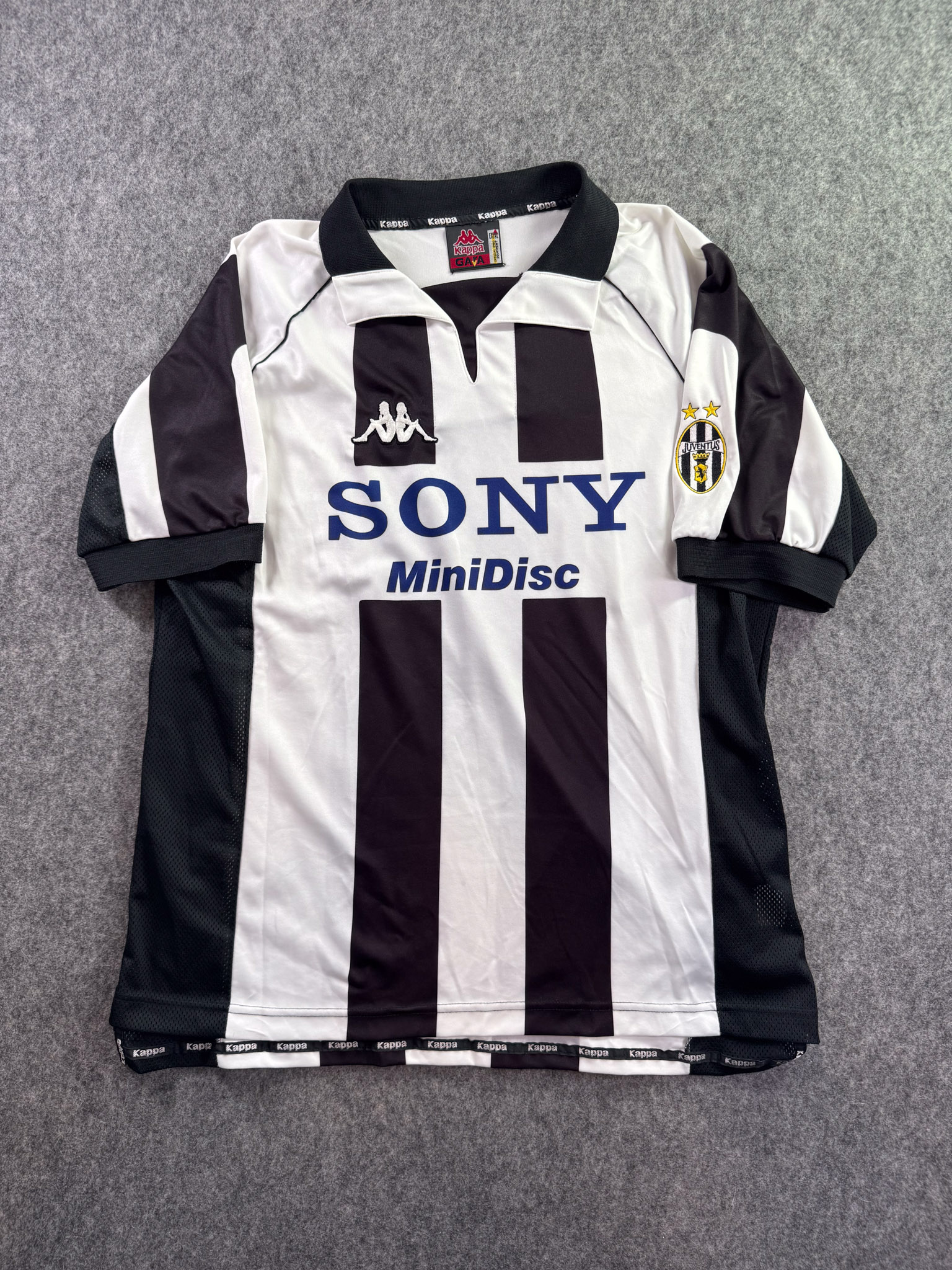 Jersey del Juventus fabricado por Kappa, originario de Italia. Se trata de la equipación Local correspondiente a la temporada 97-98. Talla XL, con dorsal ‘No’ y en condición Muy Buena. Detalles: Color ligeramente gastado.