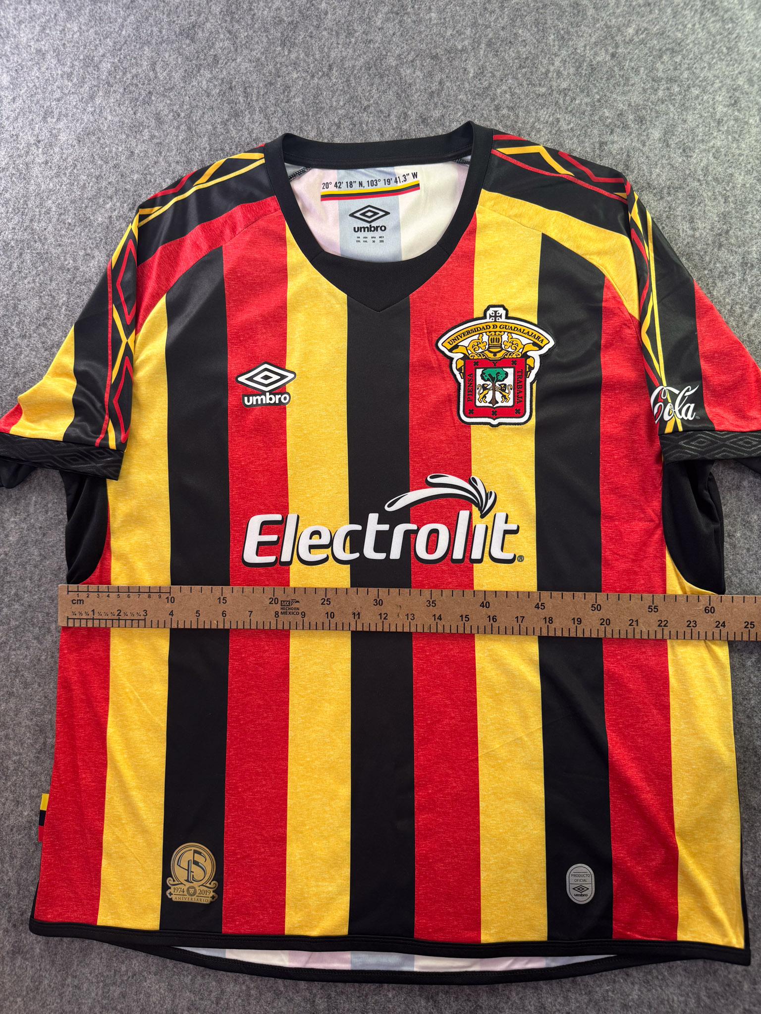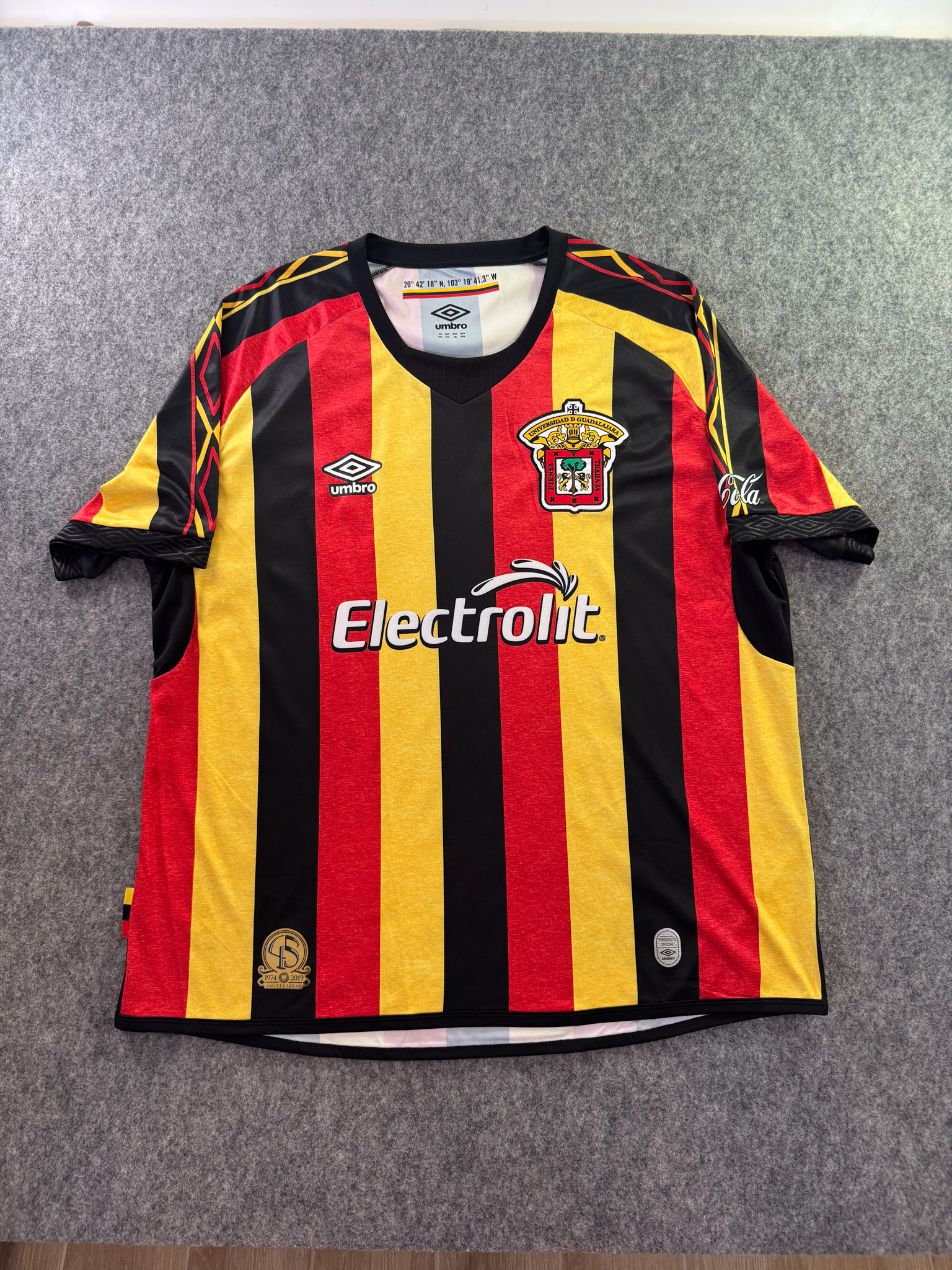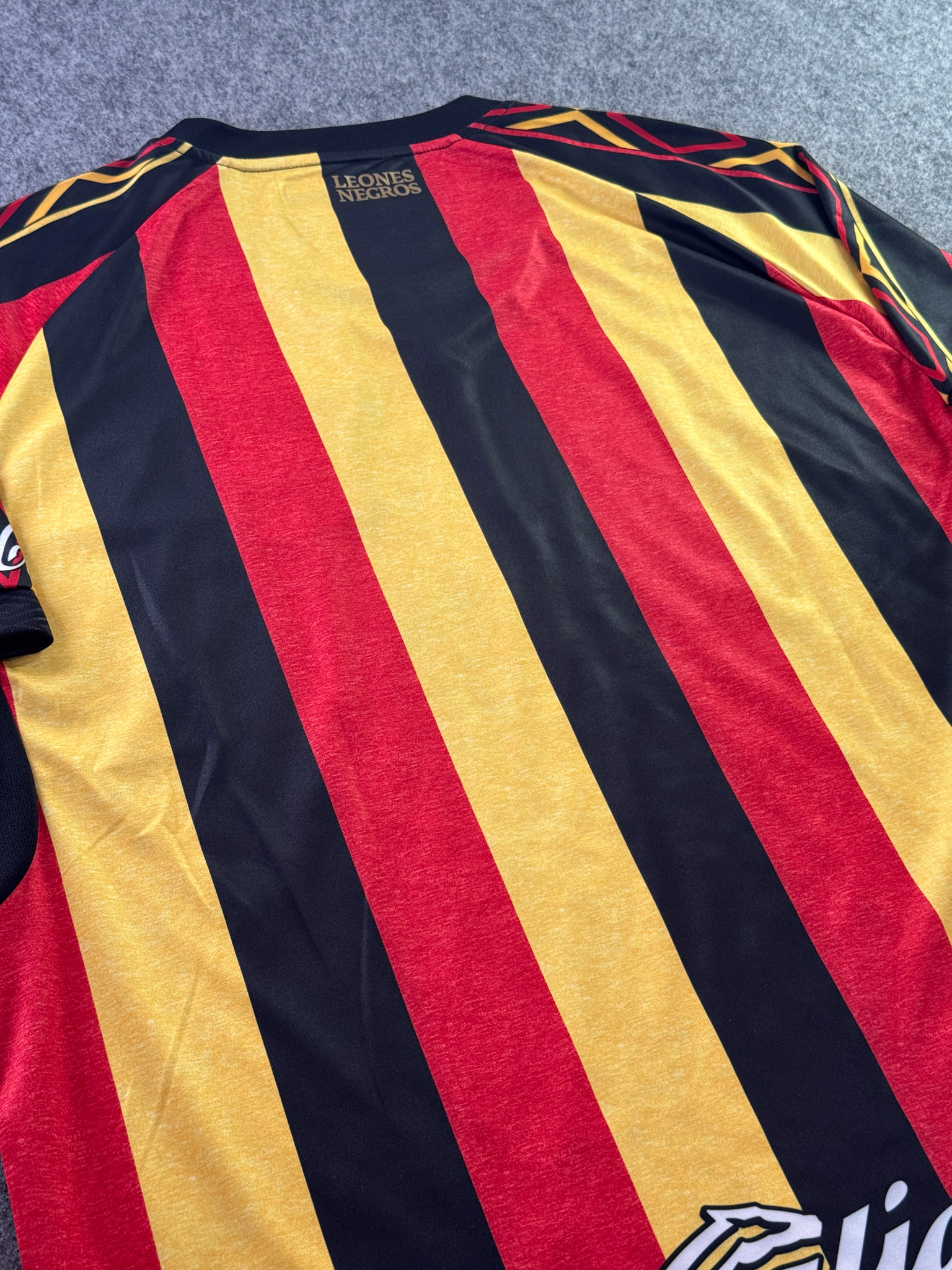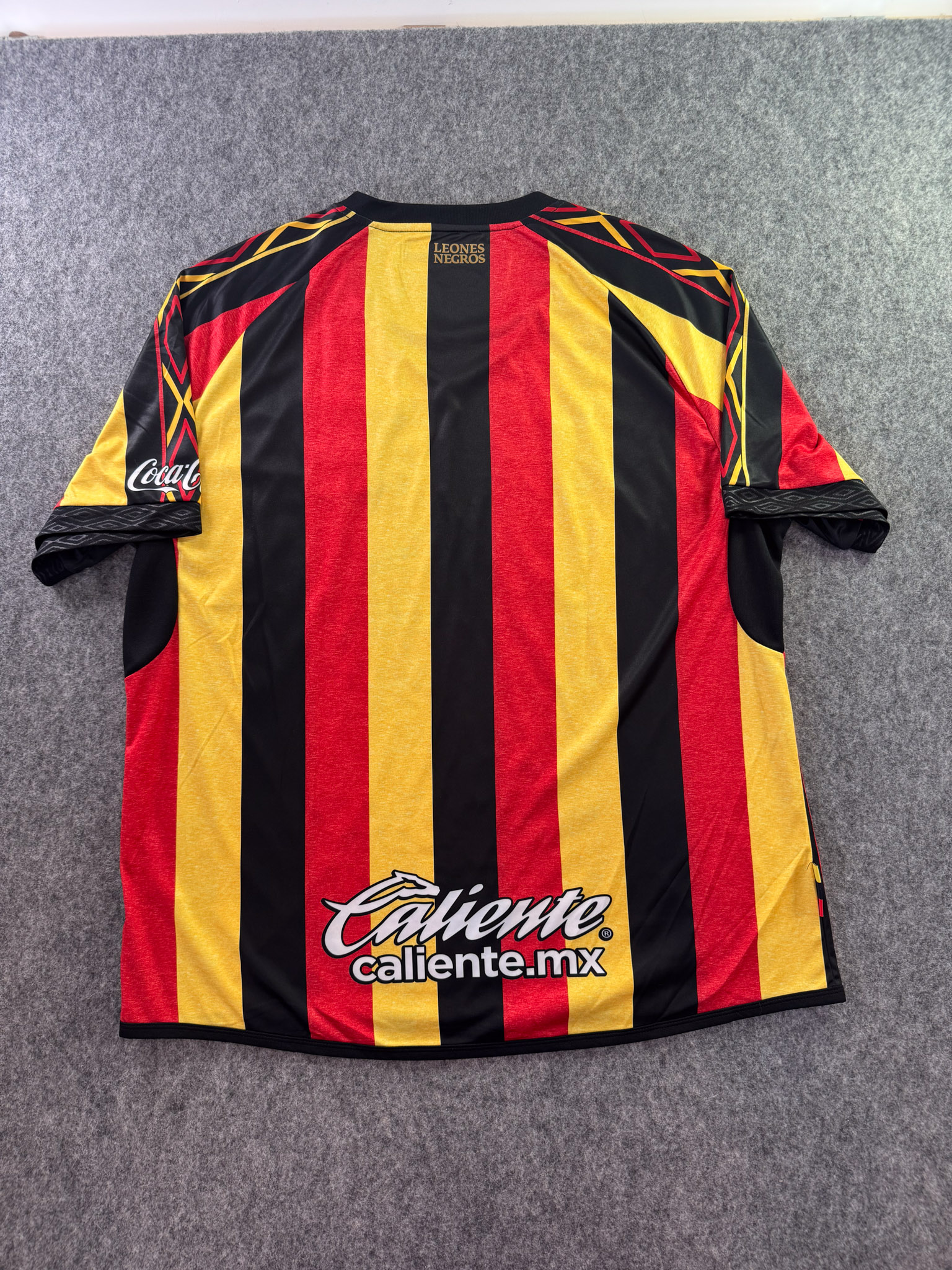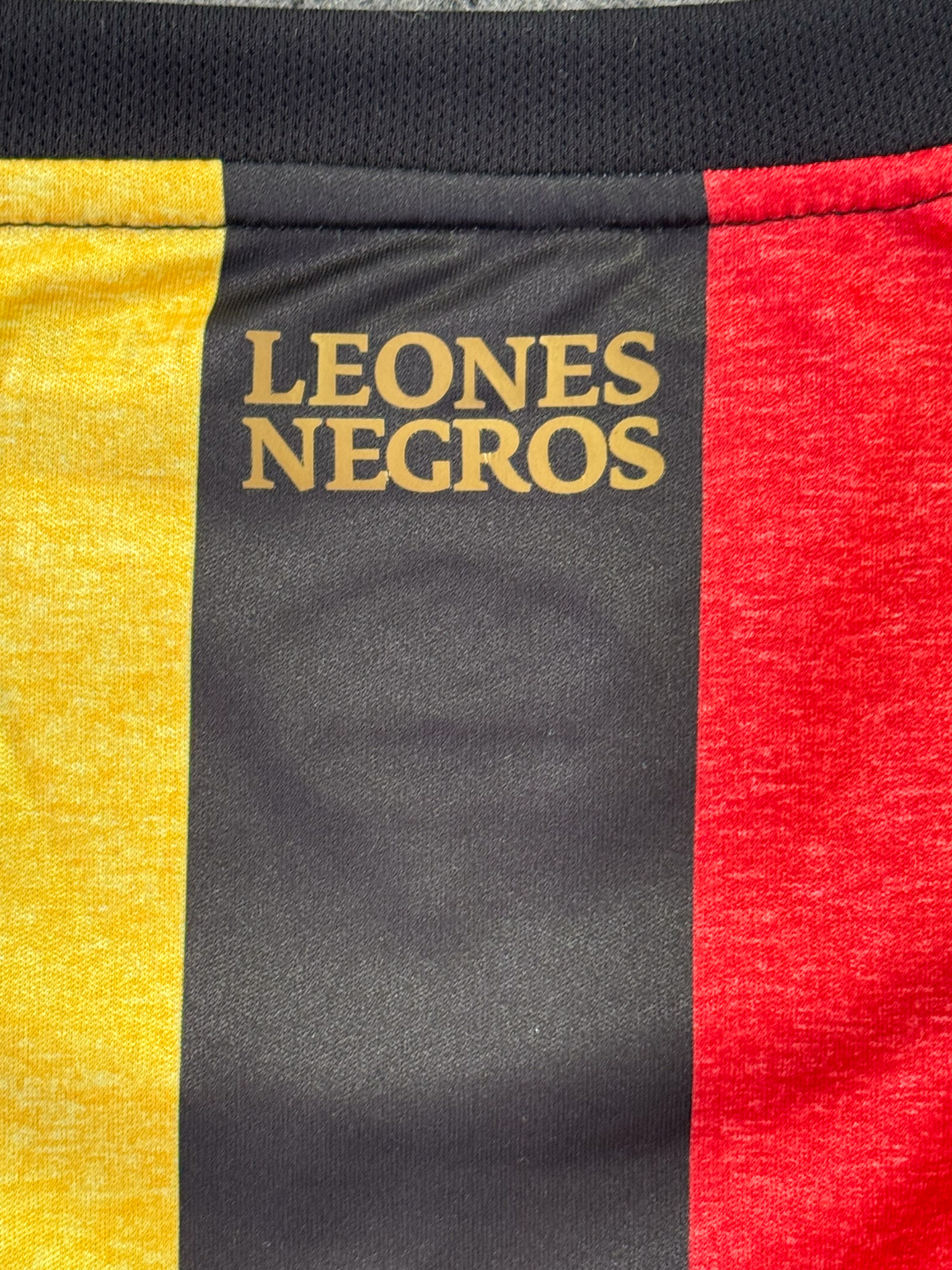 Jersey del Leones Negros fabricado por Umbro, originario de México. Se trata de la equipación Local correspondiente a la temporada 19-20. Talla XXL, con dorsal ‘No’ y en condición Excelente. Detalles: Ninguno.