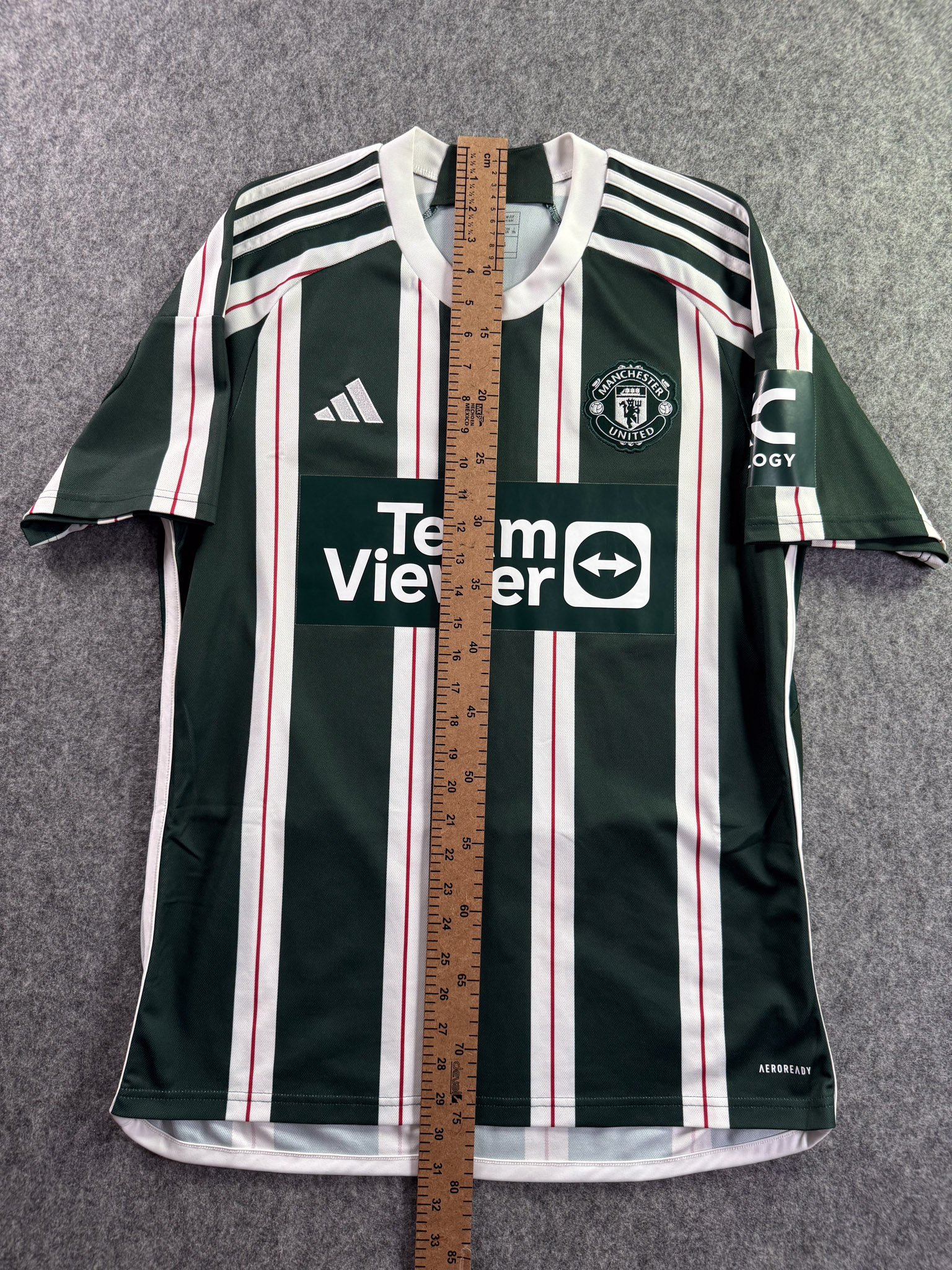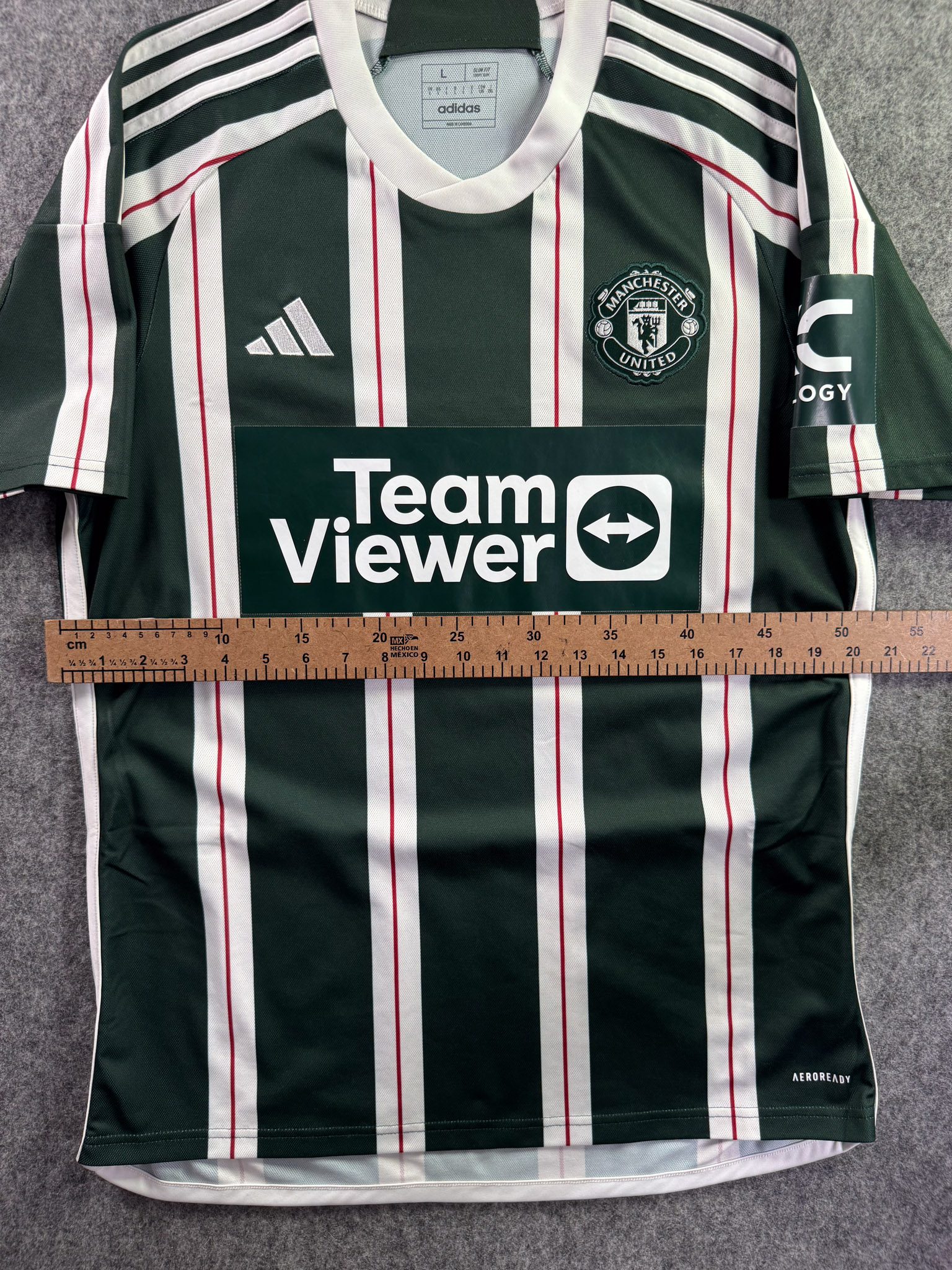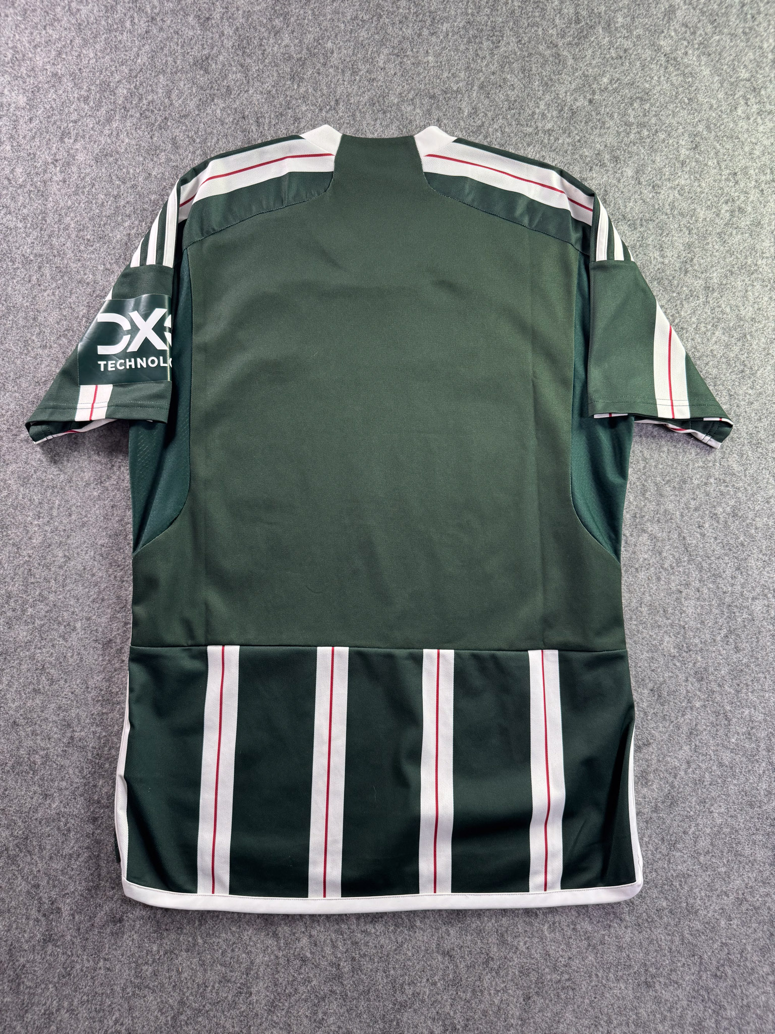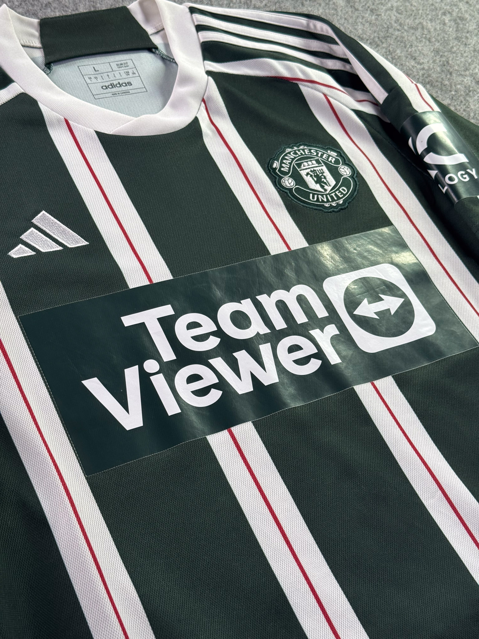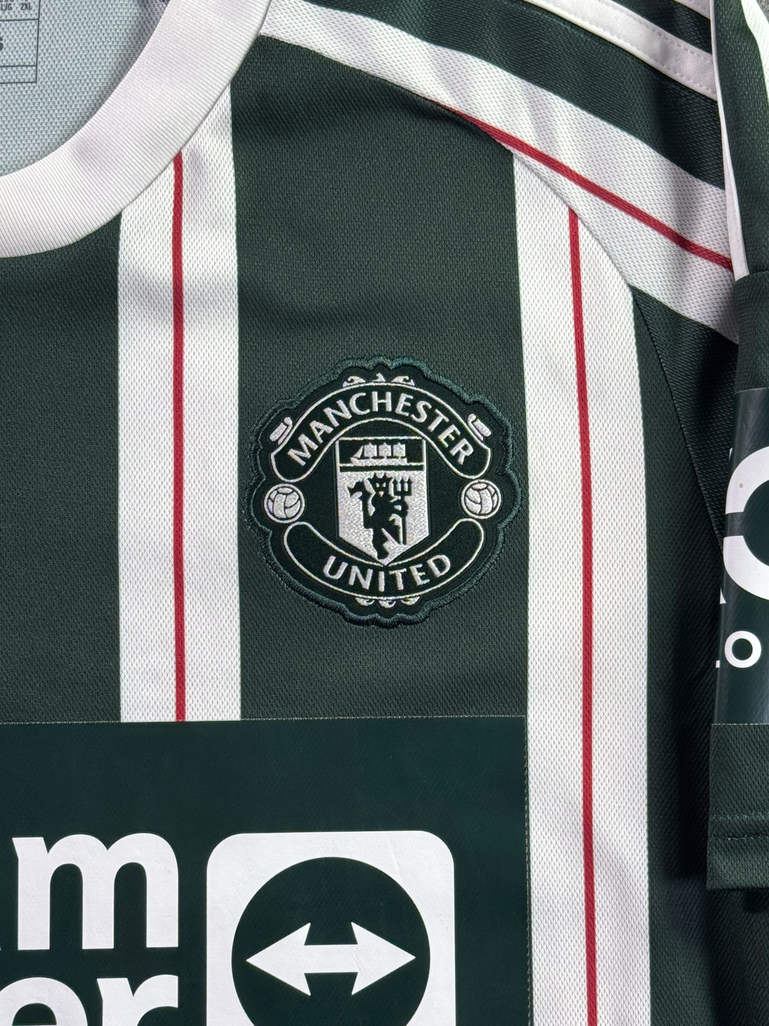 Jersey del Manchester United fabricado por Adidas, originario de Inglaterra. Se trata de la equipación Visita correspondiente a la temporada 23-24. Talla L, con dorsal ‘No’ y en condición Muy Buena. Detalles: Ligeras manchas en la parte del cuello.