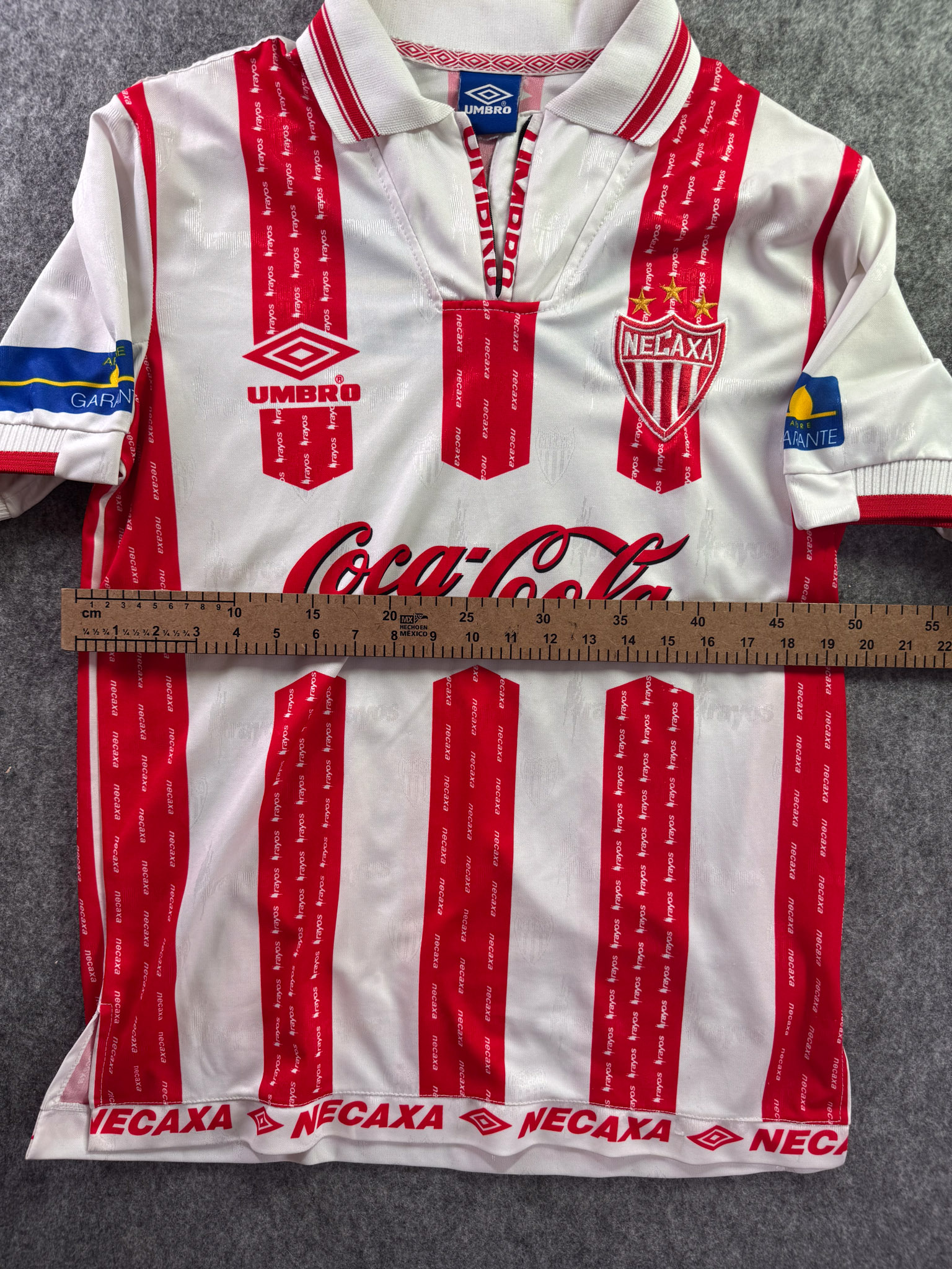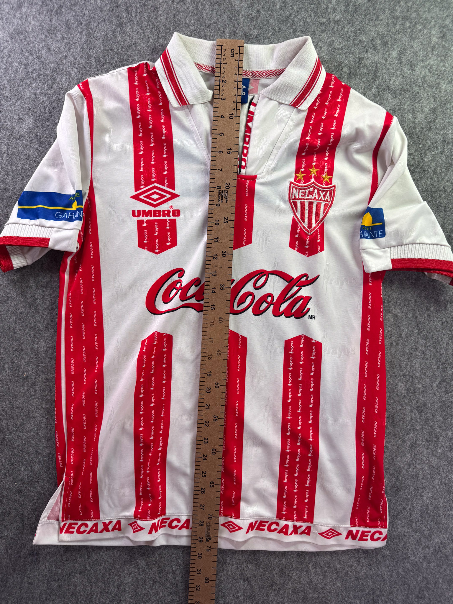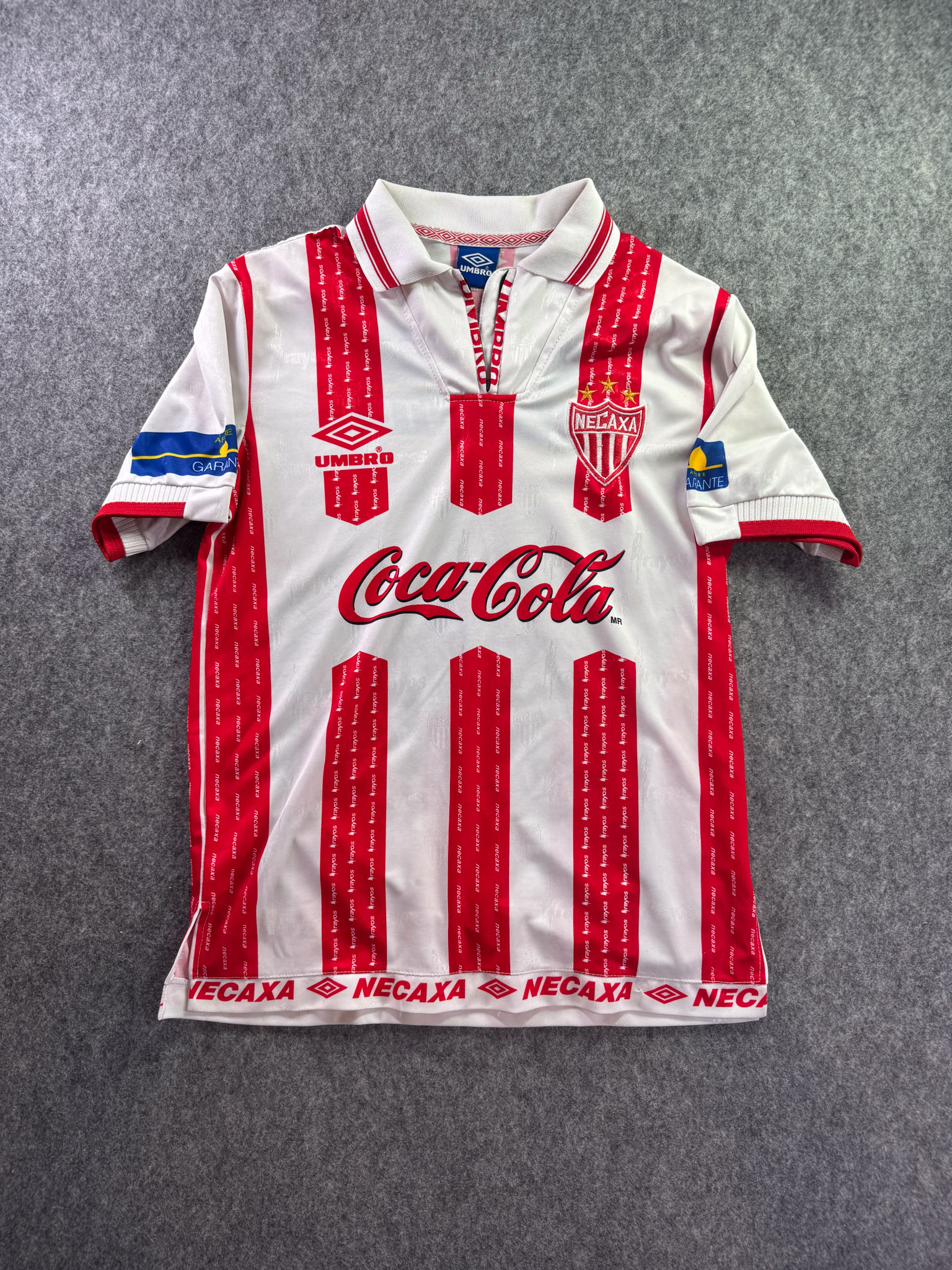 Jersey del Necaxa fabricado por Umbro, originario de México. Se trata de la equipación Local correspondiente a la temporada 99-00. Talla L, con dorsal ‘No’ y en condición Excelente. Detalles: Ninguna.