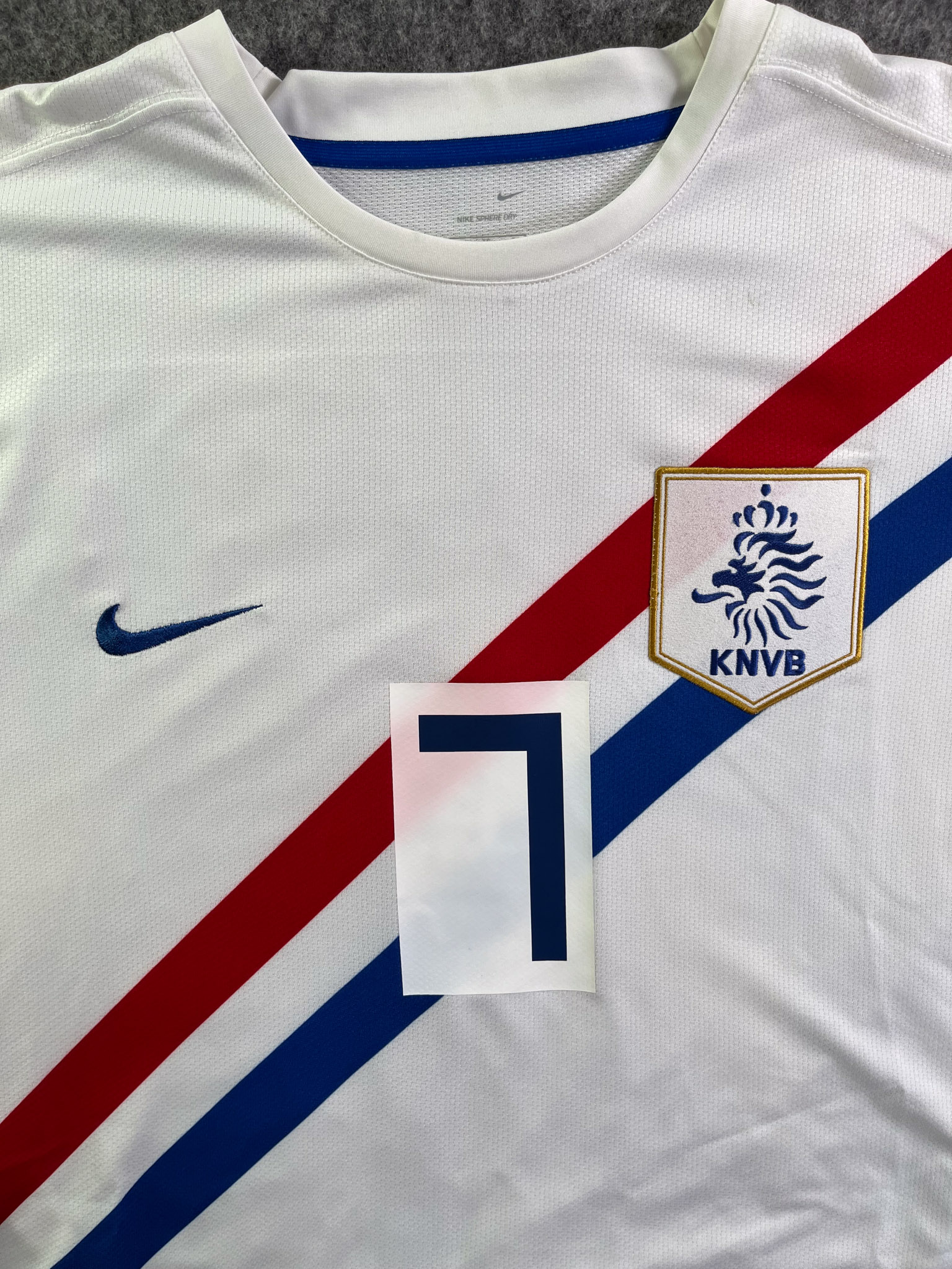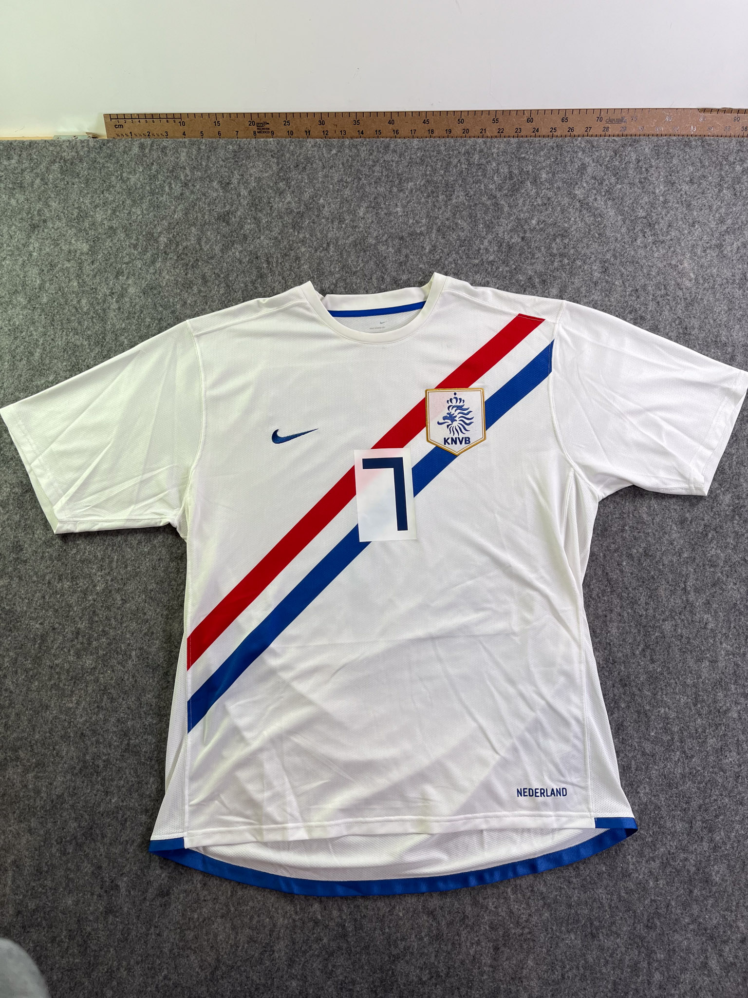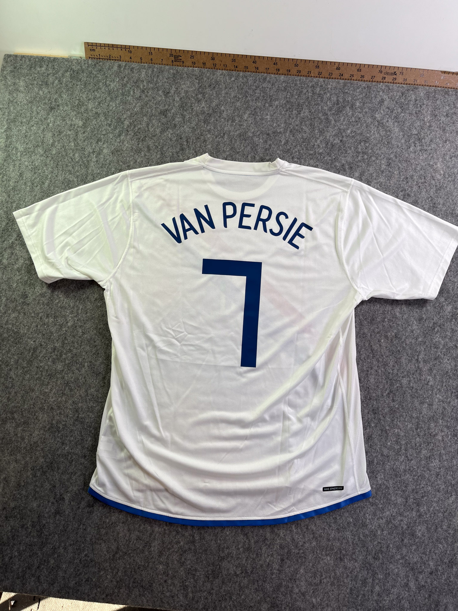 Jersey del Selección Países Bajos fabricado por Nike, originario de Países Bajos. Se trata de la equipación Visita correspondiente a la temporada 2006. Talla XL, con dorsal ‘Van Persie 7’ y en condición Excelente. Detalles: Ninguna.