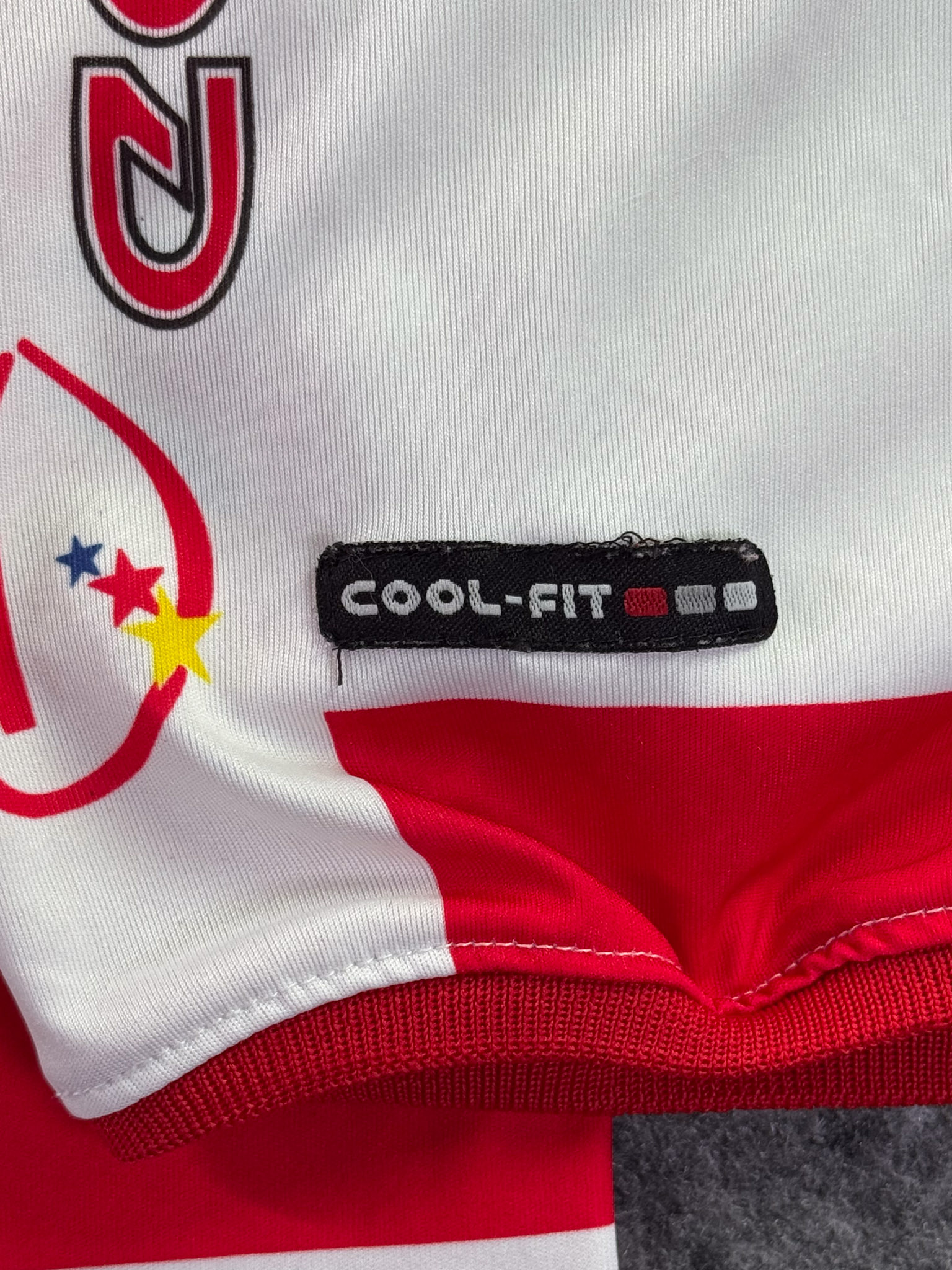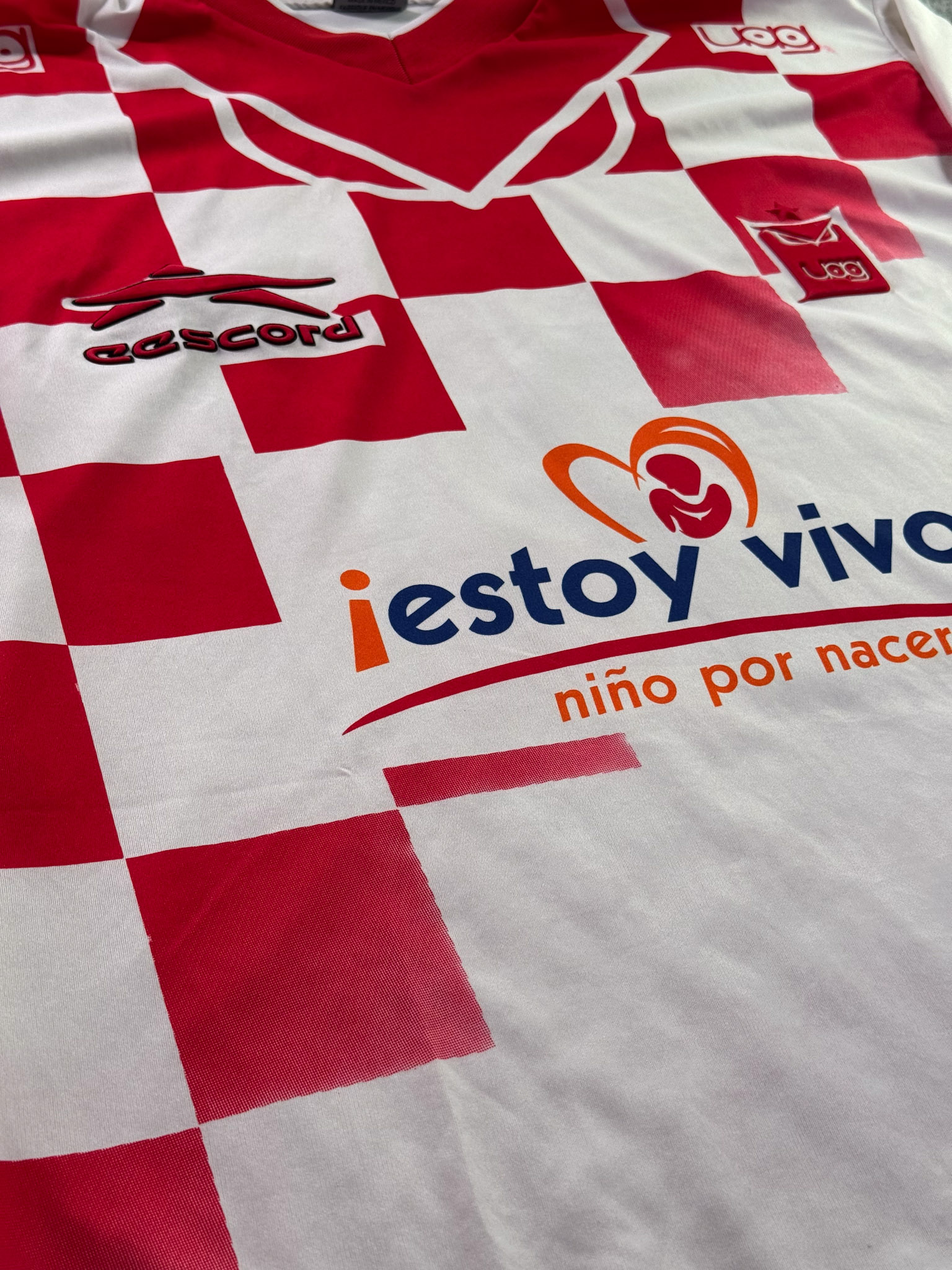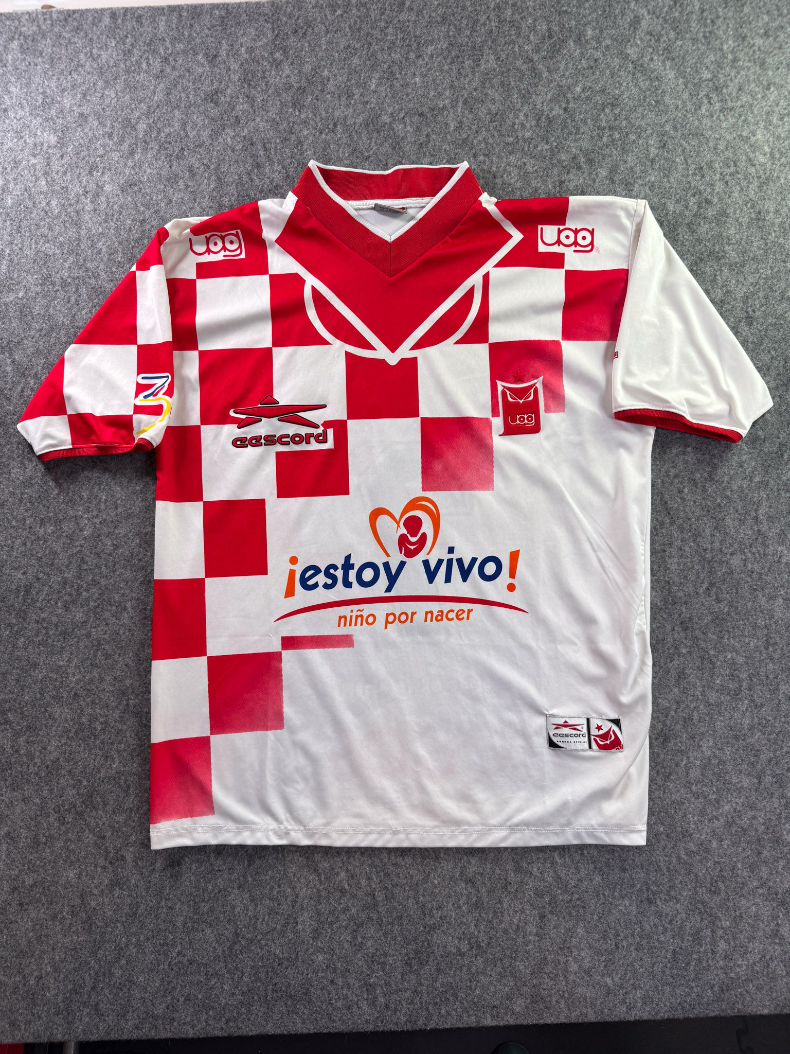 Jersey del Tecos fabricado por Escord, originario de México. Se trata de la equipación Local correspondiente a la temporada 00-01. Talla L, con dorsal ‘7’ y en condición Excelente. Detalles: Número en serigrafía, posible utilería.