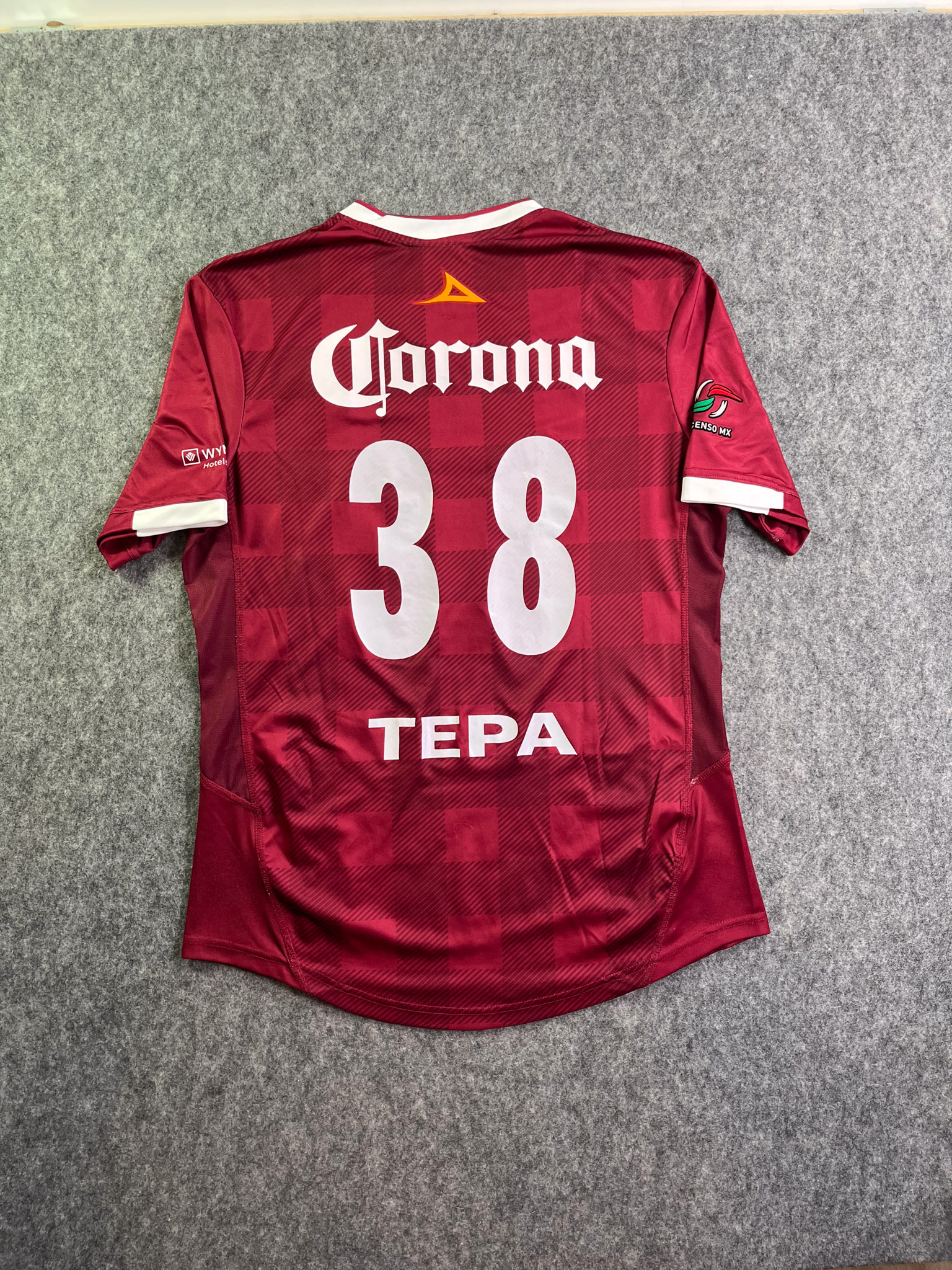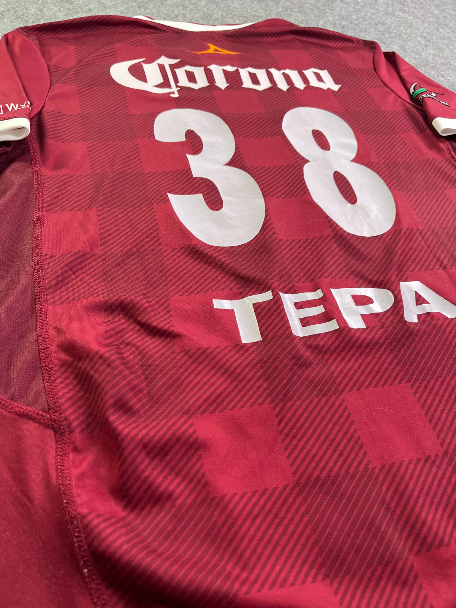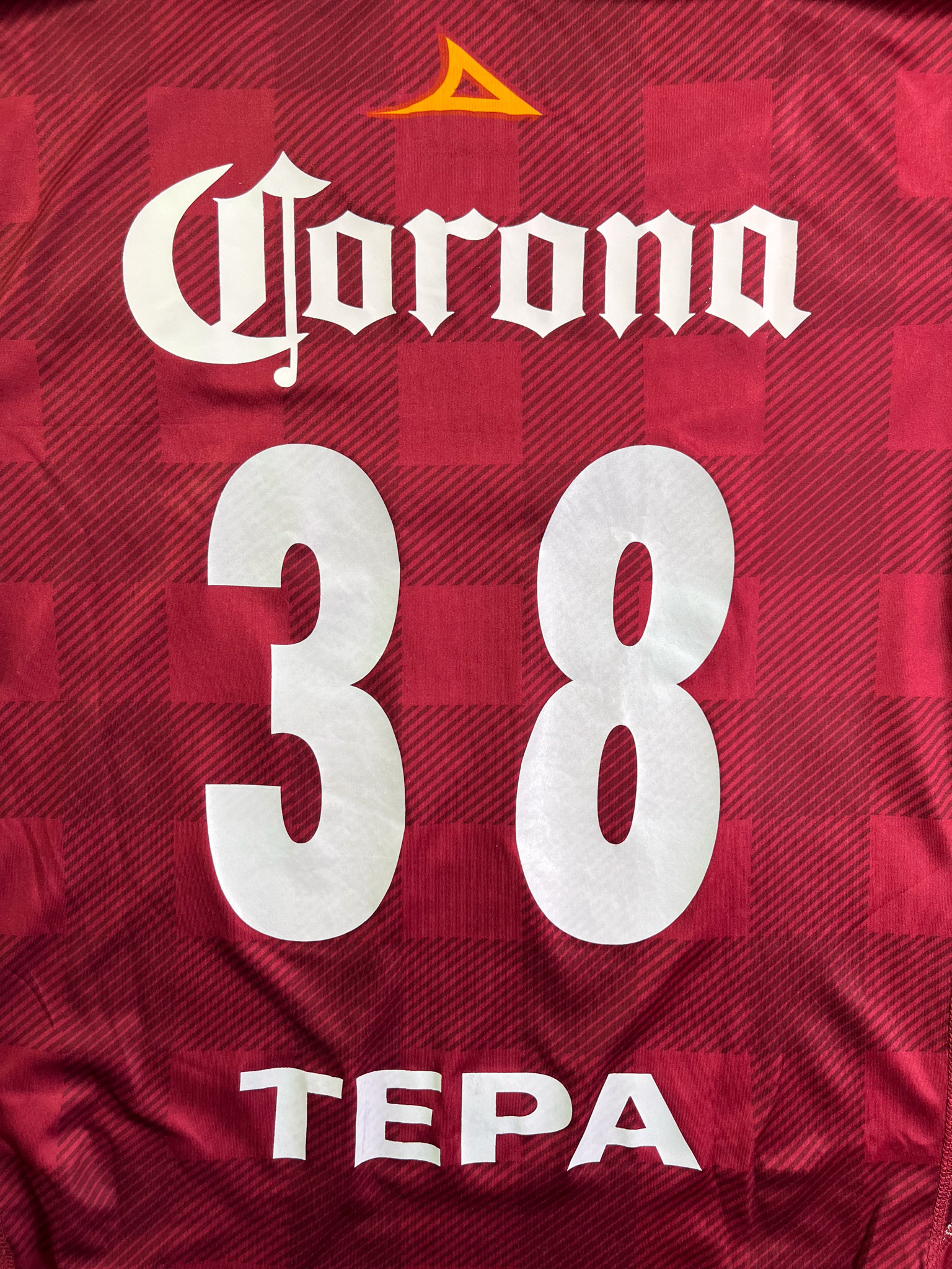 Jersey del Tecos fabricado por Pirma, originario de México. Se trata de la equipación Local correspondiente a la temporada 13-14. Talla L, con dorsal ‘Tepa 38’ y en condición Muy buena. Detalles: Ninguno.