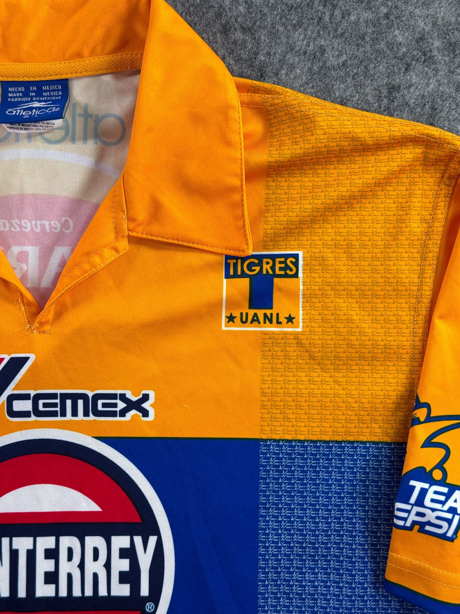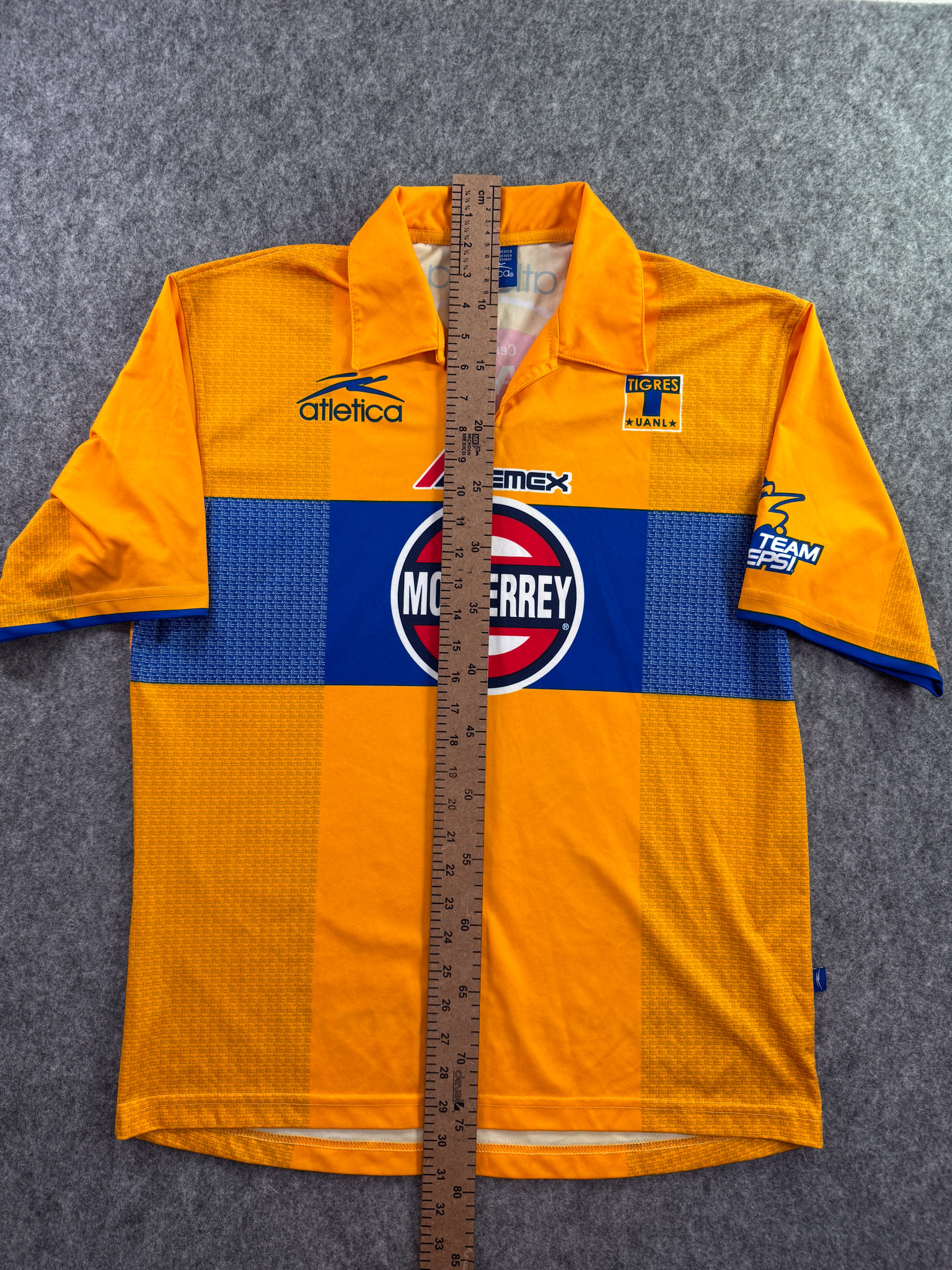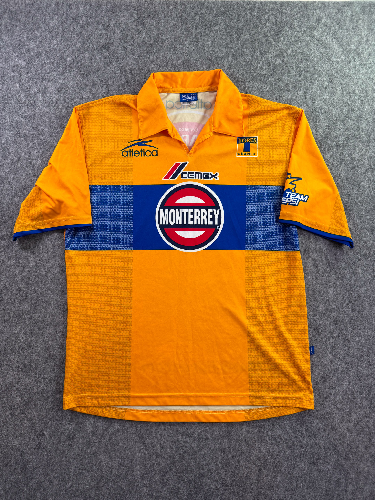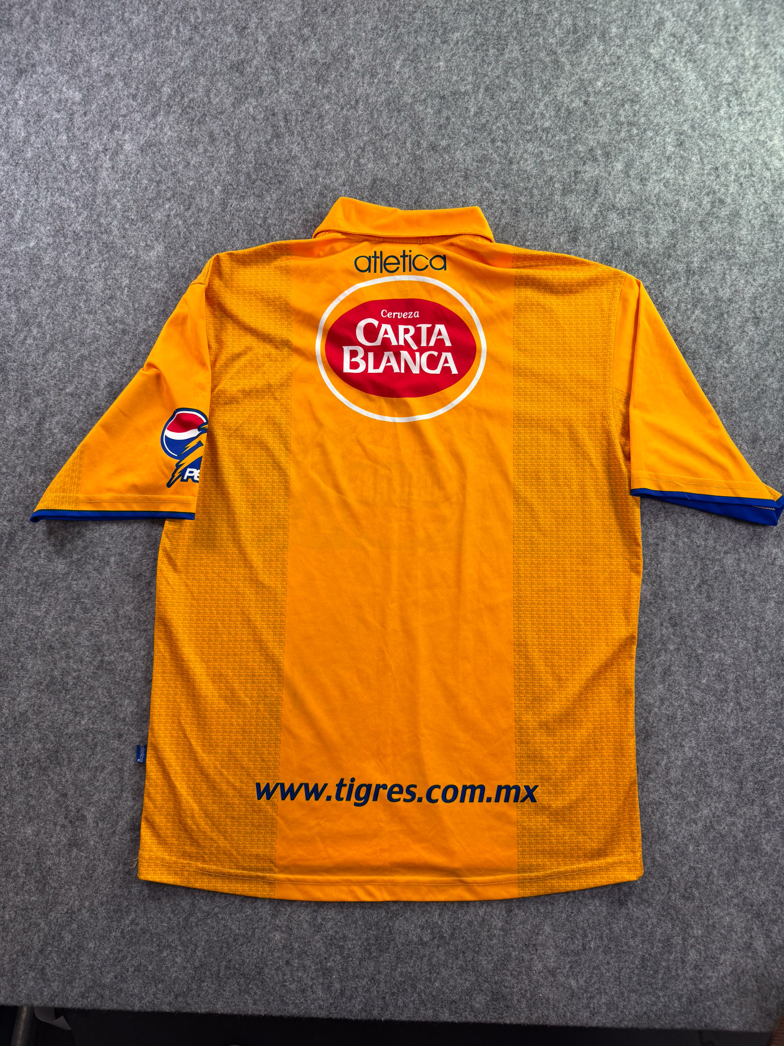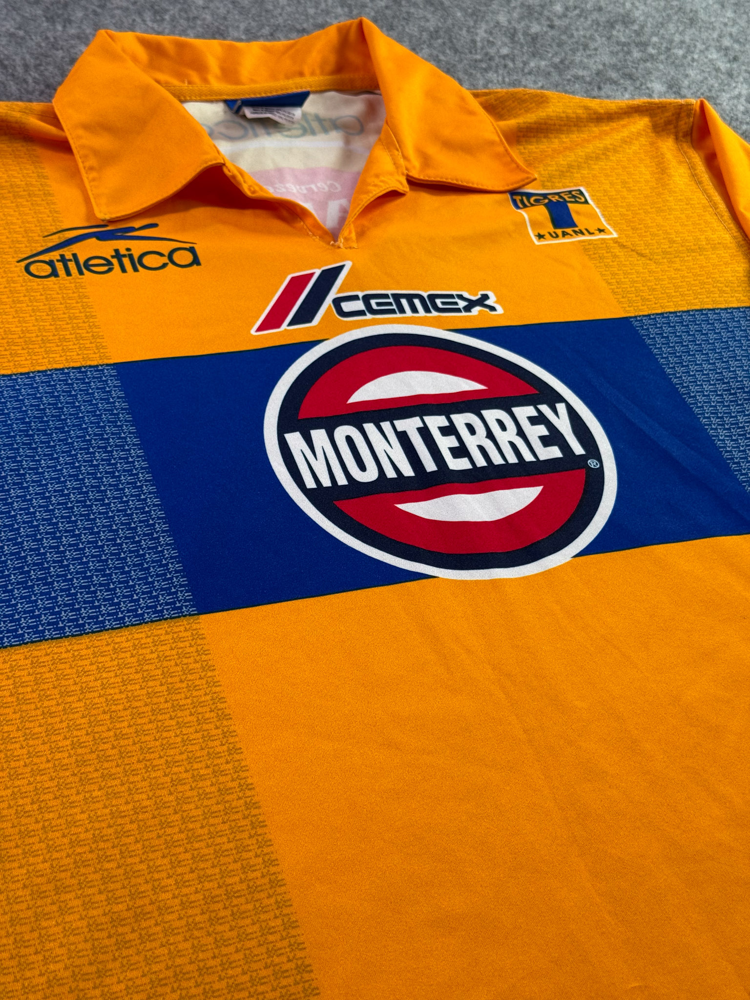 Jersey del Tigres fabricado por Atletica, originario de México. Se trata de la equipación Local correspondiente a la temporada 03-04. Talla L, con dorsal ‘No’ y en condición Excelente. Detalles: Jersey completamente sublimado.