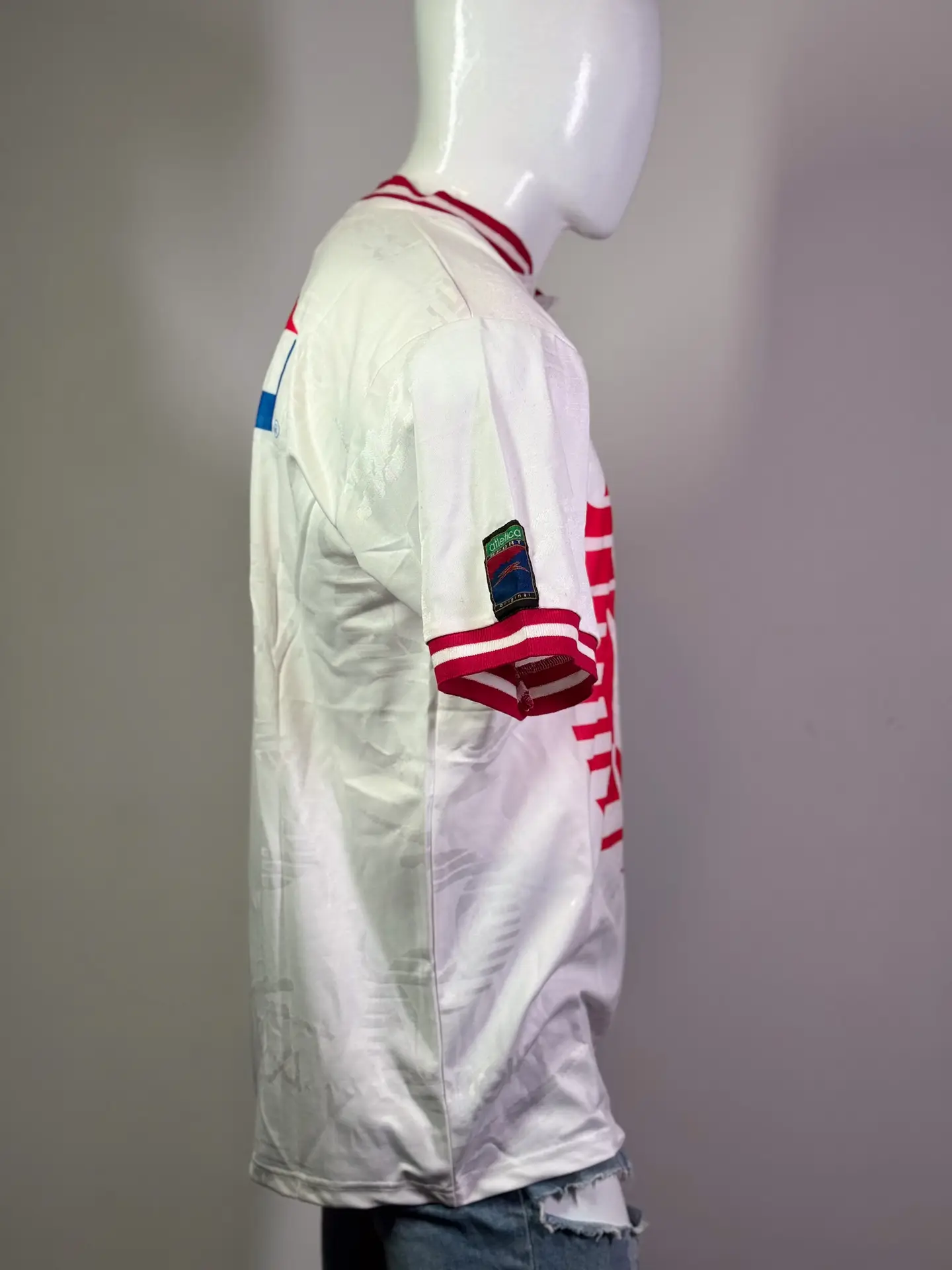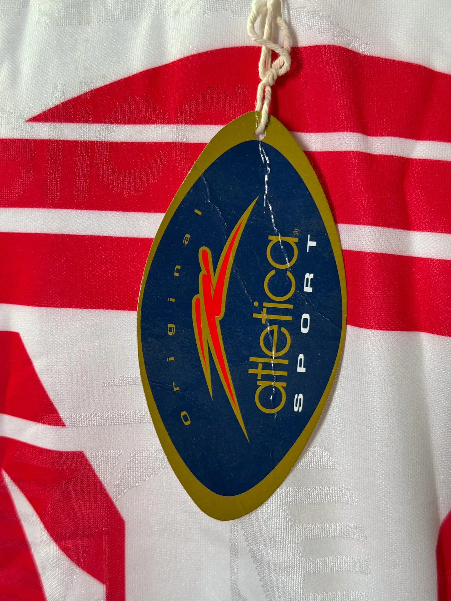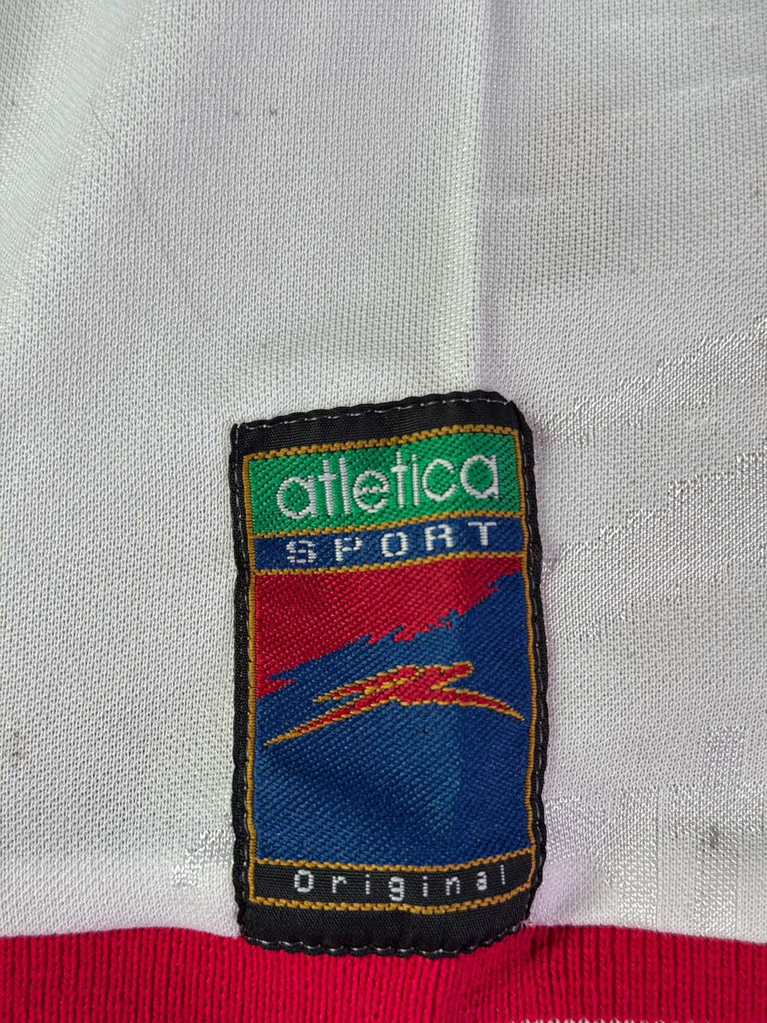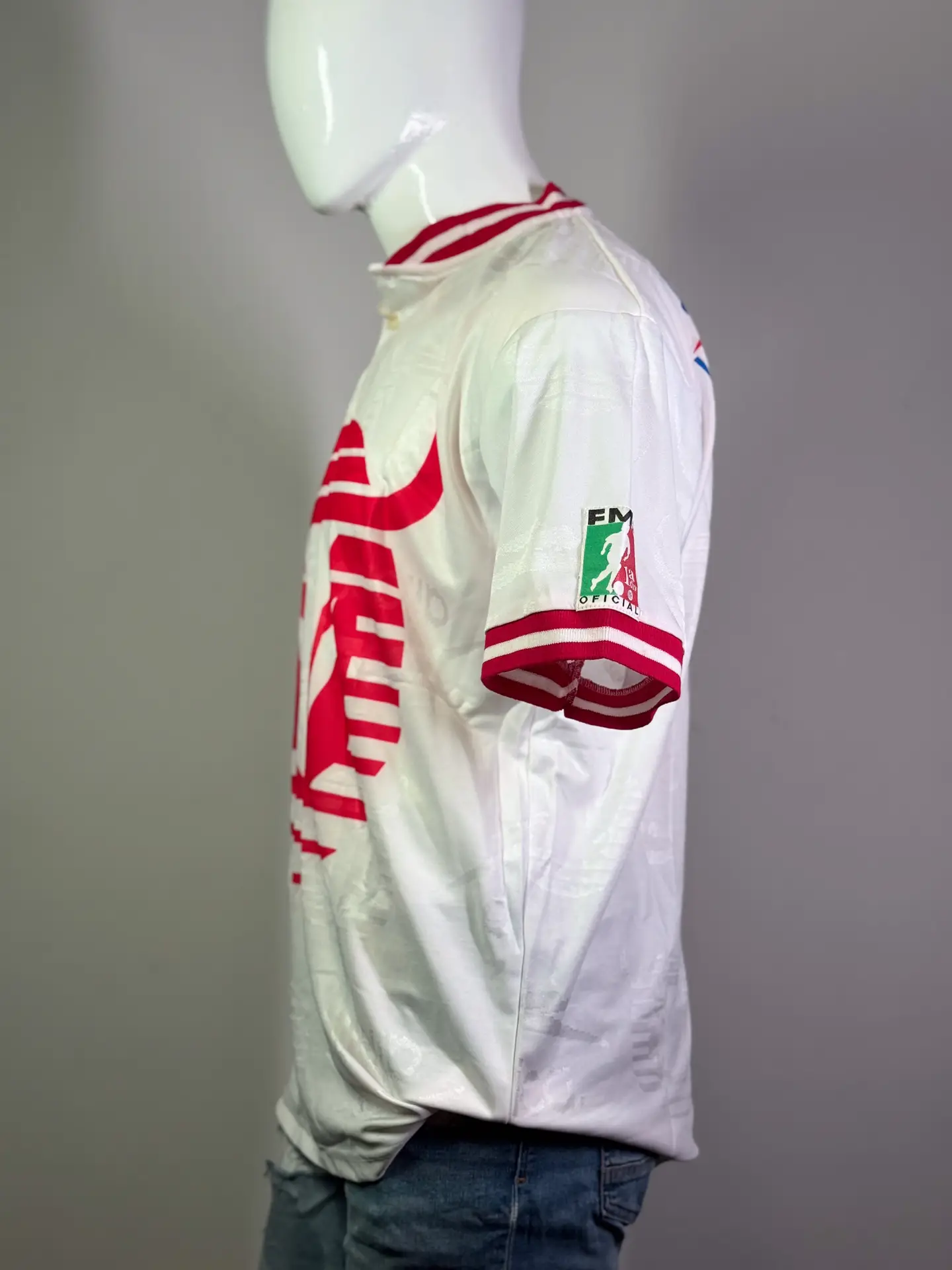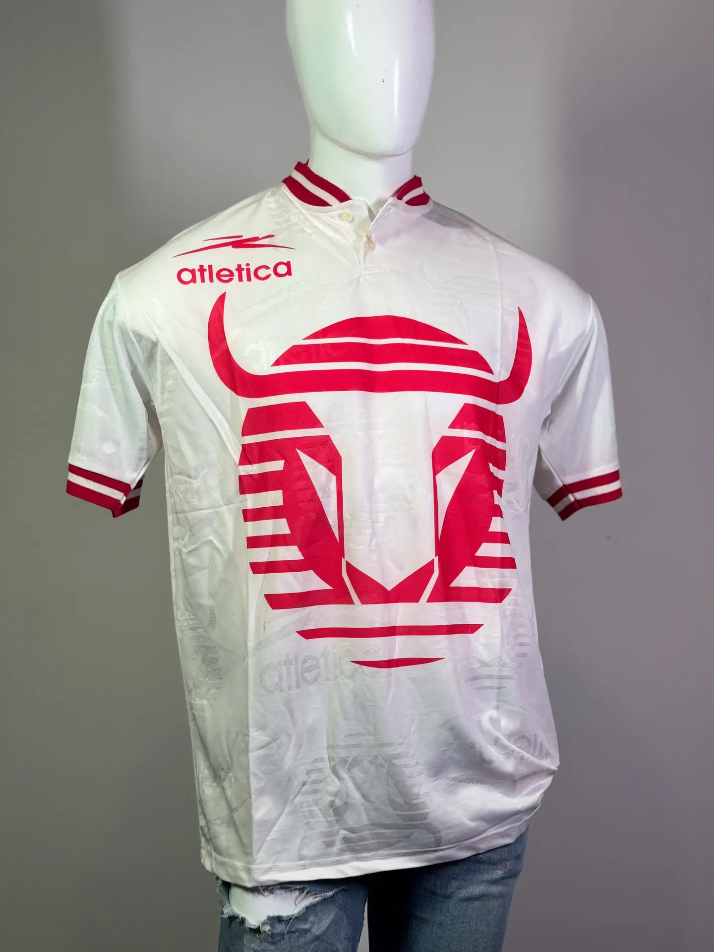 Jersey del Toros Neza fabricado por Atletica, originario de México. Se trata de la equipación Visita correspondiente a la temporada 96-97. Talla M, con dorsal ‘No’ y en condición Nueva. Detalles: Etiqueta original.